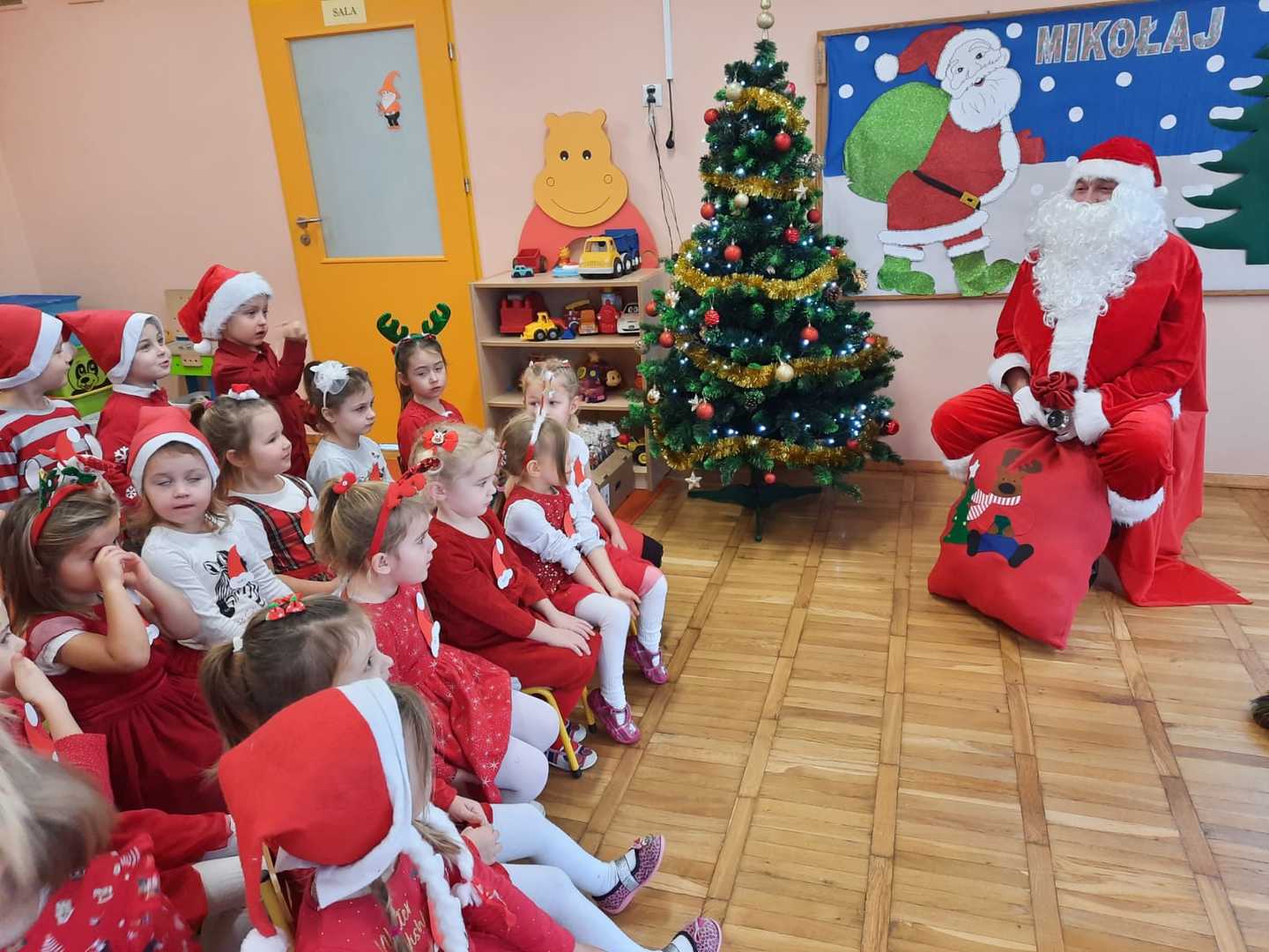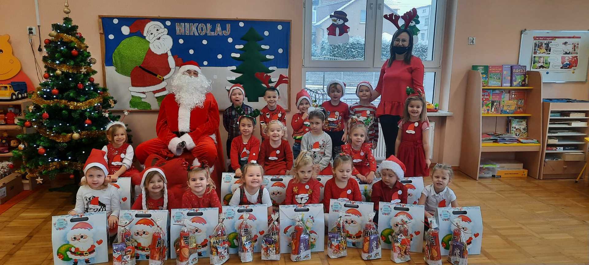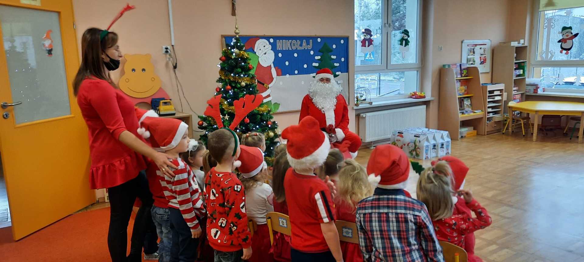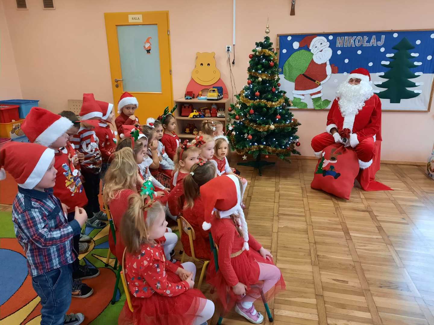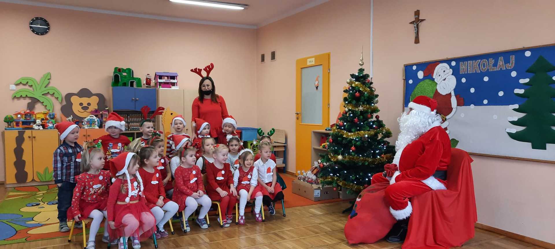 W poniedziałek 6 grudnia przedszkolaki już od rana czekały na Mikołaja. Dzieci nadsłuchiwały dźwięku dzwoneczków, które słychać było z daleka. I już wiadomo było, że do przedszkola zbliża się nikt inny, jak Święty Mikołaj we własnej osobie. Mikołaj nie zawiódł dzieci i nie kazał długo na siebie czekać. Już od samego rana zawitał do naszej placówki. Wszystkie przedszkolaki bardzo przeżywały to spotkanie, szczególnie te, które pierwszy raz witały Mikołaja w przedszkolu. Długo oczekiwany gość wywołał uśmiech na twarzach przedszkolaków. Dzieci z ogromną radością przywitały Mikołaja śpiewając mu piosenki i recytując wiersze. Każde dziecko złożyło obietnice, iż kolejny rok będzie grzeczne i posłuszne. Na zakończenie Święty Mikołaj wszystkim przedszkolakom osobiście przekazał piękne prezenty, a w nich – dla każdego coś dobrego.