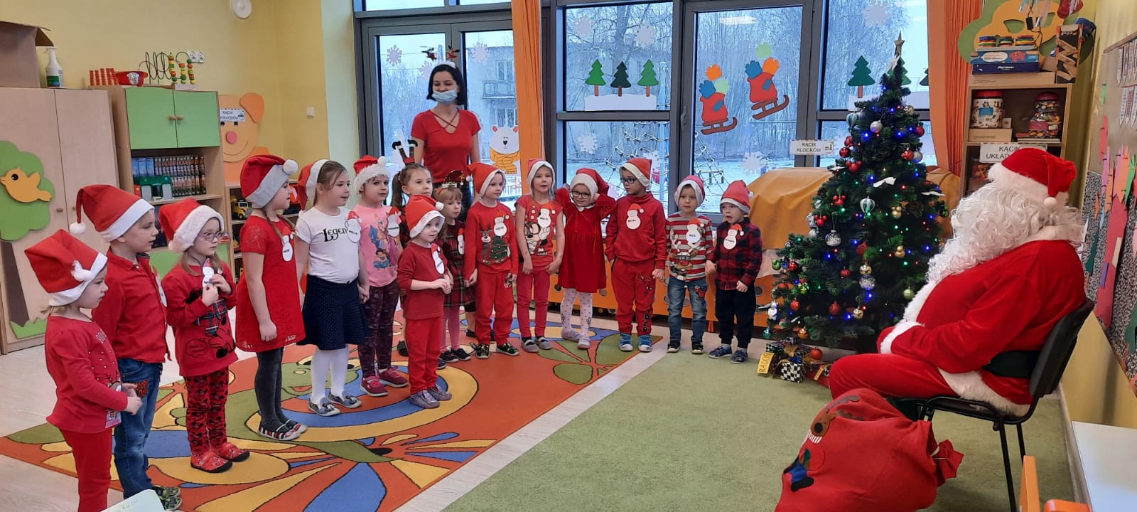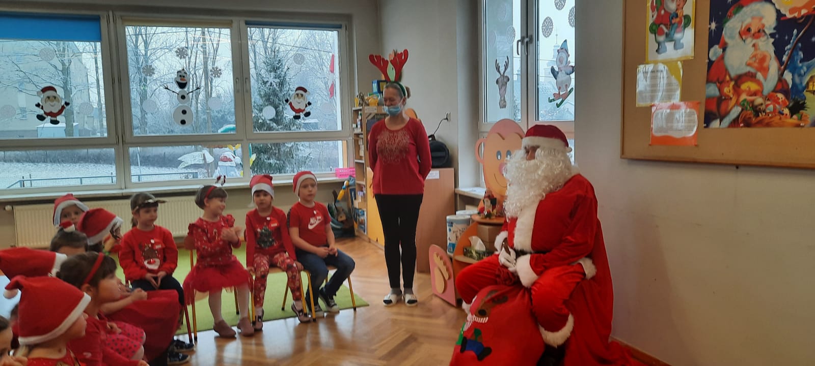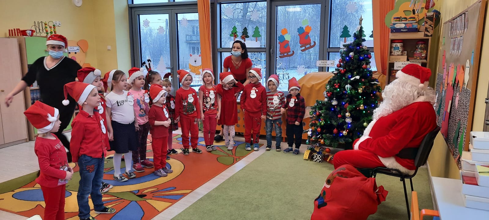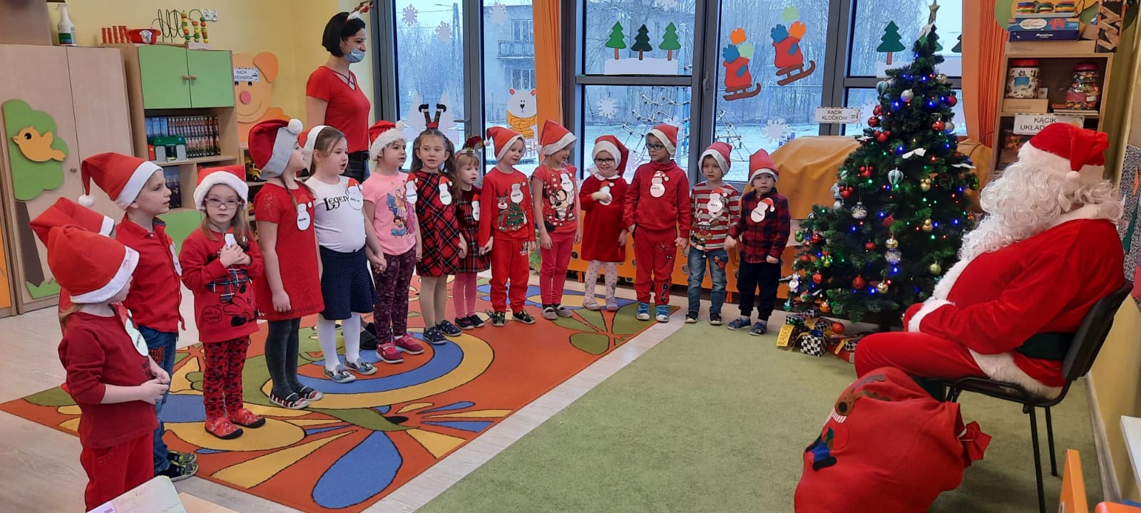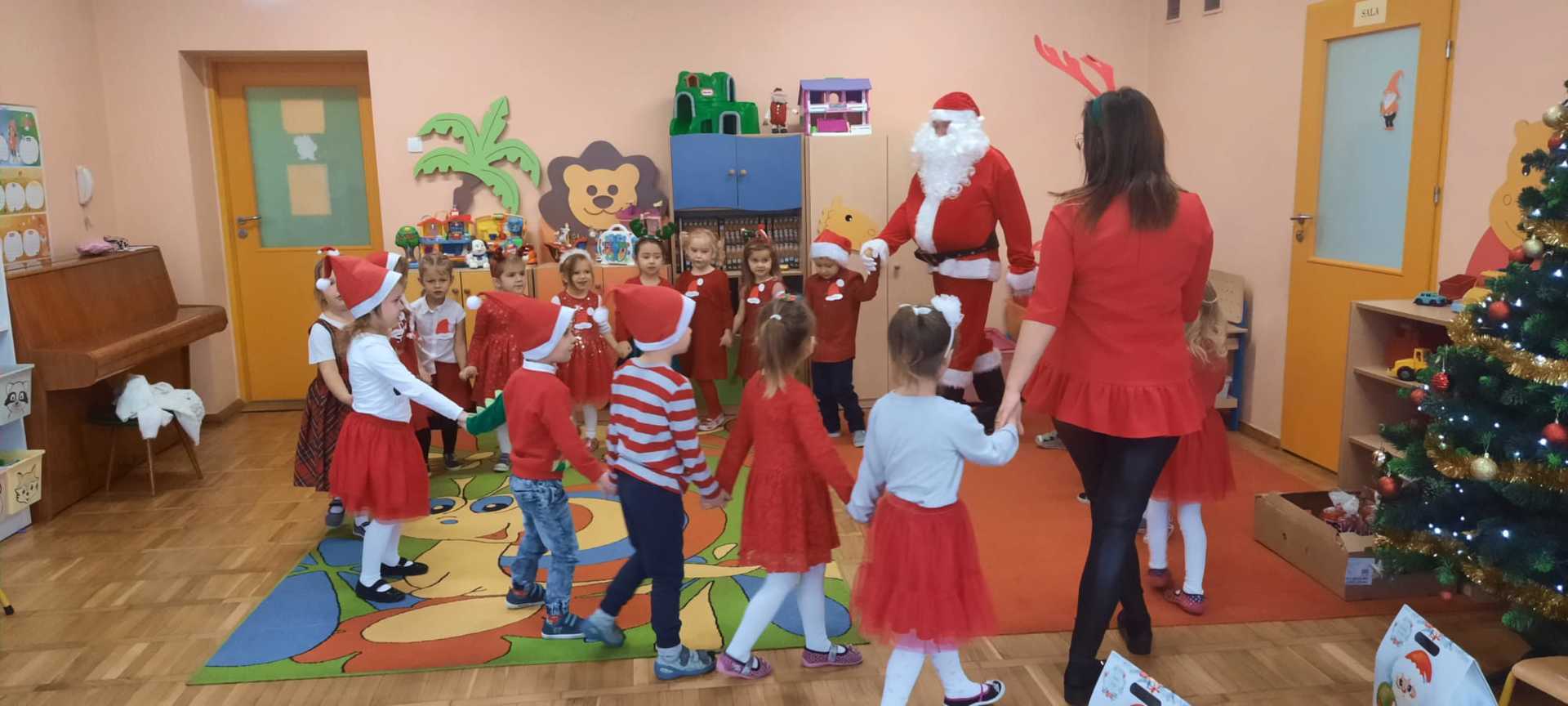 W poniedziałek 6 grudnia przedszkolaki już od rana czekały na Mikołaja. Dzieci nadsłuchiwały dźwięku dzwoneczków, które słychać było z daleka. I już wiadomo było, że do przedszkola zbliża się nikt inny, jak Święty Mikołaj we własnej osobie. Mikołaj nie zawiódł dzieci i nie kazał długo na siebie czekać. Już od samego rana zawitał do naszej placówki. Wszystkie przedszkolaki bardzo przeżywały to spotkanie, szczególnie te, które pierwszy raz witały Mikołaja w przedszkolu. Długo oczekiwany gość wywołał uśmiech na twarzach przedszkolaków. Dzieci z ogromną radością przywitały Mikołaja śpiewając mu piosenki i recytując wiersze. Każde dziecko złożyło obietnice, iż kolejny rok będzie grzeczne i posłuszne. Na zakończenie Święty Mikołaj wszystkim przedszkolakom osobiście przekazał piękne prezenty, a w nich – dla każdego coś dobrego.