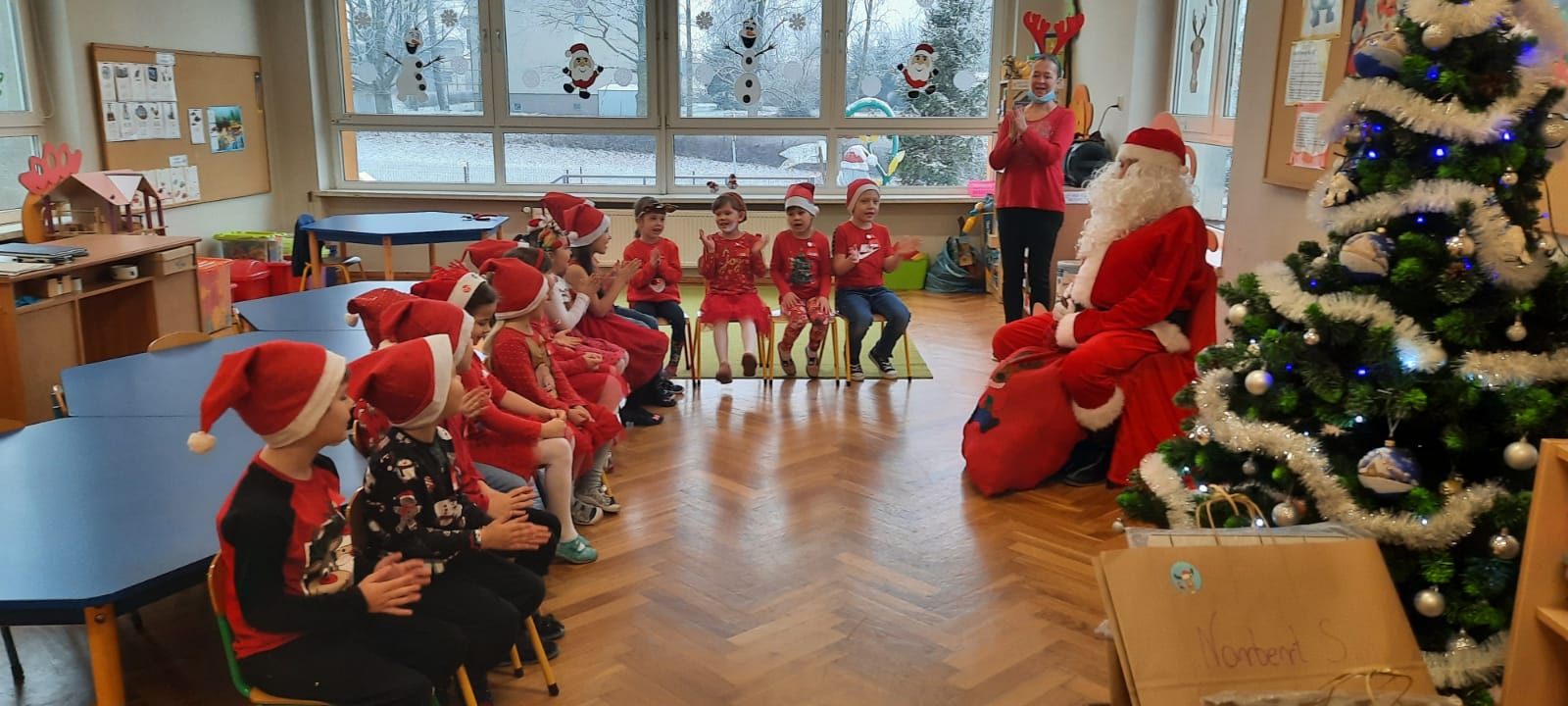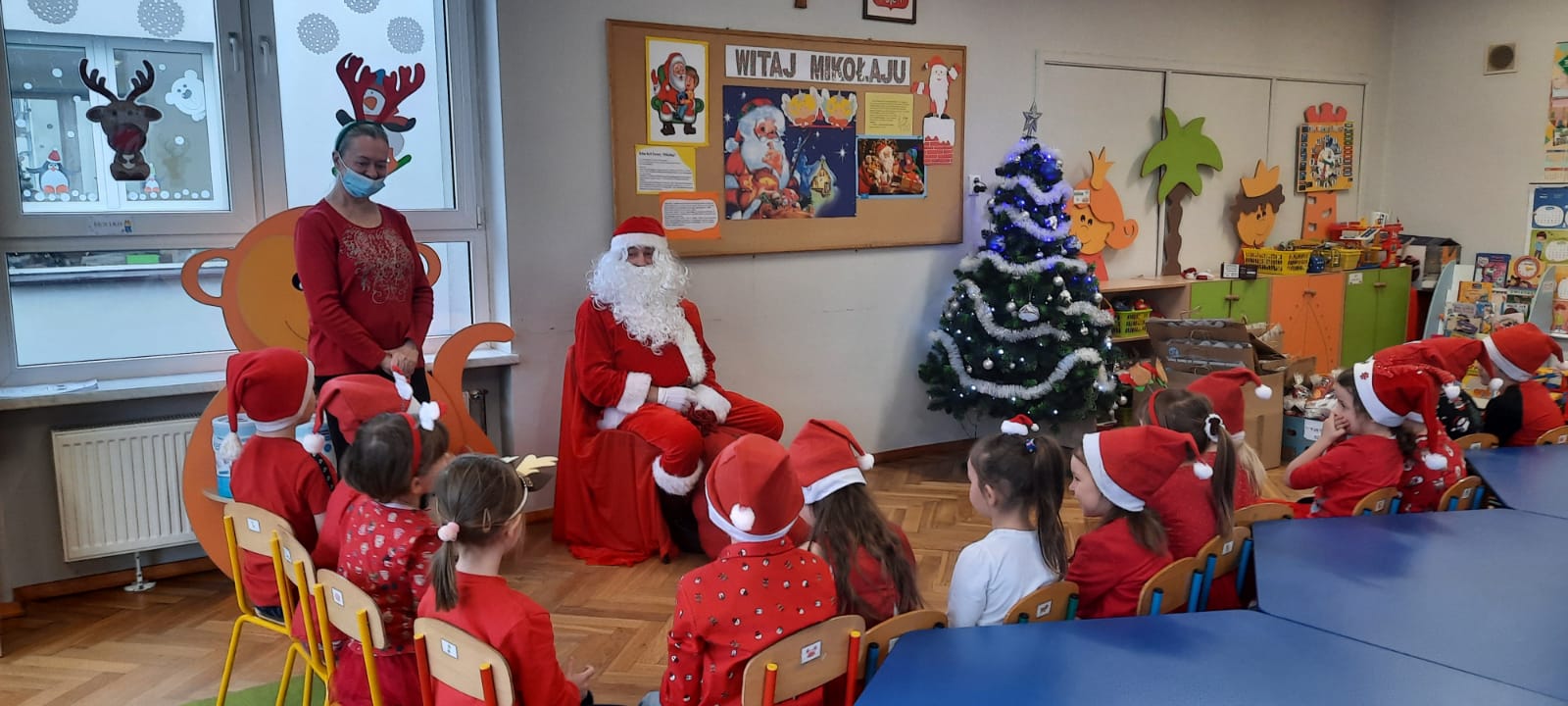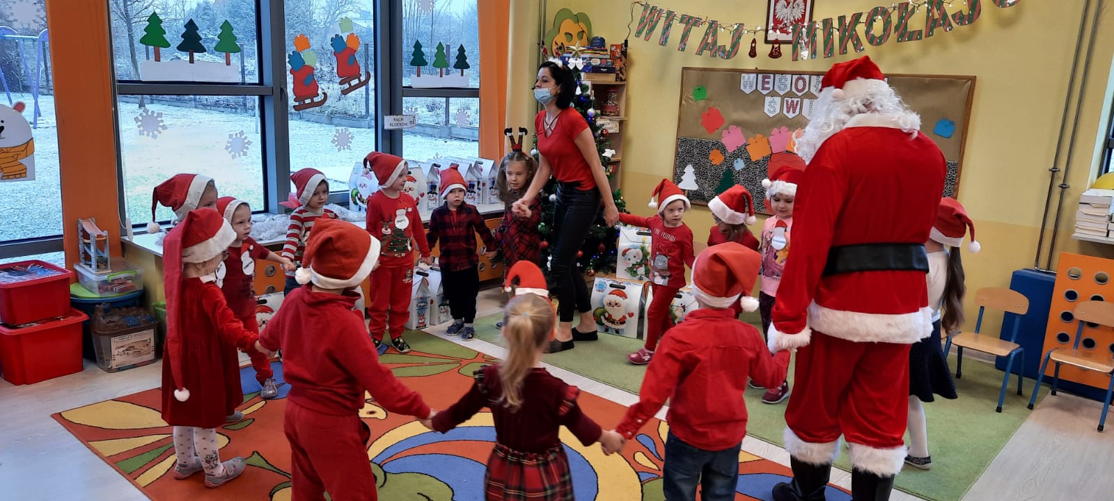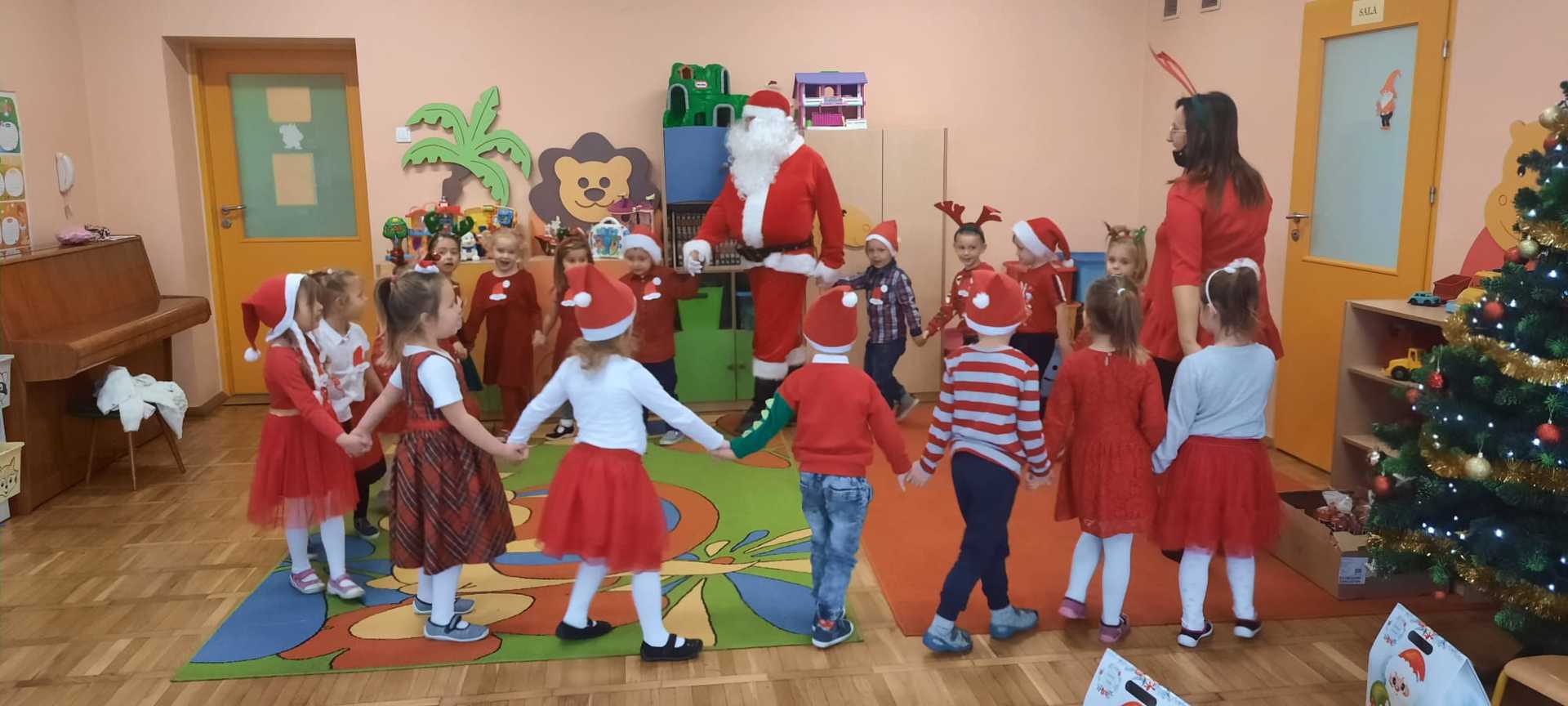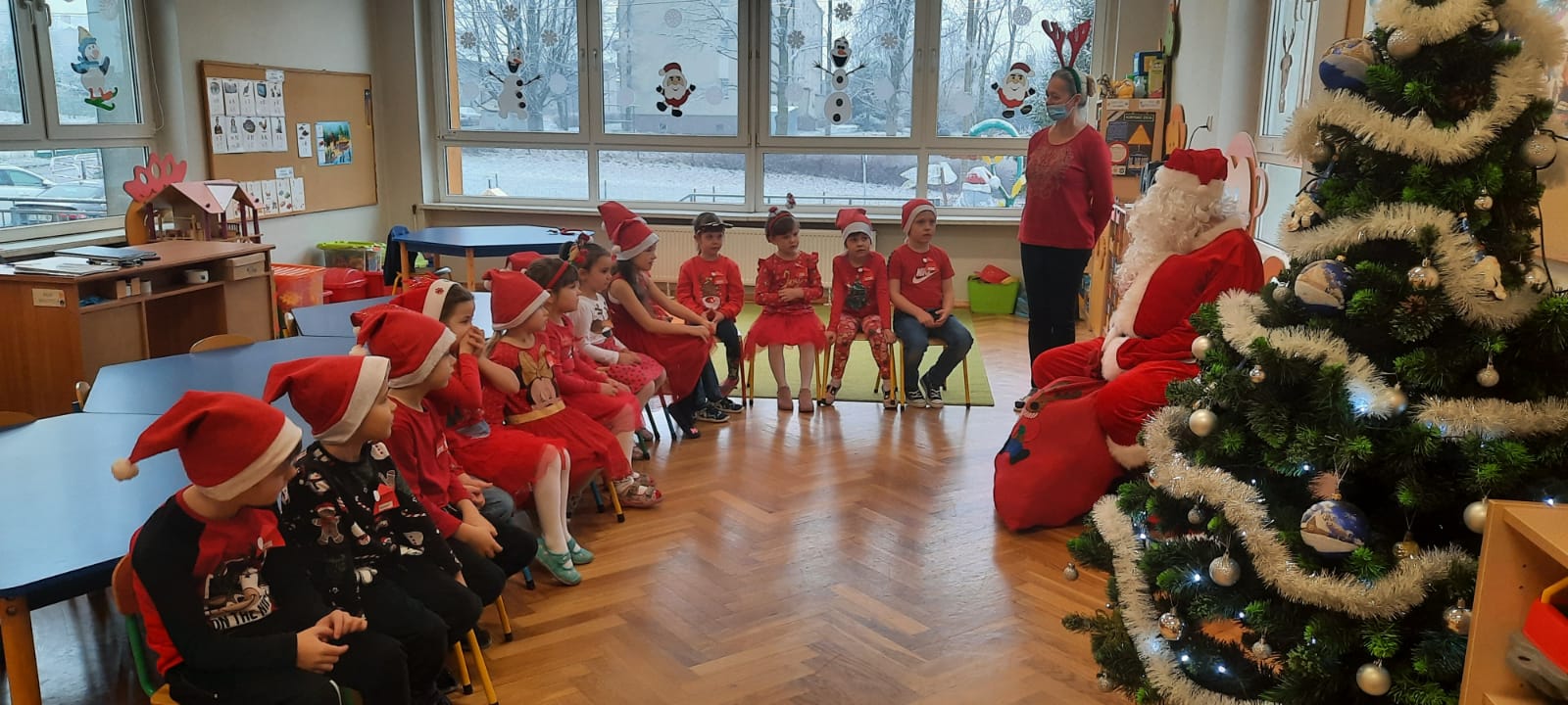 W poniedziałek 6 grudnia przedszkolaki już od rana czekały na Mikołaja. Dzieci nadsłuchiwały dźwięku dzwoneczków, które słychać było z daleka. I już wiadomo było, że do przedszkola zbliża się nikt inny, jak Święty Mikołaj we własnej osobie. Mikołaj nie zawiódł dzieci i nie kazał długo na siebie czekać. Już od samego rana zawitał do naszej placówki. Wszystkie przedszkolaki bardzo przeżywały to spotkanie, szczególnie te, które pierwszy raz witały Mikołaja w przedszkolu. Długo oczekiwany gość wywołał uśmiech na twarzach przedszkolaków. Dzieci z ogromną radością przywitały Mikołaja śpiewając mu piosenki i recytując wiersze. Każde dziecko złożyło obietnice, iż kolejny rok będzie grzeczne i posłuszne. Na zakończenie Święty Mikołaj wszystkim przedszkolakom osobiście przekazał piękne prezenty, a w nich – dla każdego coś dobrego.