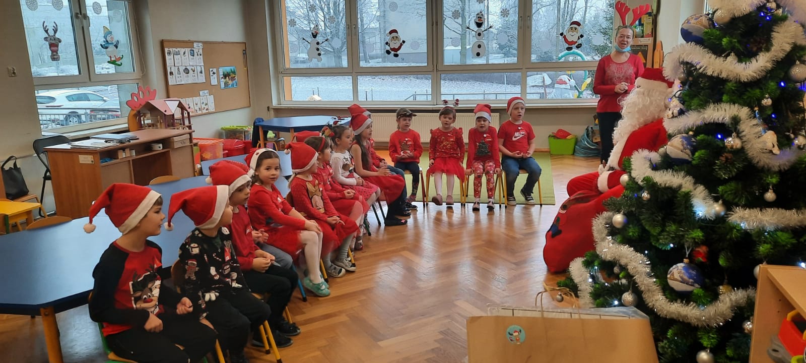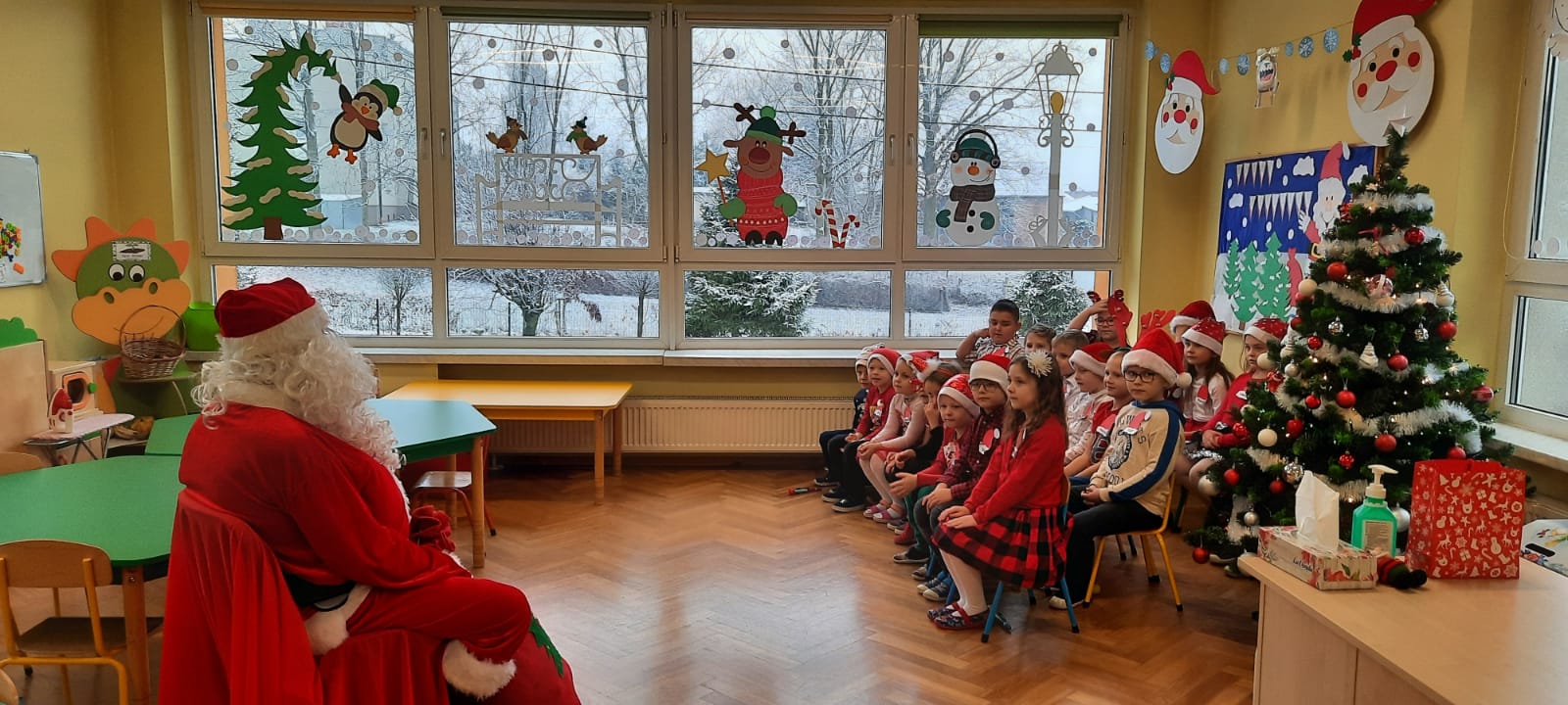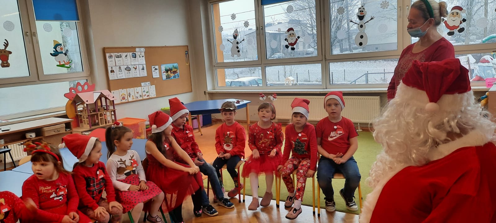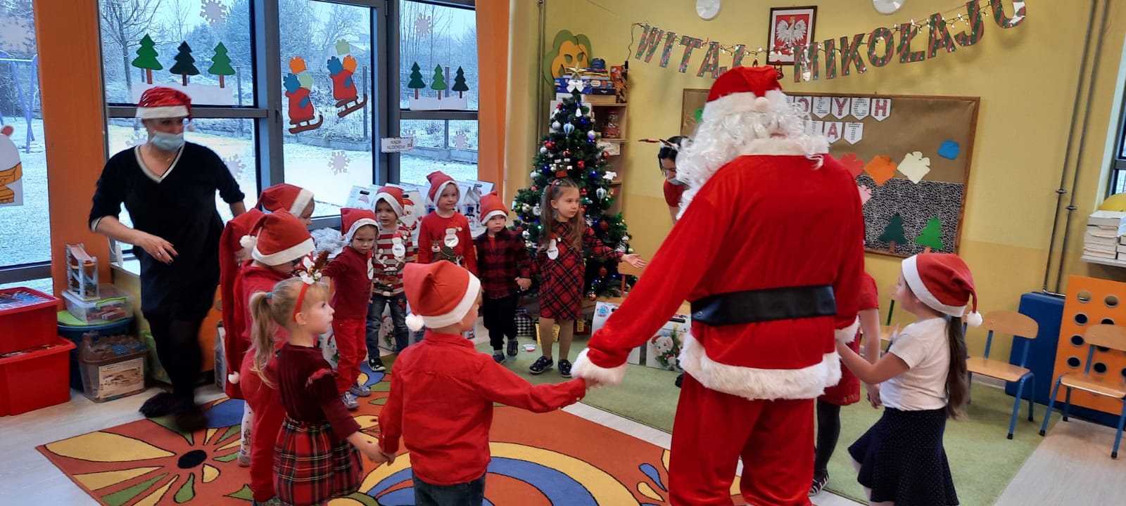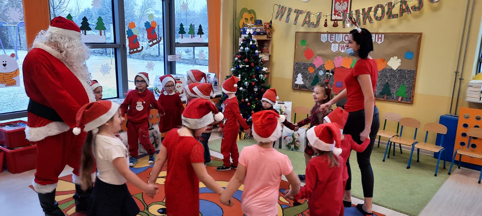W poniedziałek 6 grudnia przedszkolaki już od rana czekały na Mikołaja. Dzieci nadsłuchiwały dźwięku dzwoneczków, które słychać było z daleka. I już wiadomo było, że do przedszkola zbliża się nikt inny, jak Święty Mikołaj we własnej osobie. Mikołaj nie zawiódł dzieci i nie kazał długo na siebie czekać. Już od samego rana zawitał do naszej placówki. Wszystkie przedszkolaki bardzo przeżywały to spotkanie, szczególnie te, które pierwszy raz witały Mikołaja w przedszkolu. Długo oczekiwany gość wywołał uśmiech na twarzach przedszkolaków. Dzieci z ogromną radością przywitały Mikołaja śpiewając mu piosenki i recytując wiersze. Każde dziecko złożyło obietnice, iż kolejny rok będzie grzeczne i posłuszne. Na zakończenie Święty Mikołaj wszystkim przedszkolakom osobiście przekazał piękne prezenty, a w nich – dla każdego coś dobrego.