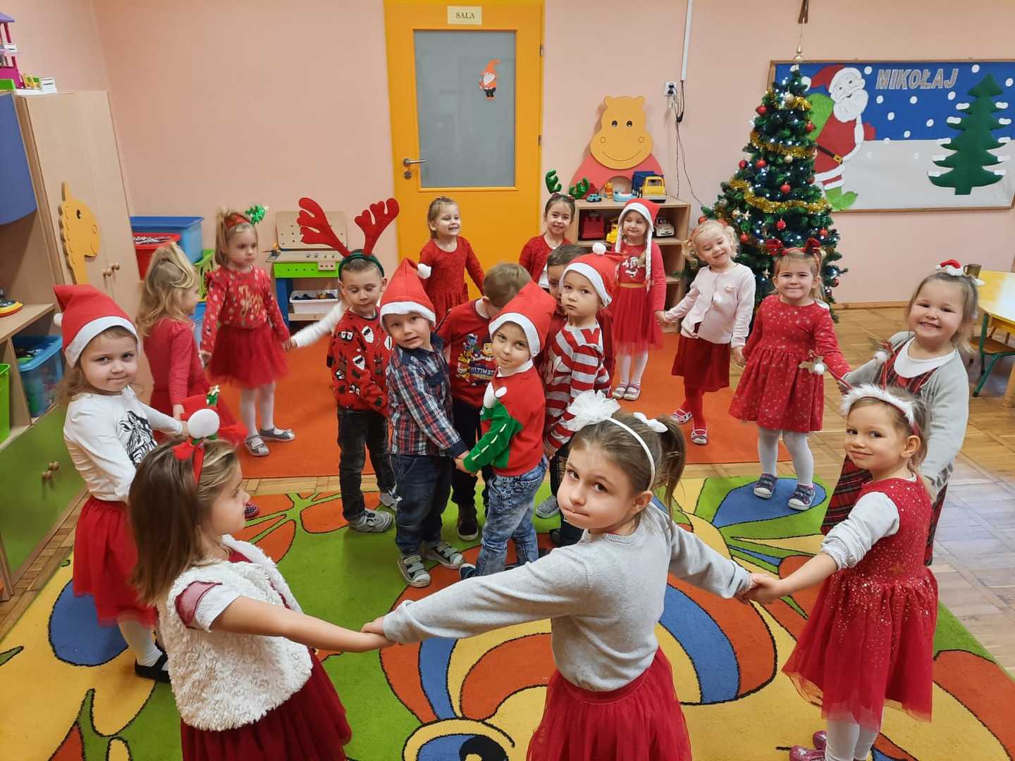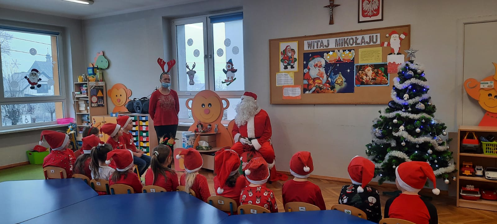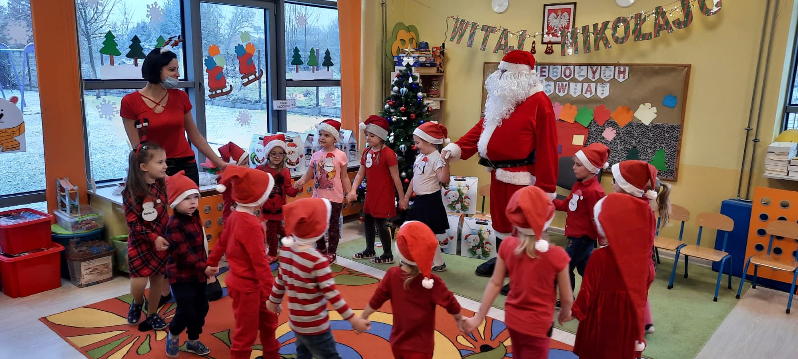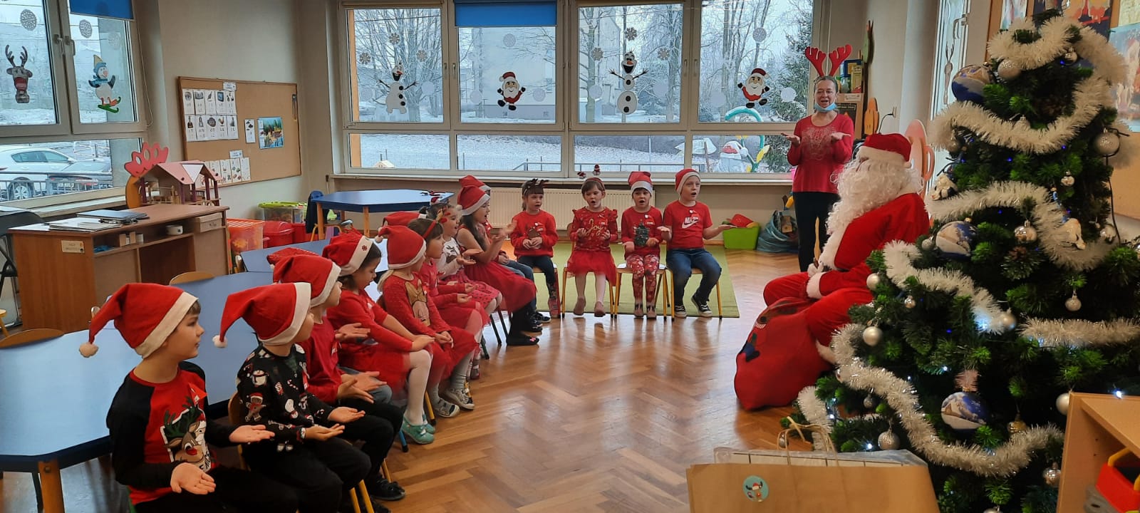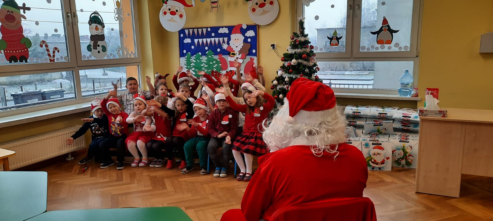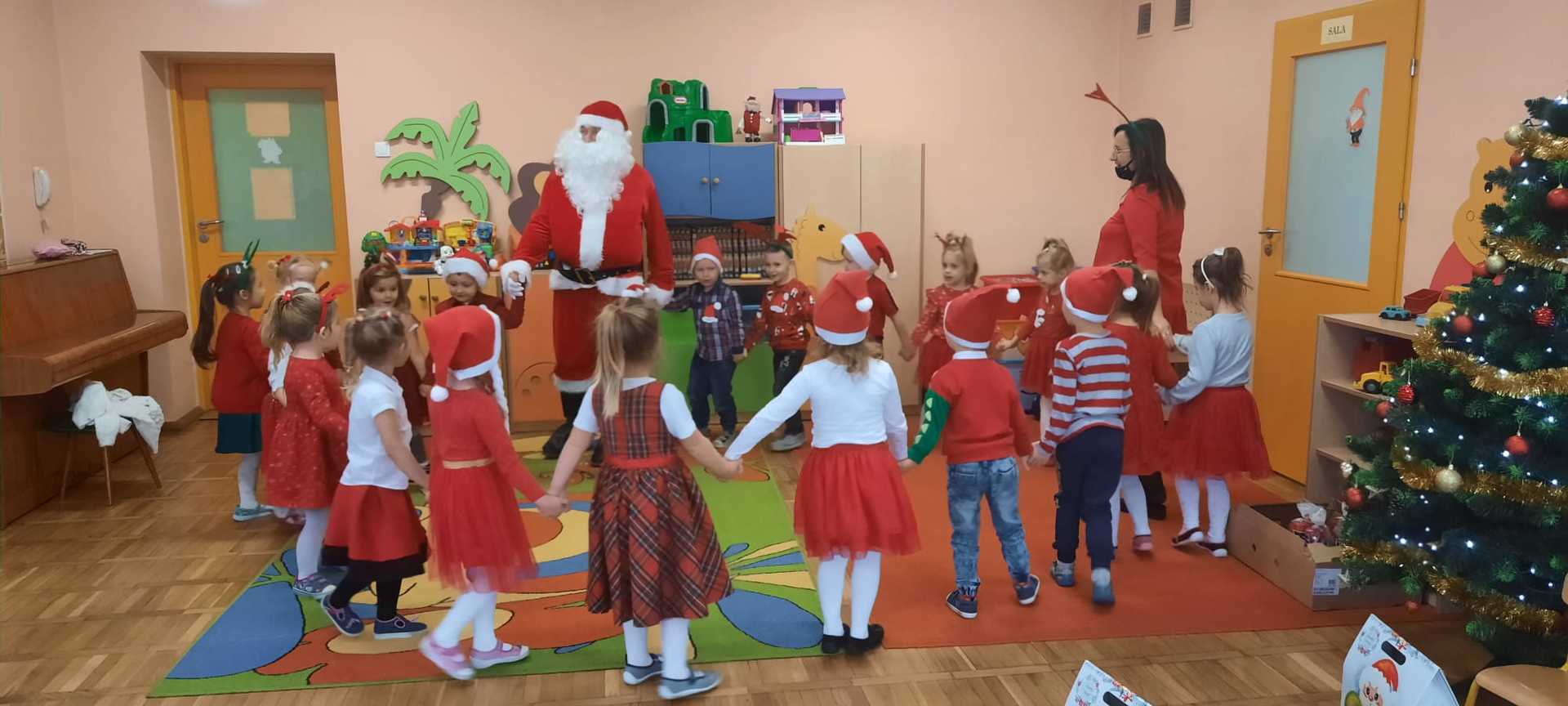 W poniedziałek 6 grudnia przedszkolaki już od rana czekały na Mikołaja. Dzieci nadsłuchiwały dźwięku dzwoneczków, które słychać było z daleka. I już wiadomo było, że do przedszkola zbliża się nikt inny, jak Święty Mikołaj we własnej osobie. Mikołaj nie zawiódł dzieci i nie kazał długo na siebie czekać. Już od samego rana zawitał do naszej placówki. Wszystkie przedszkolaki bardzo przeżywały to spotkanie, szczególnie te, które pierwszy raz witały Mikołaja w przedszkolu. Długo oczekiwany gość wywołał uśmiech na twarzach przedszkolaków. Dzieci z ogromną radością przywitały Mikołaja śpiewając mu piosenki i recytując wiersze. Każde dziecko złożyło obietnice, iż kolejny rok będzie grzeczne i posłuszne. Na zakończenie Święty Mikołaj wszystkim przedszkolakom osobiście przekazał piękne prezenty, a w nich – dla każdego coś dobrego.