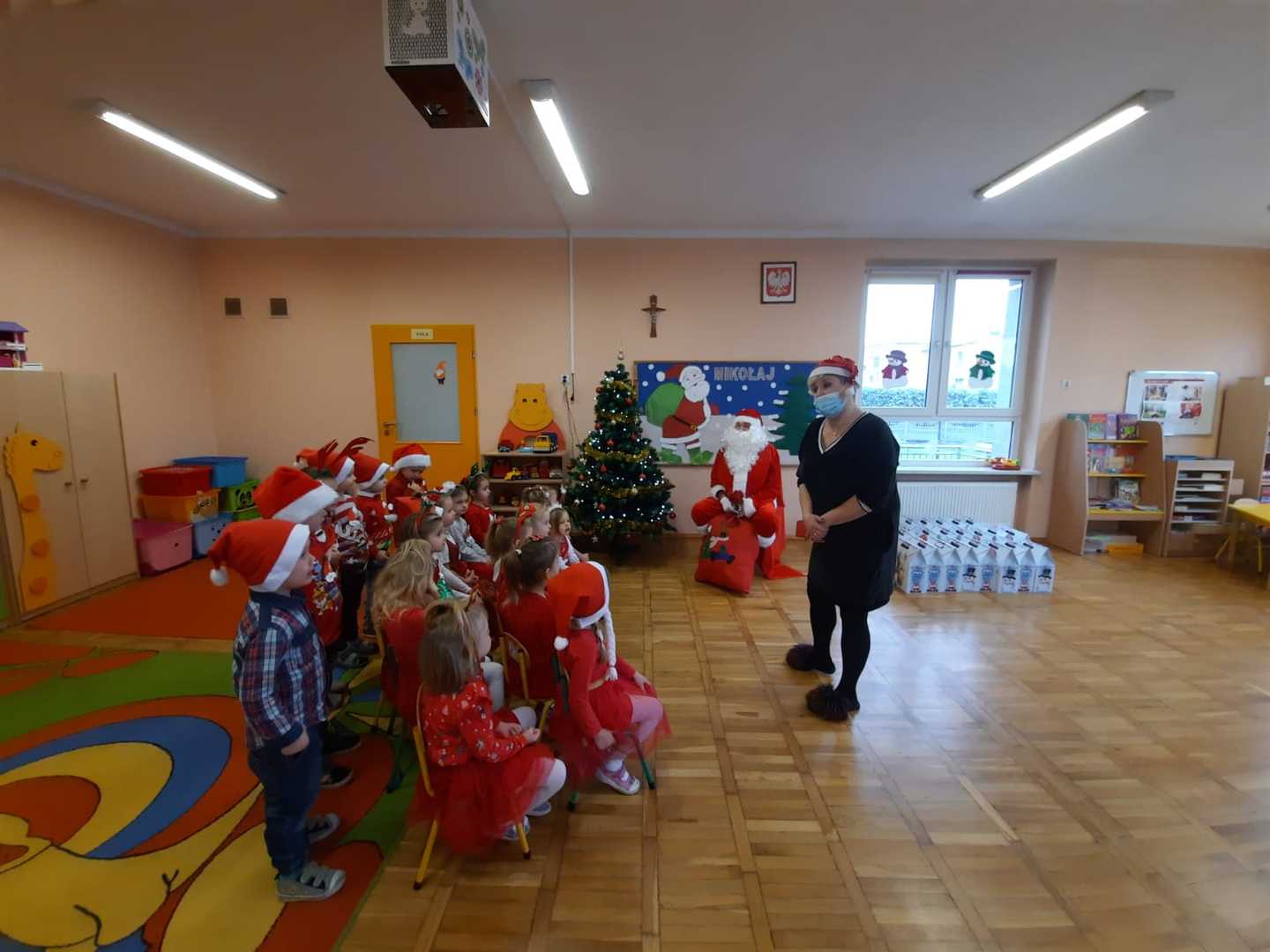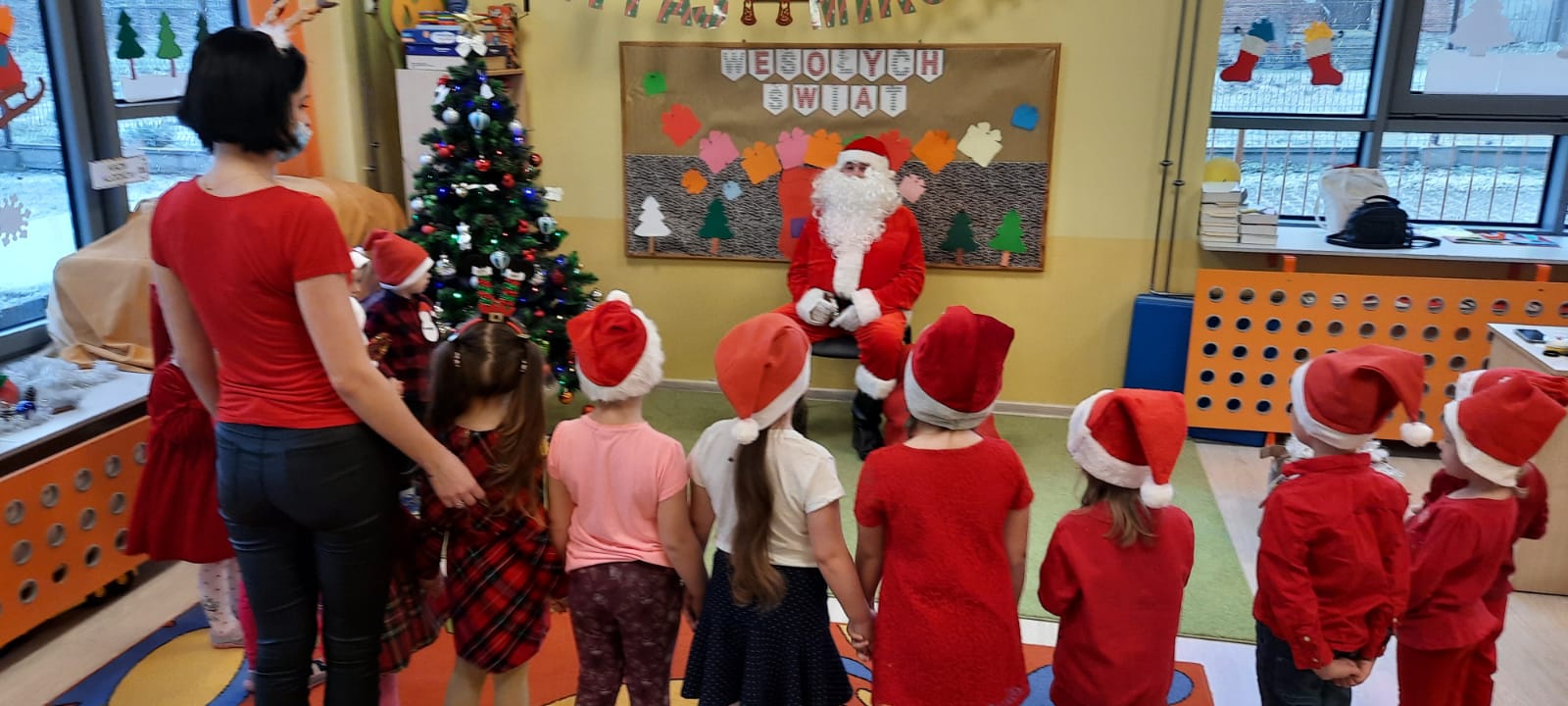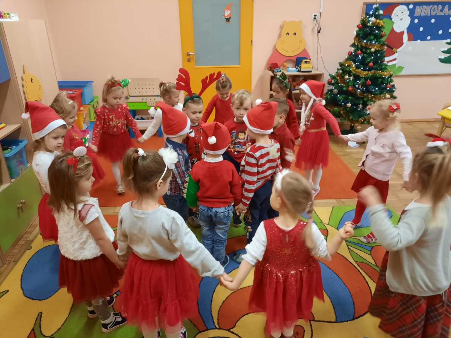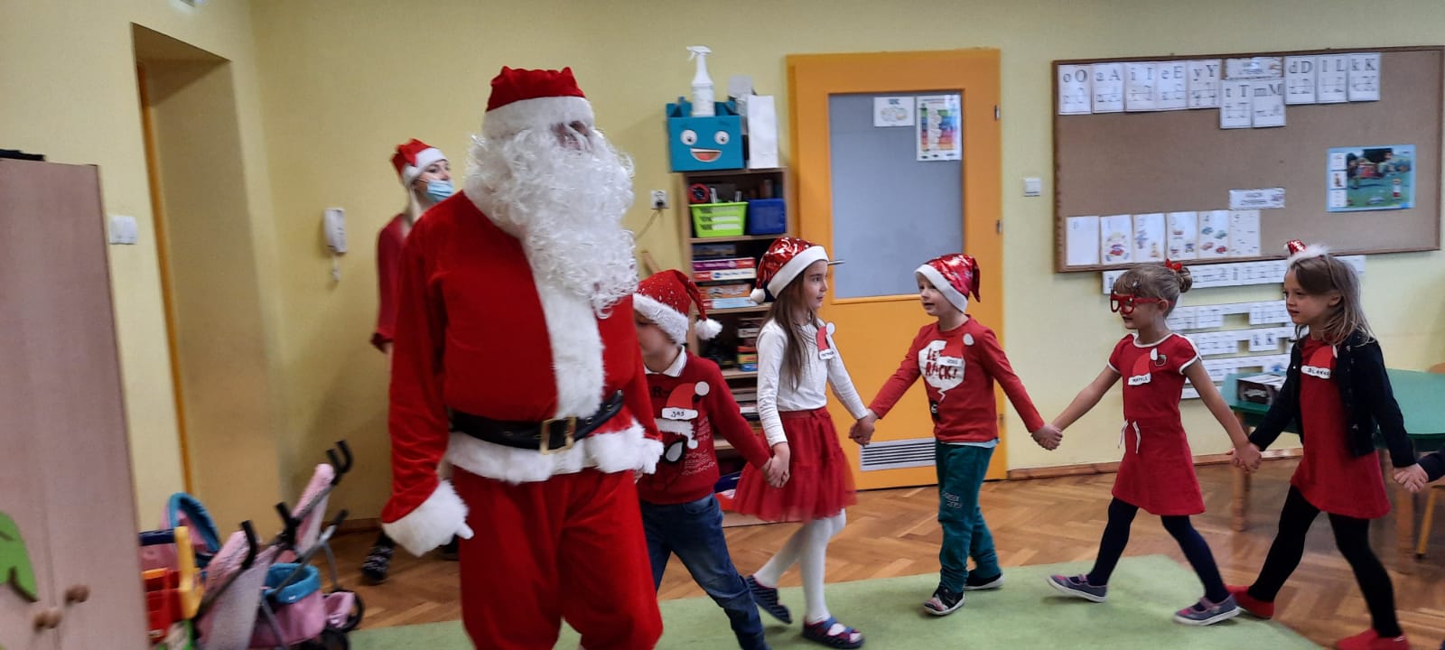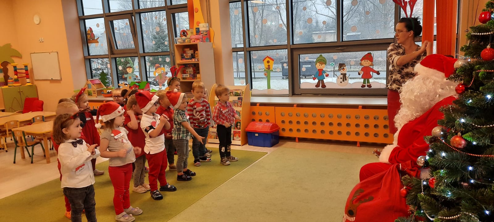 W poniedziałek 6 grudnia przedszkolaki już od rana czekały na Mikołaja. Dzieci nadsłuchiwały dźwięku dzwoneczków, które słychać było z daleka. I już wiadomo było, że do przedszkola zbliża się nikt inny, jak Święty Mikołaj we własnej osobie. Mikołaj nie zawiódł dzieci i nie kazał długo na siebie czekać. Już od samego rana zawitał do naszej placówki. Wszystkie przedszkolaki bardzo przeżywały to spotkanie, szczególnie te, które pierwszy raz witały Mikołaja w przedszkolu. Długo oczekiwany gość wywołał uśmiech na twarzach przedszkolaków. Dzieci z ogromną radością przywitały Mikołaja śpiewając mu piosenki i recytując wiersze. Każde dziecko złożyło obietnice, iż kolejny rok będzie grzeczne i posłuszne. Na zakończenie Święty Mikołaj wszystkim przedszkolakom osobiście przekazał piękne prezenty, a w nich – dla każdego coś dobrego.
