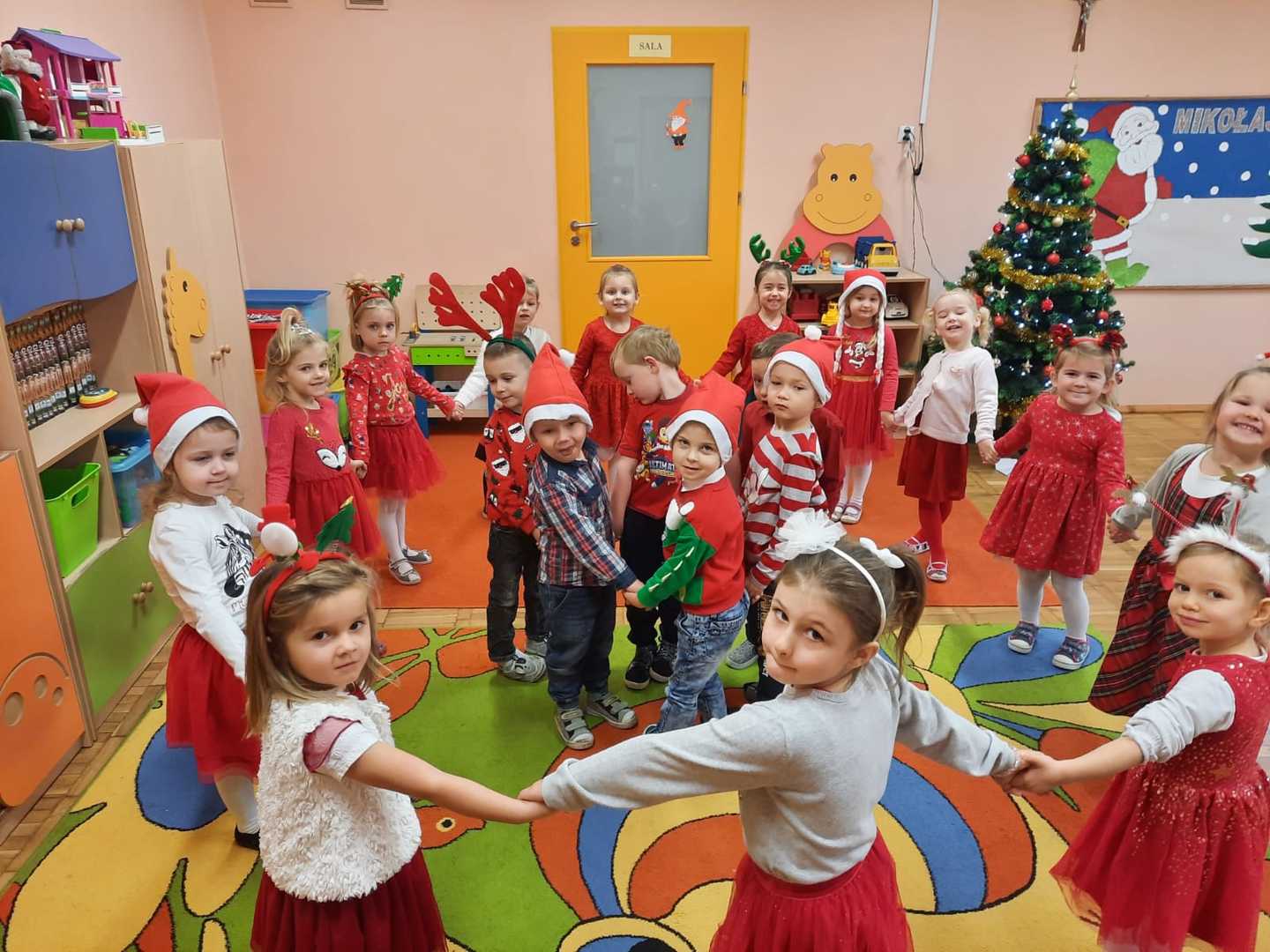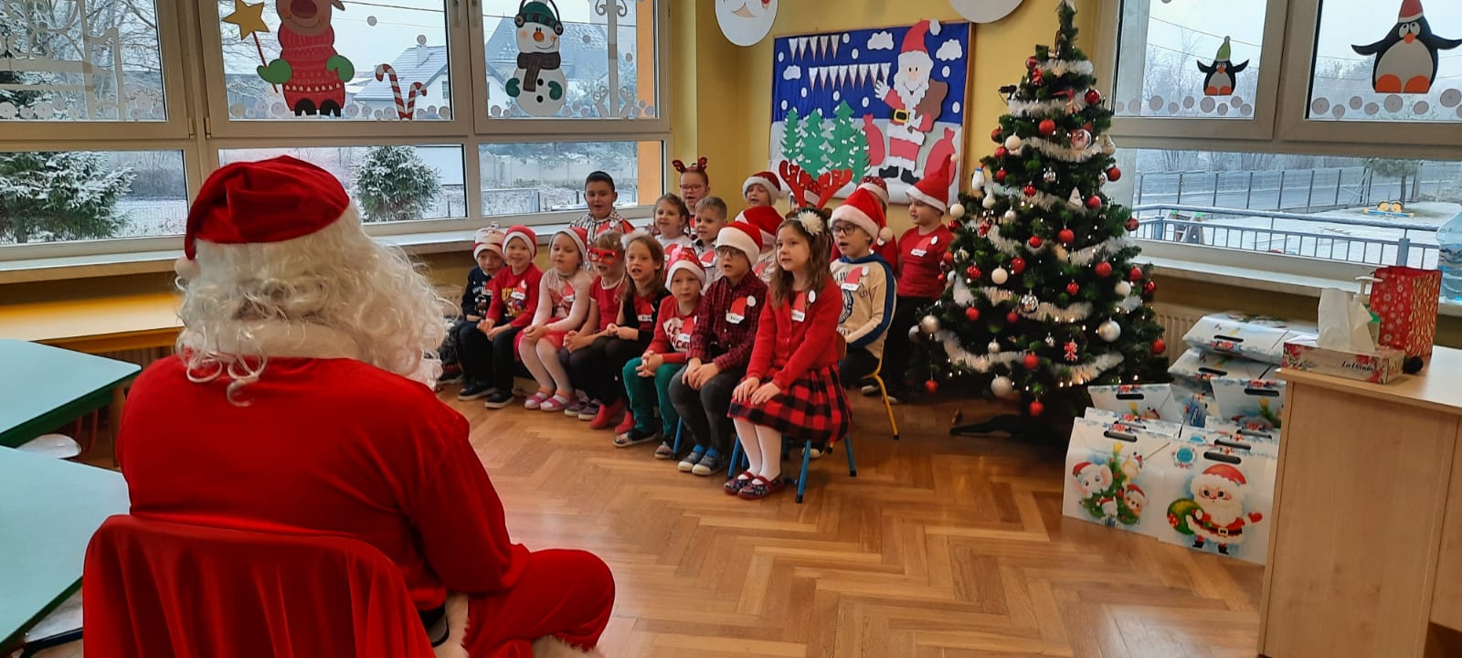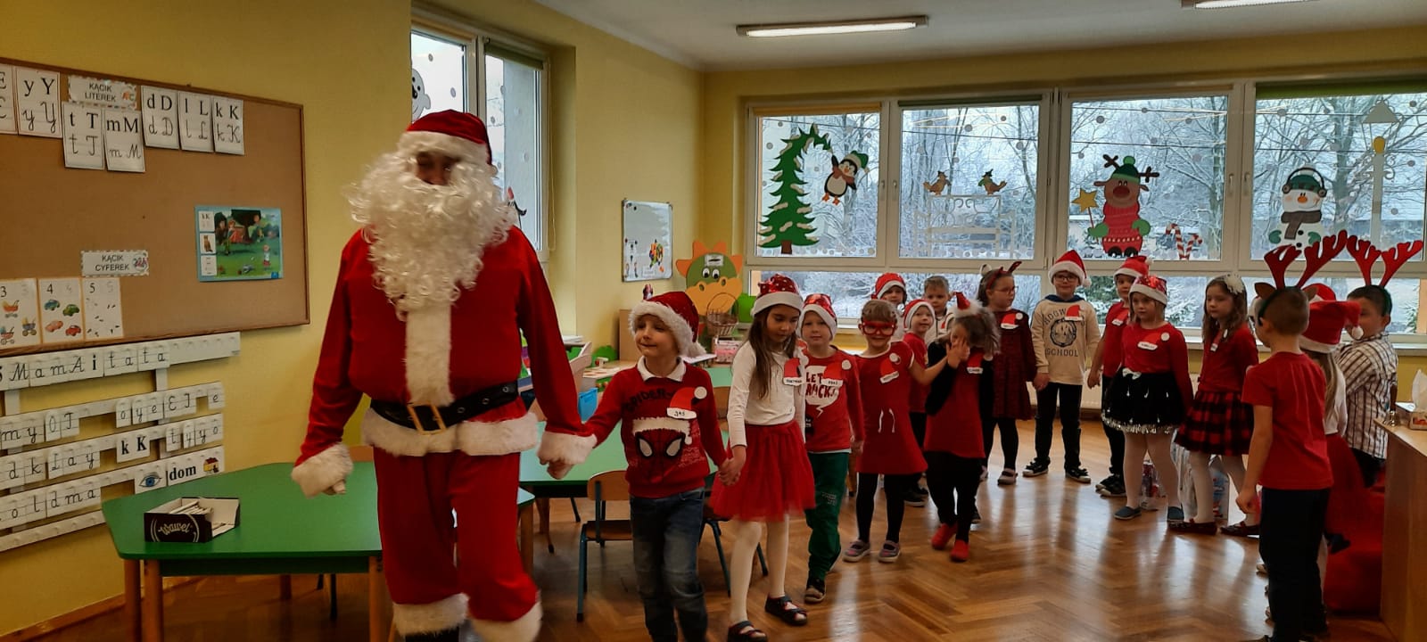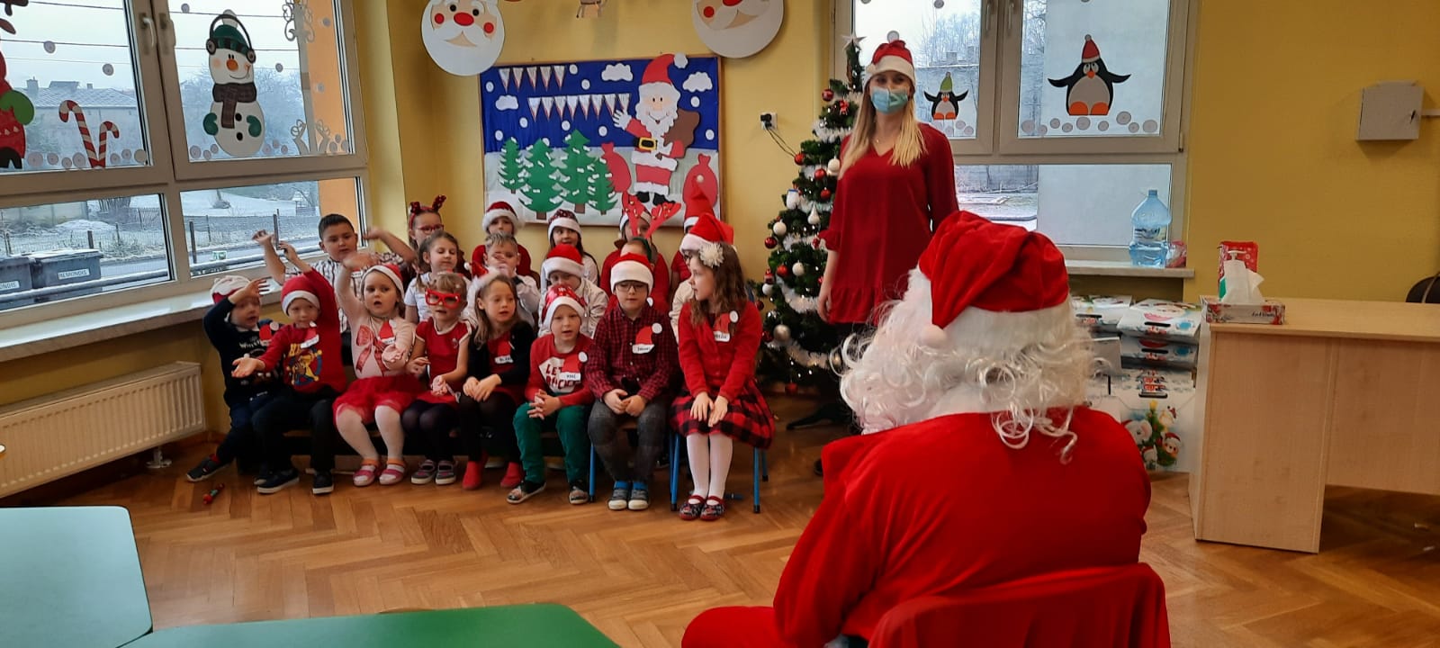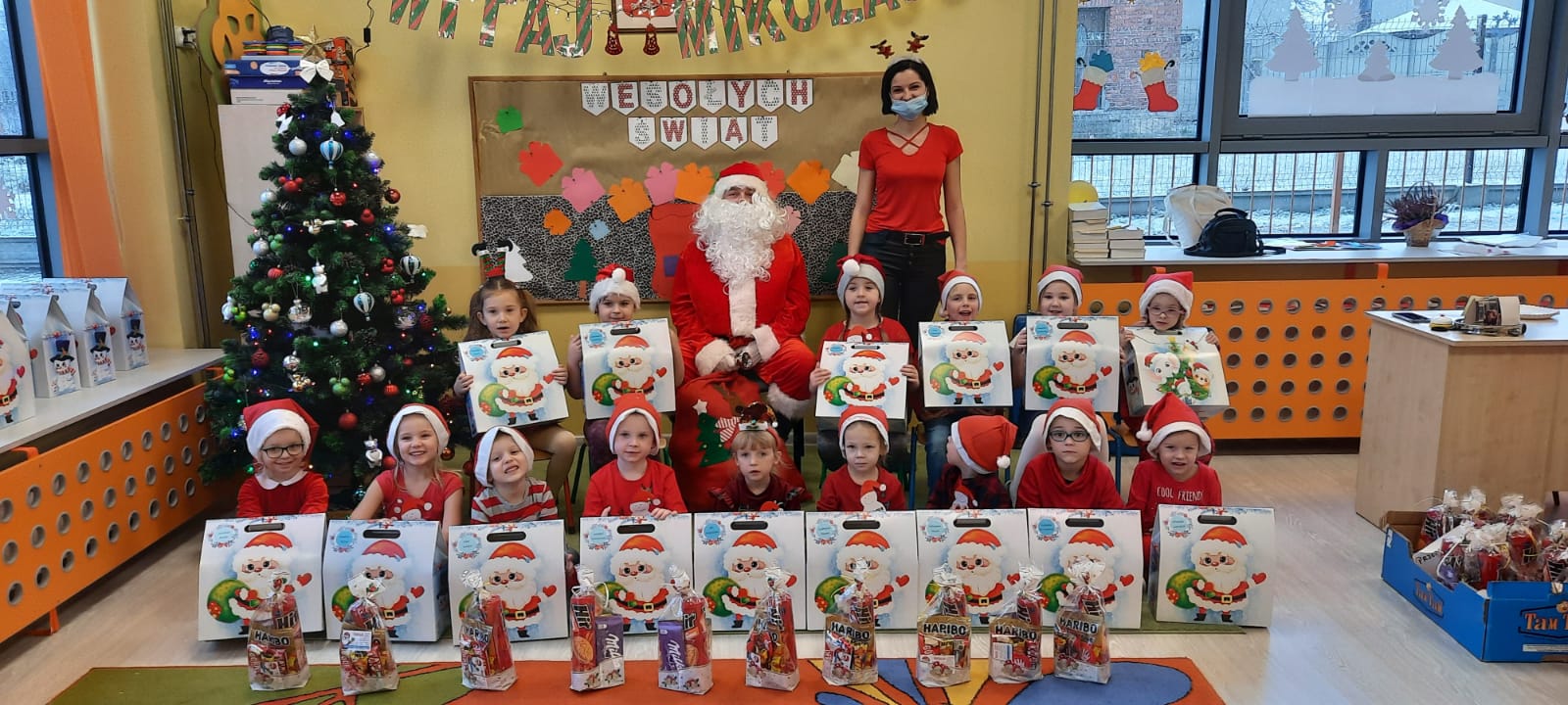 W poniedziałek 6 grudnia przedszkolaki już od rana czekały na Mikołaja. Dzieci nadsłuchiwały dźwięku dzwoneczków, które słychać było z daleka. I już wiadomo było, że do przedszkola zbliża się nikt inny, jak Święty Mikołaj we własnej osobie. Mikołaj nie zawiódł dzieci i nie kazał długo na siebie czekać. Już od samego rana zawitał do naszej placówki. Wszystkie przedszkolaki bardzo przeżywały to spotkanie, szczególnie te, które pierwszy raz witały Mikołaja w przedszkolu. Długo oczekiwany gość wywołał uśmiech na twarzach przedszkolaków. Dzieci z ogromną radością przywitały Mikołaja śpiewając mu piosenki i recytując wiersze. Każde dziecko złożyło obietnice, iż kolejny rok będzie grzeczne i posłuszne. Na zakończenie Święty Mikołaj wszystkim przedszkolakom osobiście przekazał piękne prezenty, a w nich – dla każdego coś dobrego.