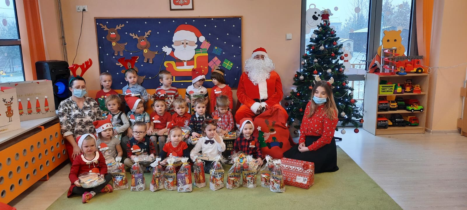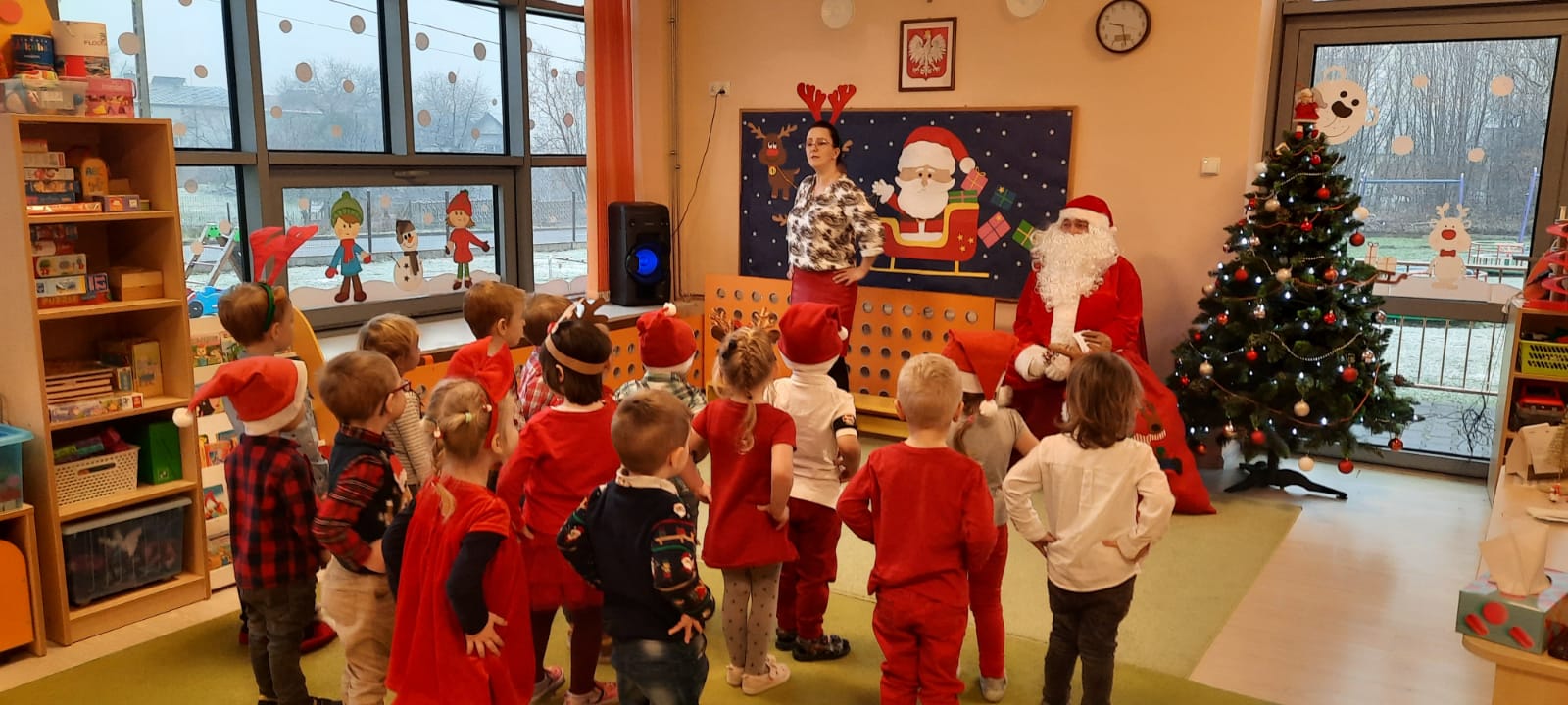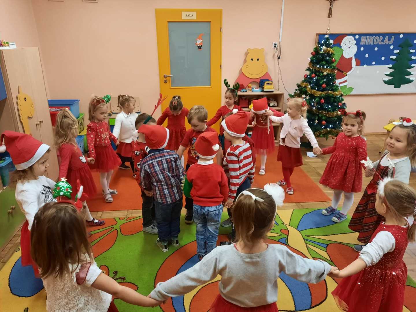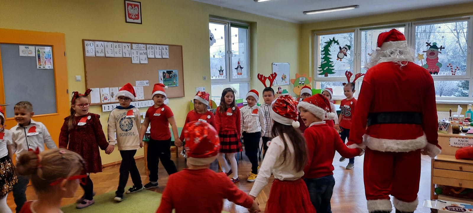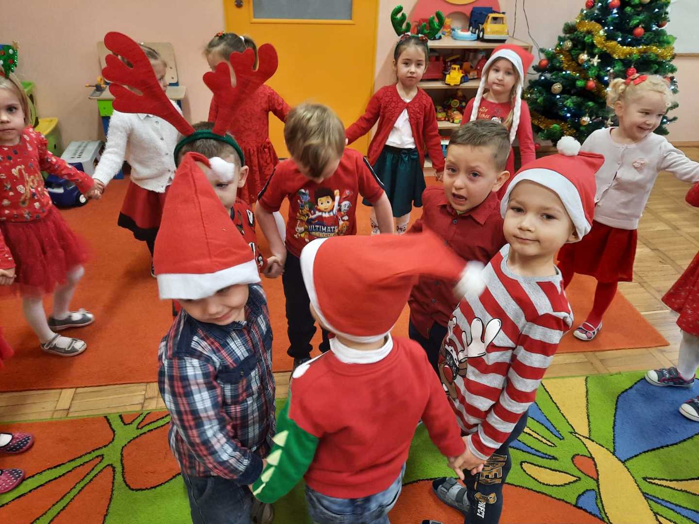 W poniedziałek 6 grudnia przedszkolaki już od rana czekały na Mikołaja. Dzieci nadsłuchiwały dźwięku dzwoneczków, które słychać było z daleka. I już wiadomo było, że do przedszkola zbliża się nikt inny, jak Święty Mikołaj we własnej osobie. Mikołaj nie zawiódł dzieci i nie kazał długo na siebie czekać. Już od samego rana zawitał do naszej placówki. Wszystkie przedszkolaki bardzo przeżywały to spotkanie, szczególnie te, które pierwszy raz witały Mikołaja w przedszkolu. Długo oczekiwany gość wywołał uśmiech na twarzach przedszkolaków. Dzieci z ogromną radością przywitały Mikołaja śpiewając mu piosenki i recytując wiersze. Każde dziecko złożyło obietnice, iż kolejny rok będzie grzeczne i posłuszne. Na zakończenie Święty Mikołaj wszystkim przedszkolakom osobiście przekazał piękne prezenty, a w nich – dla każdego coś dobrego.
