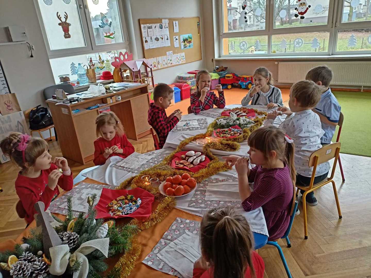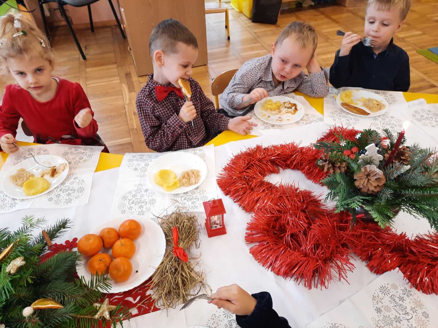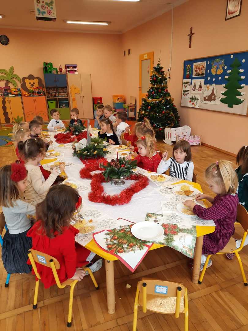 Tuż przed świętami Bożego Narodzenia,każda z grup spotkała się przy odświętnym stole wigilijnym.