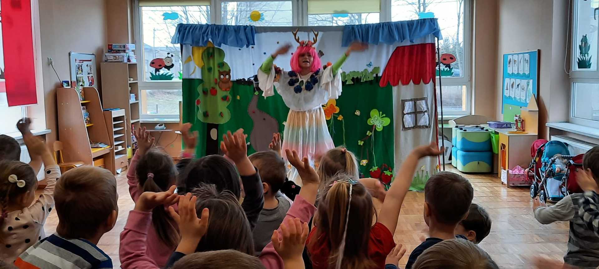 które wraz z bohaterami przedstawienia przeżywały bajkowe przygody na łące.