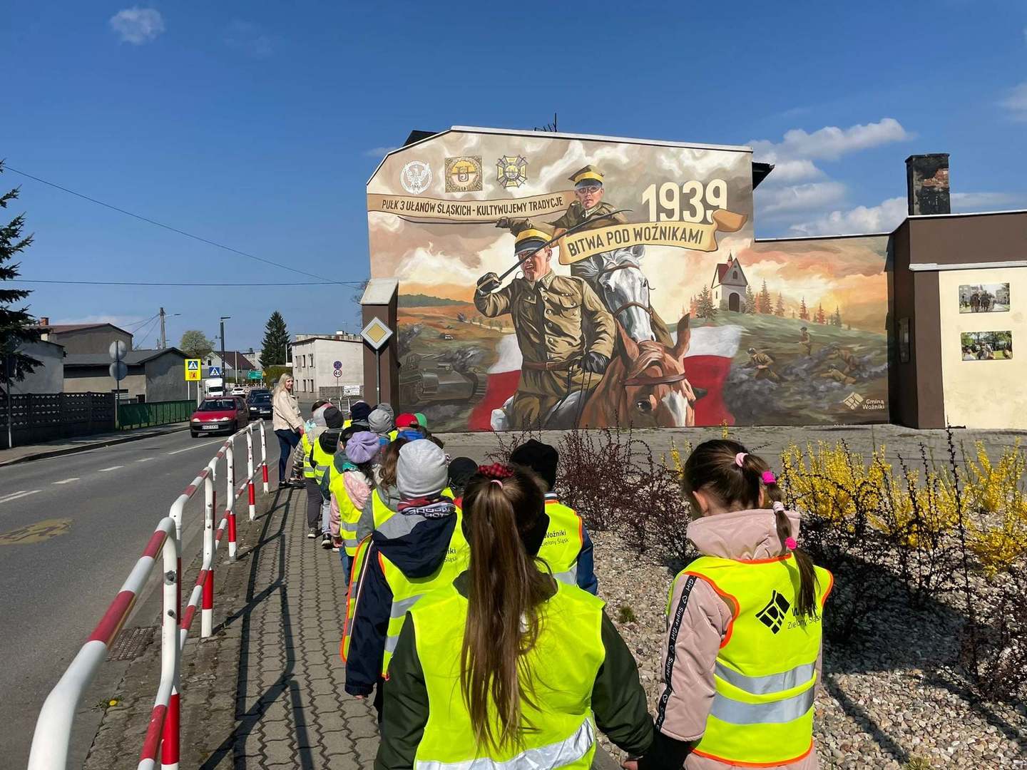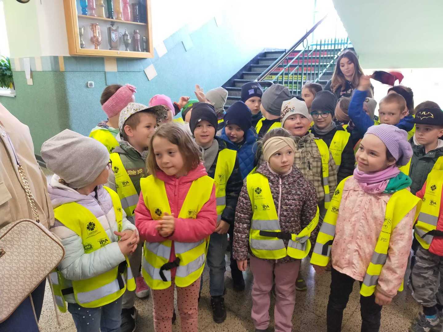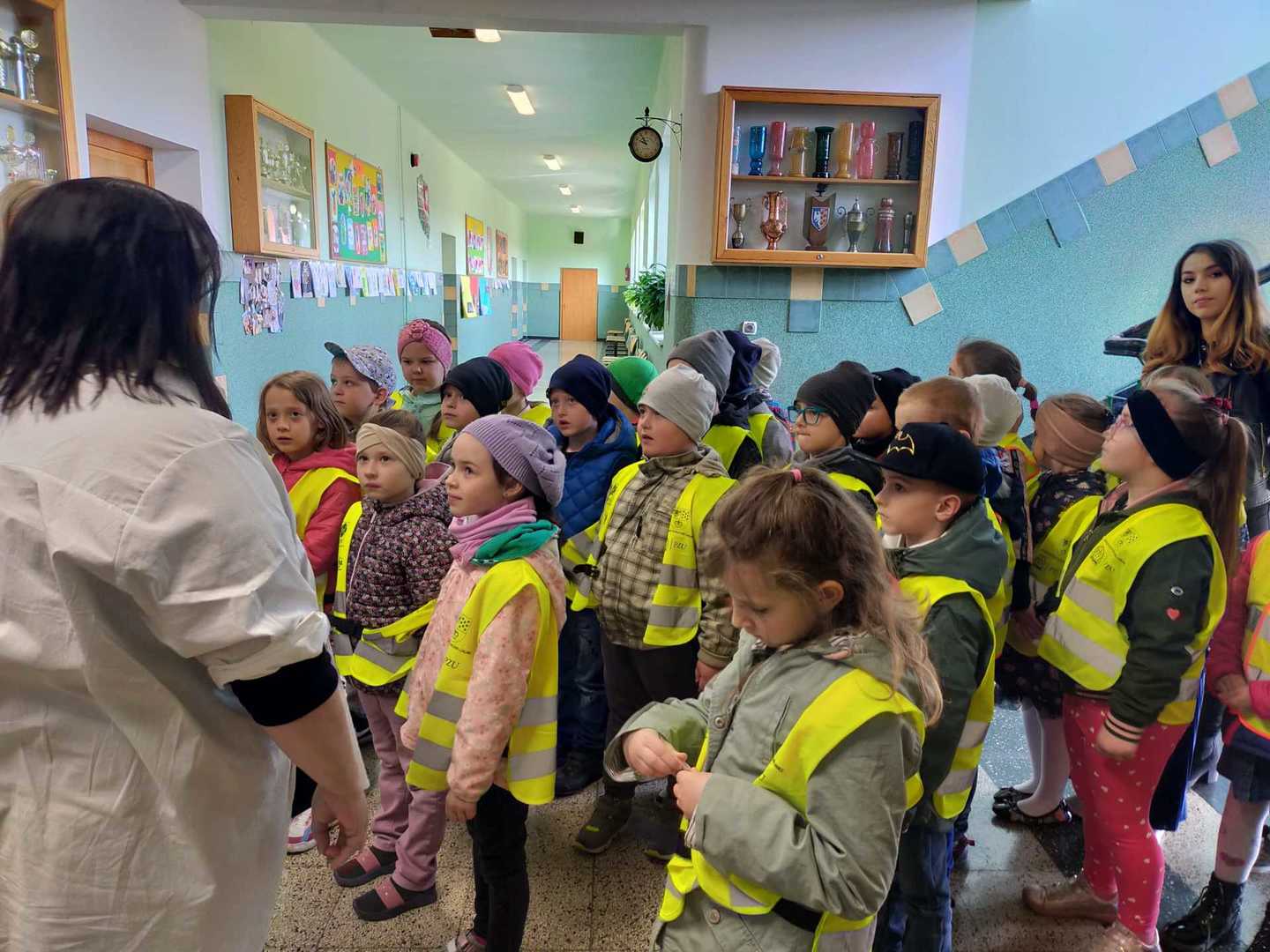 Dnia 28 kwietnia, przedszkolaki z najstarszych grup przedszkolnych odwiedziły Szkołę Podstawową im. Józefa Lompy w Woźnikach. Celem naszej wizyty było bliższe poznanie szkoły, do której dzieci będą uczęszczać w najbliższym czasie. U progu szkoły przywitała nas pani Wicedyrektor Renata Flakus, która była naszym przewodnikiem w tym dniu. Wycieczkę rozpoczęliśmy od obejrzenia najważniejszych pomieszczeń szkolnych, w pierwszej kolejności udaliśmy się do gabinetu pani Dyrektor Szkoły – Lilianny Lakomy-Brząkała, która pokazała nam swój gabinet oraz sekretariat, a także obdarowała nas słodkim poczęstunkiem. Następnie odwiedziliśmy kuchnię oraz stołówkę, gdzie już niedługo będziemy zajadać pyszne obiady. Zobaczyliśmy, jak wyglądają sale do których uczęszczają uczniowie klas I , II oraz III. Mieliśmy również możliwość odwiedzenia sali komputerowej. W każdej sali lekcyjnej uczniowie przywitali nas piosenką, zostaliśmy również obdarowani zakładkami do książek, które na pewno wkrótce bardzo nam się przydadzą. Zajrzeliśmy jeszcze do Biblioteki, gdzie pani Agnieszka Tyka opowiedziała nam wiele ciekawych rzeczy na temat tego miejsca. Na koniec pobytu w szkole poszliśmy na boisko oraz plac zabaw, na którym świetnie się bawiliśmy, po czym pełni wrażeń wróciliśmy do przedszkola.