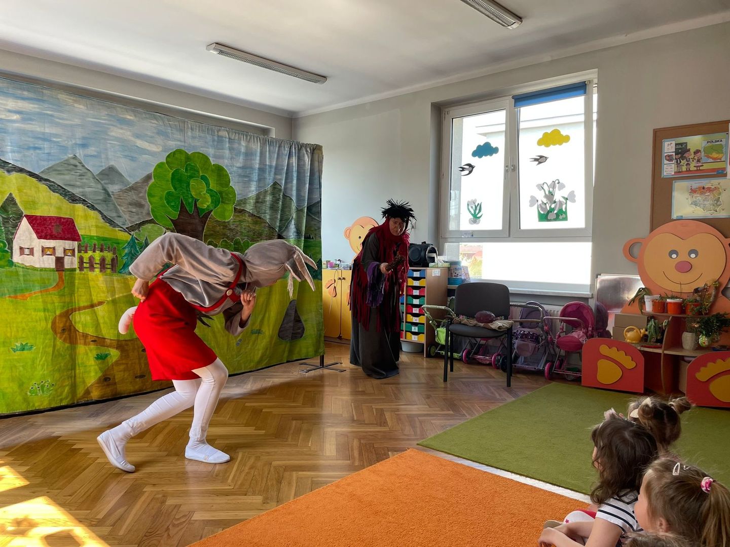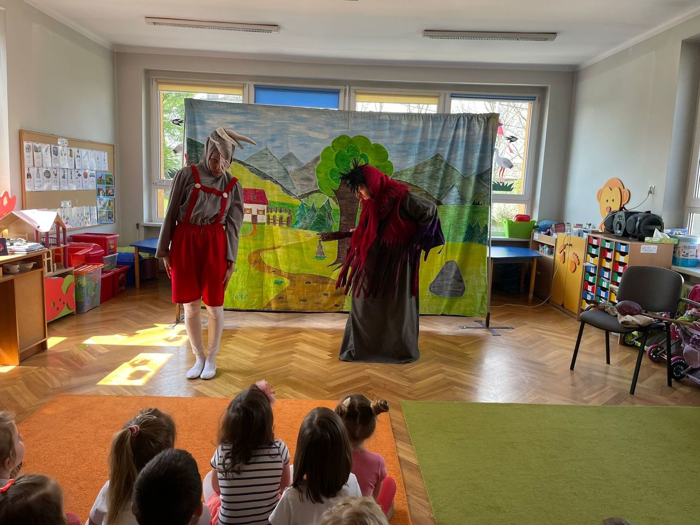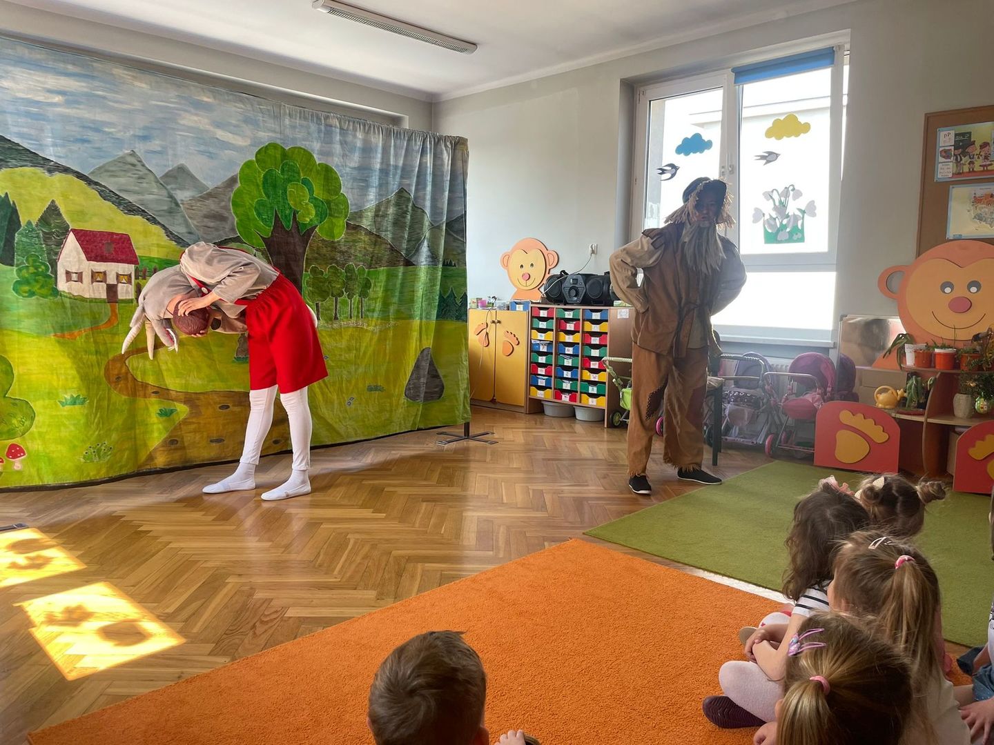 Przedszkolaki aktywnie uczestniczyły w przedstawieniu, angażując się w śpiew z głównym bohaterem. Bajka dostarczyła dzieciom wielu niezapomnianych wrażeń, dobrej zabawy i dużo uśmiechu!!!