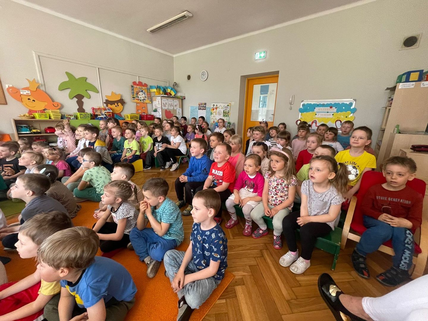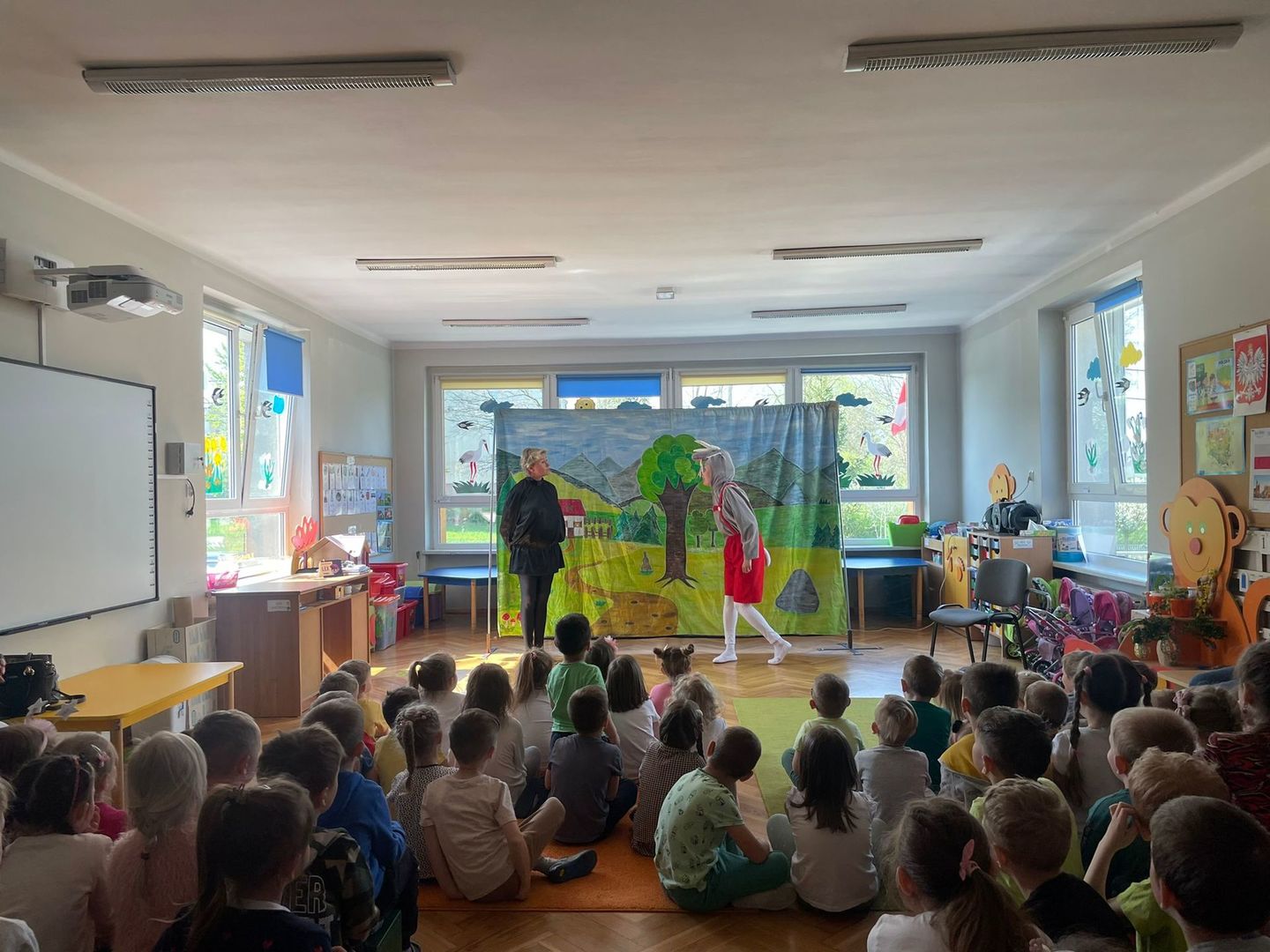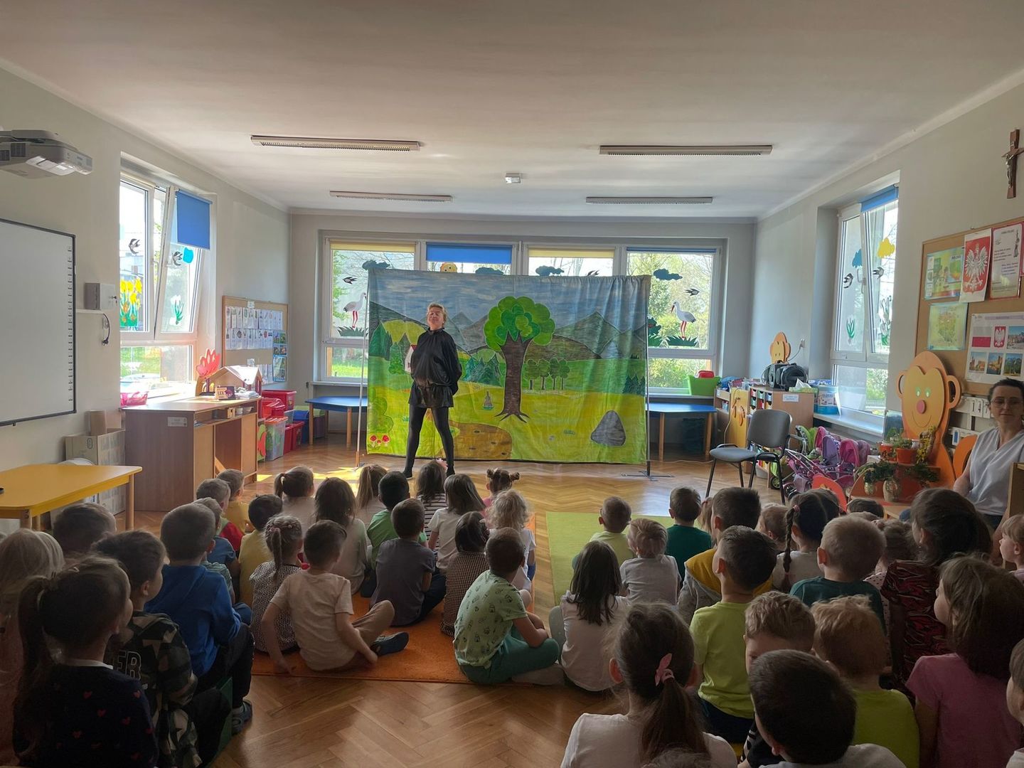 Przedszkolaki aktywnie uczestniczyły w przedstawieniu, angażując się w śpiew z głównym bohaterem. Bajka dostarczyła dzieciom wielu niezapomnianych wrażeń, dobrej zabawy i dużo uśmiechu!!!
