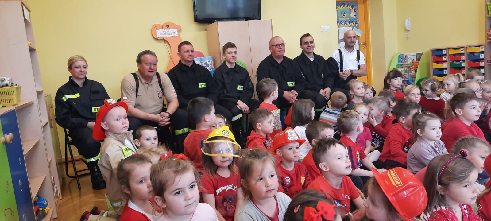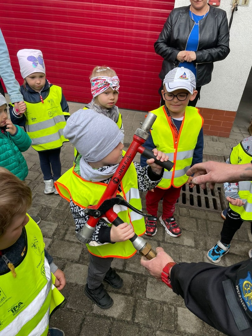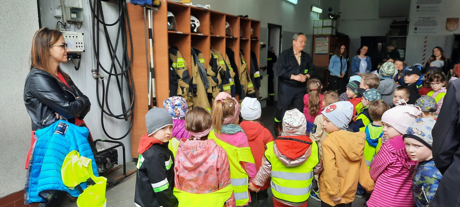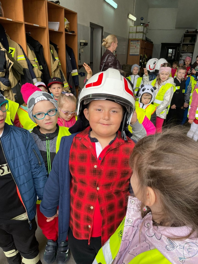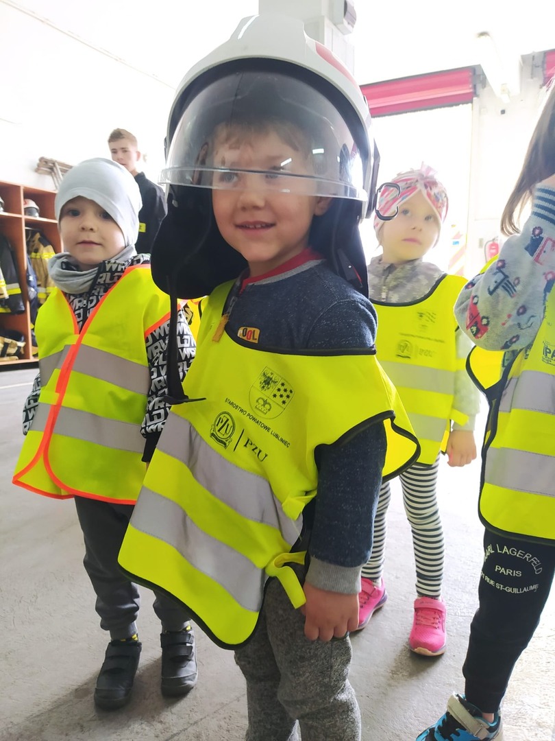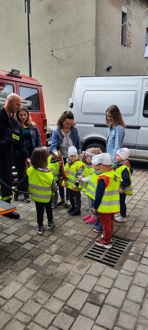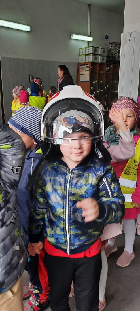 Dzisiejszy dzień był dla nas pełny wrażeń, wszystko za sprawą tego, że wybraliśmy się do jednostki OSP w Woźnikach, gdzie przywitał nas Prezes jednostki pan Krzysztof Nowacki, który oprowadził nas po jednostce opowiadając o pracy strażaka. Przedszkolaki z ogromnym zainteresowaniem słuchały opowieści o trudnej, odpowiedzialnej i niebezpiecznej pracy strażaka, jak i zadawały pytania. Utrwaliły znajomość numeru alarmowego - 112. Dużo radości sprawiło dzieciom przymierzanie hełmu i odzieży ochronnej używanej w akcjach ratowniczo-gaśniczych. Ponadto oglądały wozy strażackie, poznały wyposażenie i sprzęt, służący do udzielania pomocy nie tylko w przypadku pożarów, ale również wypadków drogowych i innych trudnych sytuacji wymagających interwencji strażaków. Następnie wróciliśmy do przedszkola, gdzie dzieci z grup IV i V zaprezentowały program artystyczny dla naszych gości.