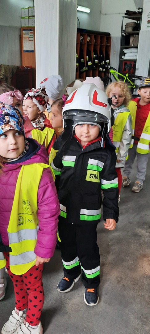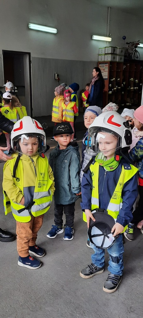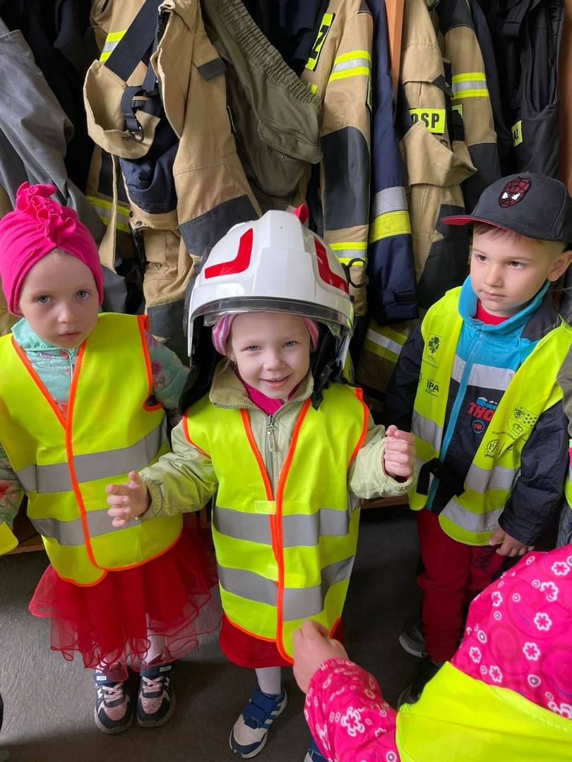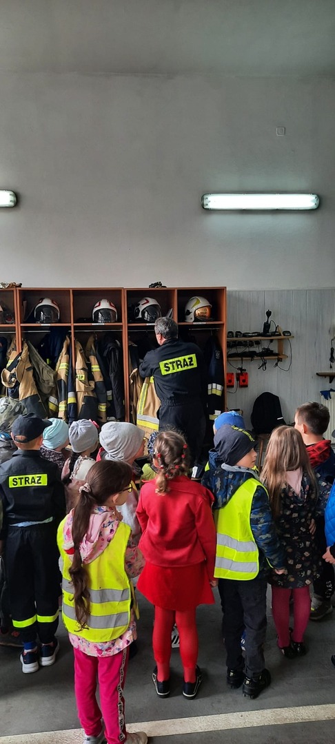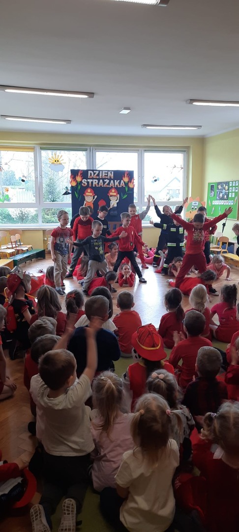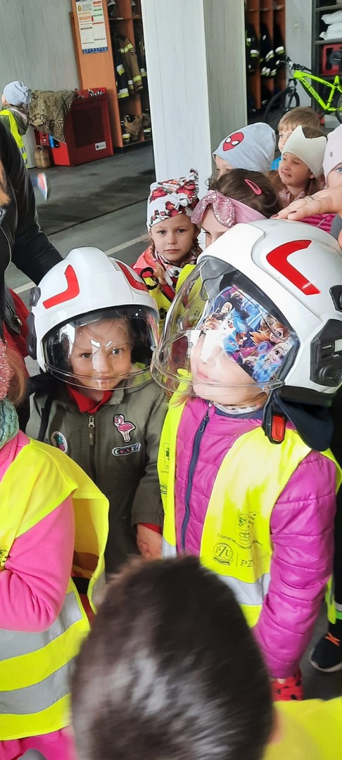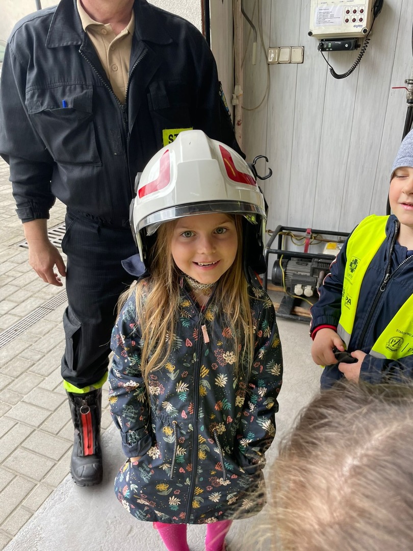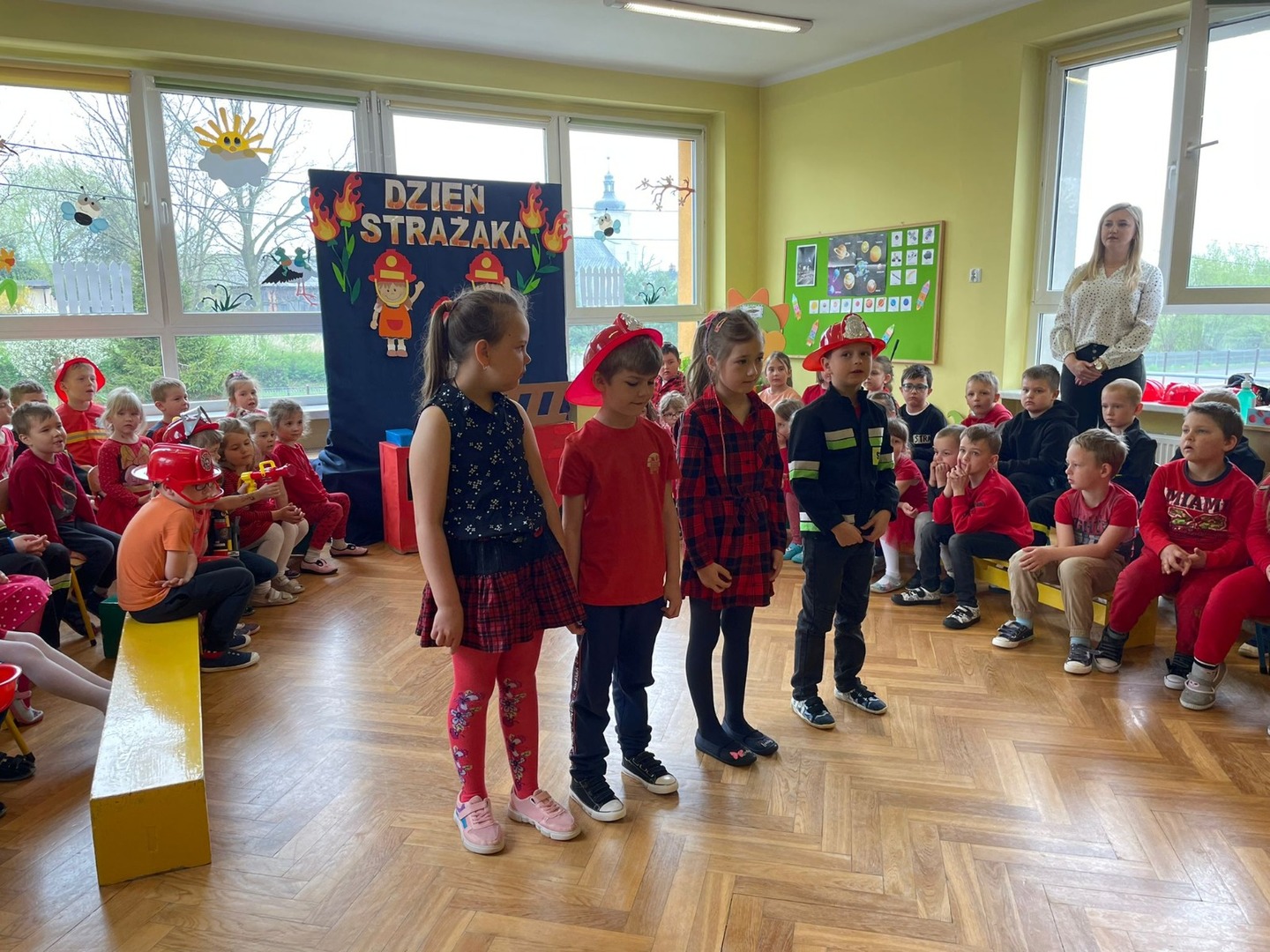 Dzisiejszy dzień był dla nas pełny wrażeń, wszystko za sprawą tego, że wybraliśmy się do jednostki OSP w Woźnikach, gdzie przywitał nas Prezes jednostki pan Krzysztof Nowacki, który oprowadził nas po jednostce opowiadając o pracy strażaka. Przedszkolaki z ogromnym zainteresowaniem słuchały opowieści o trudnej, odpowiedzialnej i niebezpiecznej pracy strażaka, jak i zadawały pytania. Utrwaliły znajomość numeru alarmowego - 112. Dużo radości sprawiło dzieciom przymierzanie hełmu i odzieży ochronnej używanej w akcjach ratowniczo-gaśniczych. Ponadto oglądały wozy strażackie, poznały wyposażenie i sprzęt, służący do udzielania pomocy nie tylko w przypadku pożarów, ale również wypadków drogowych i innych trudnych sytuacji wymagających interwencji strażaków. Następnie wróciliśmy do przedszkola, gdzie dzieci z grup IV i V zaprezentowały program artystyczny dla naszych gości.