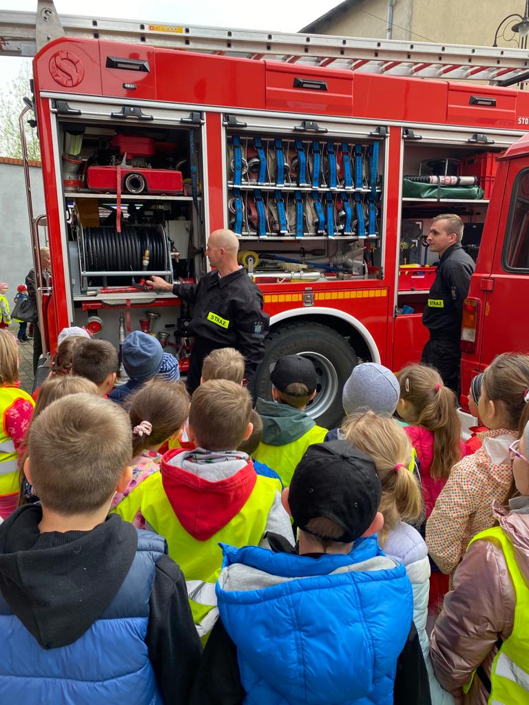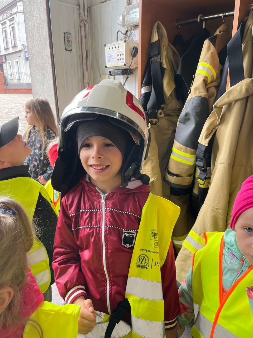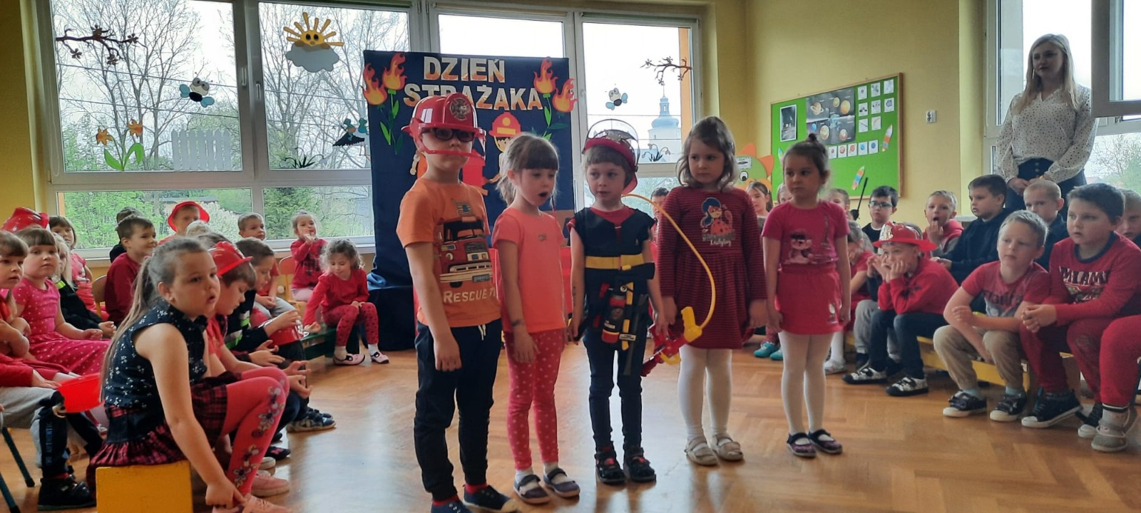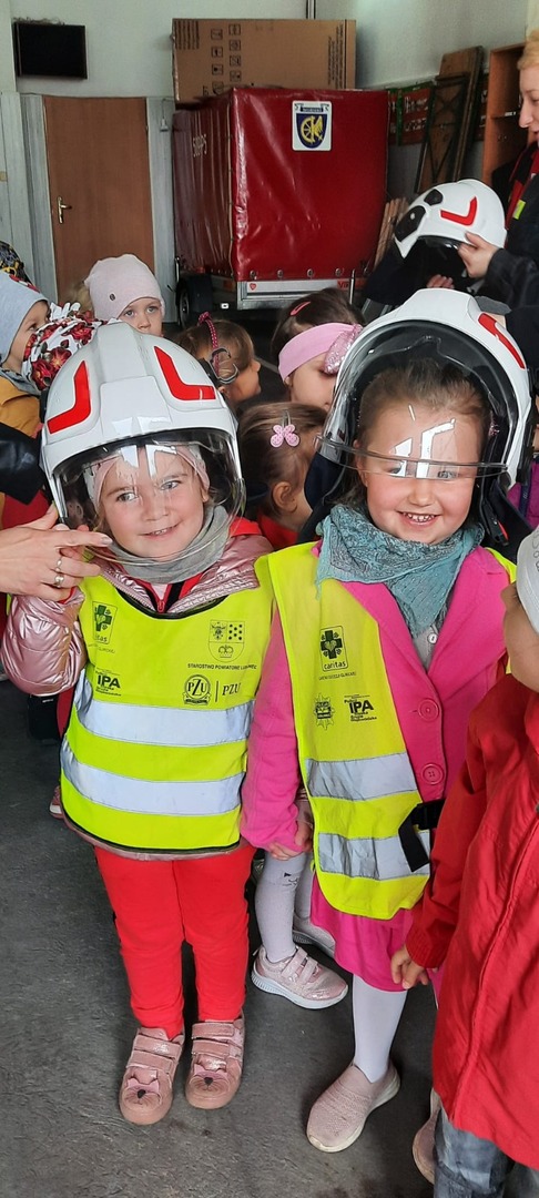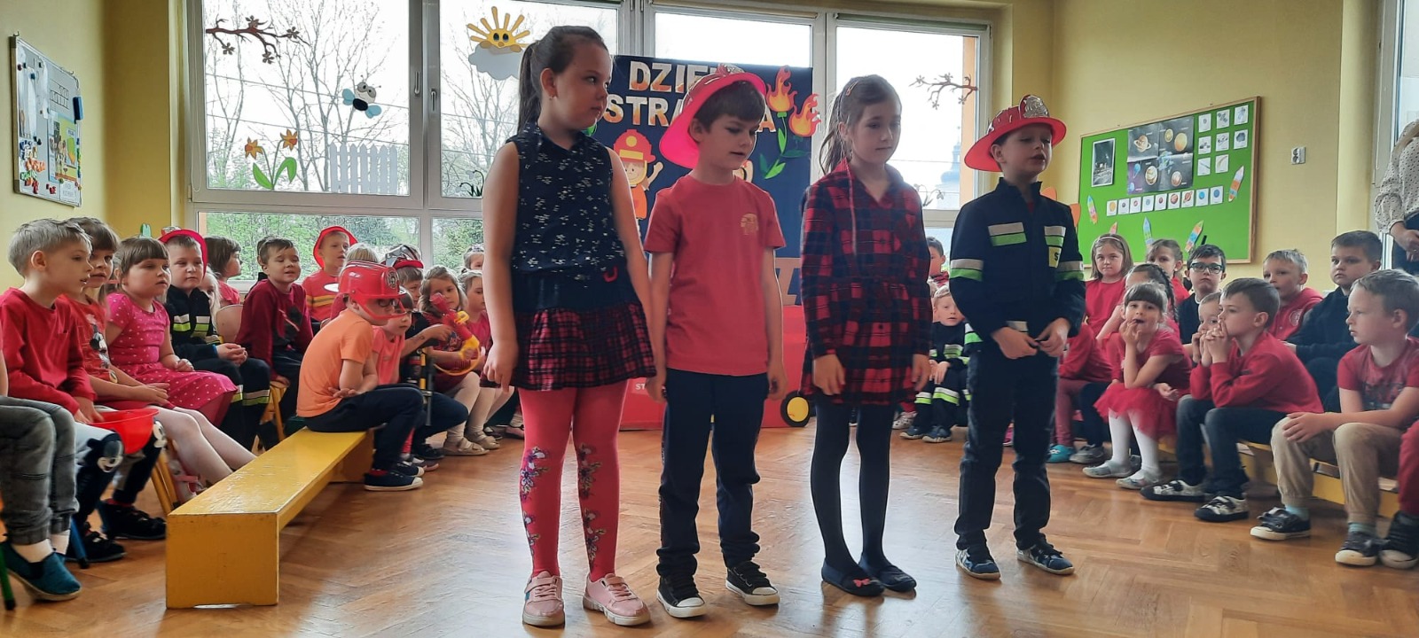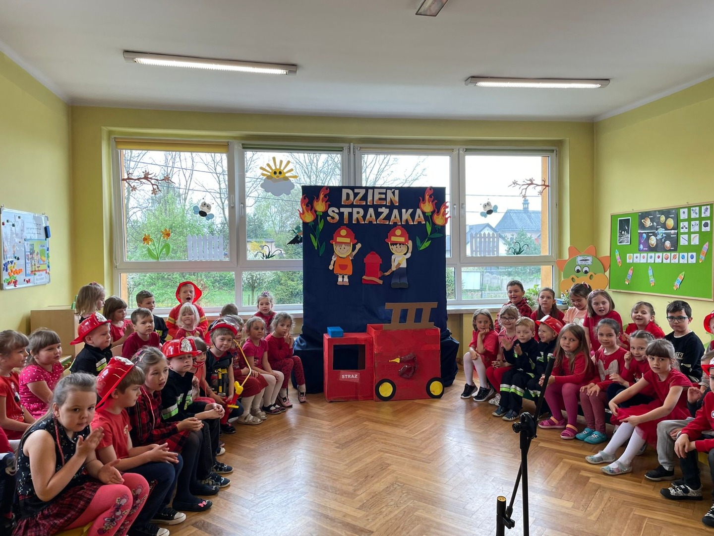 Dzisiejszy dzień był dla nas pełny wrażeń, wszystko za sprawą tego, że wybraliśmy się do jednostki OSP w Woźnikach, gdzie przywitał nas Prezes jednostki pan Krzysztof Nowacki, który oprowadził nas po jednostce opowiadając o pracy strażaka. Przedszkolaki z ogromnym zainteresowaniem słuchały opowieści o trudnej, odpowiedzialnej i niebezpiecznej pracy strażaka, jak i zadawały pytania. Utrwaliły znajomość numeru alarmowego - 112. Dużo radości sprawiło dzieciom przymierzanie hełmu i odzieży ochronnej używanej w akcjach ratowniczo-gaśniczych. Ponadto oglądały wozy strażackie, poznały wyposażenie i sprzęt, służący do udzielania pomocy nie tylko w przypadku pożarów, ale również wypadków drogowych i innych trudnych sytuacji wymagających interwencji strażaków. Następnie wróciliśmy do przedszkola, gdzie dzieci z grup IV i V zaprezentowały program artystyczny dla naszych gości.
