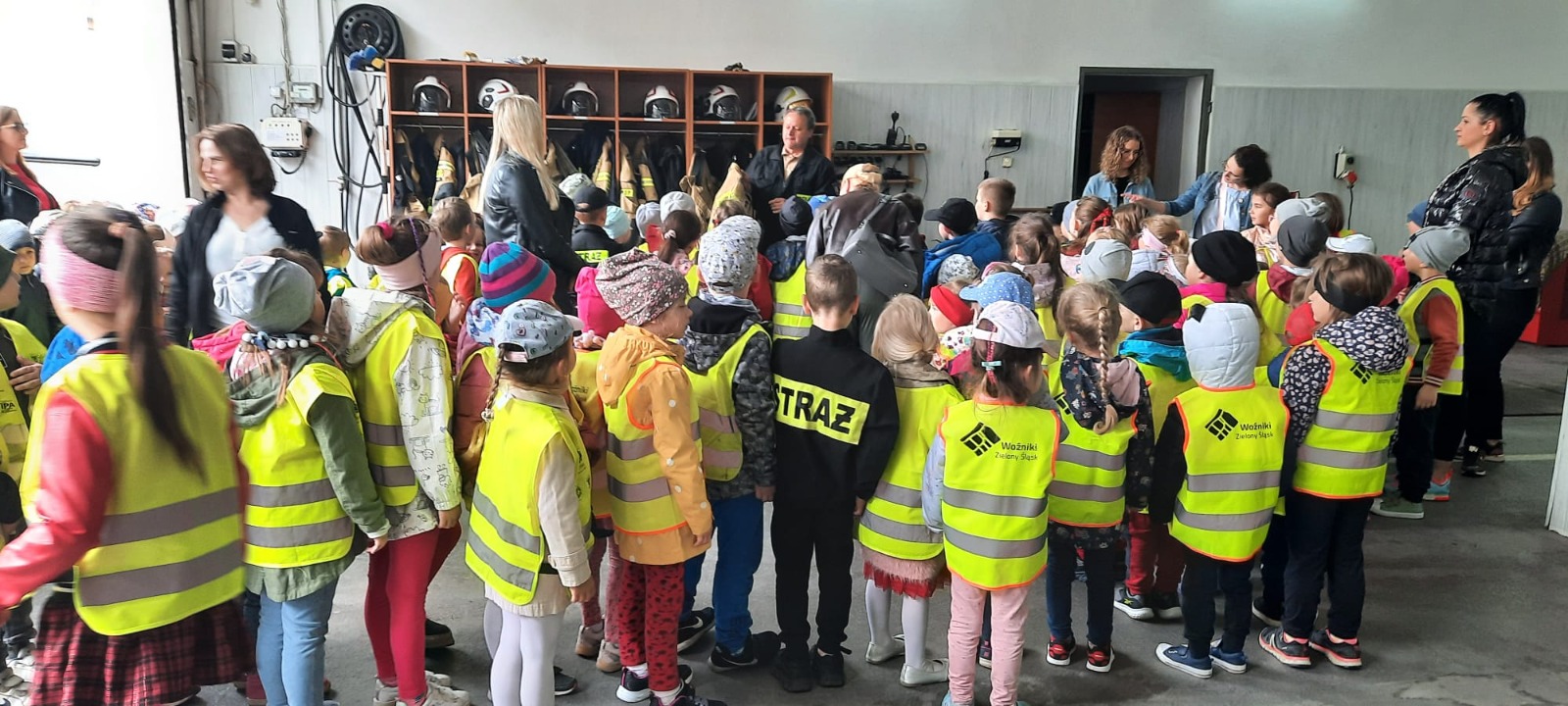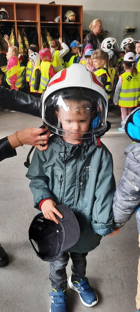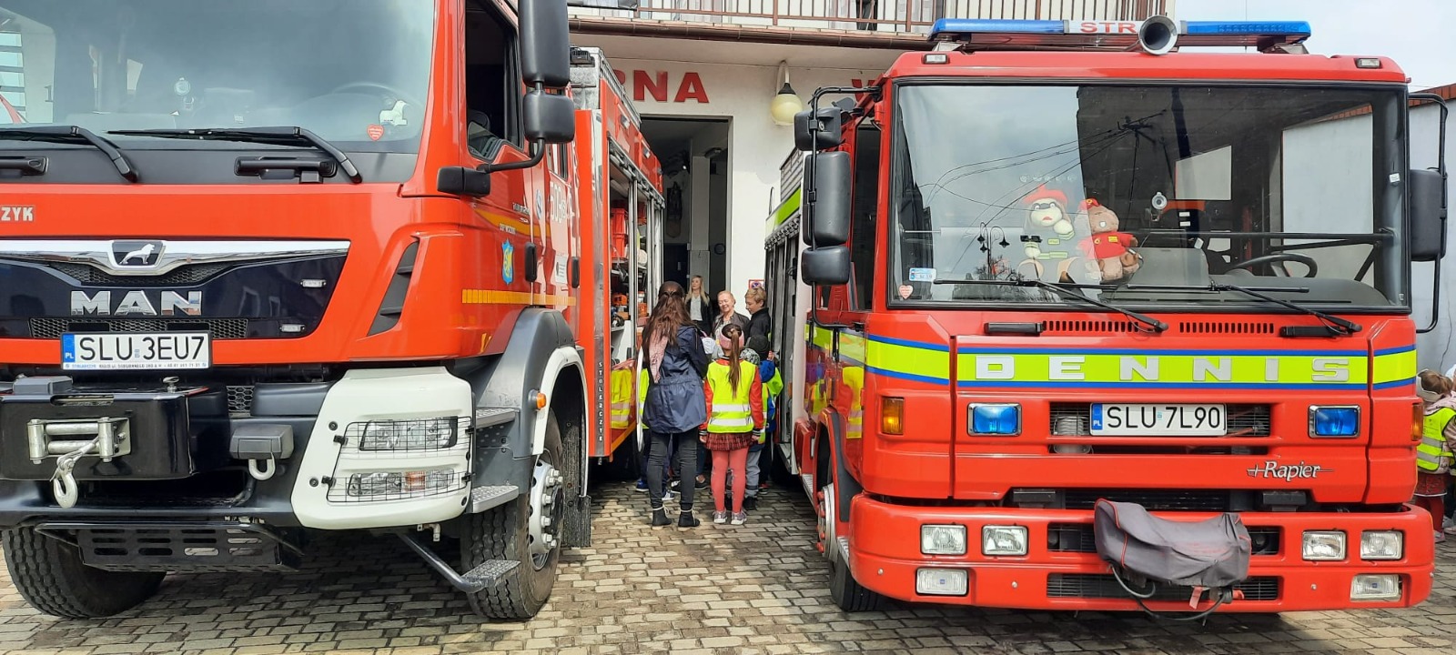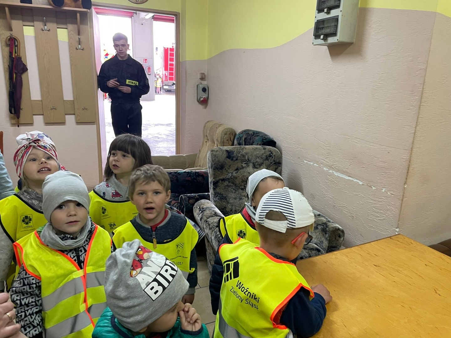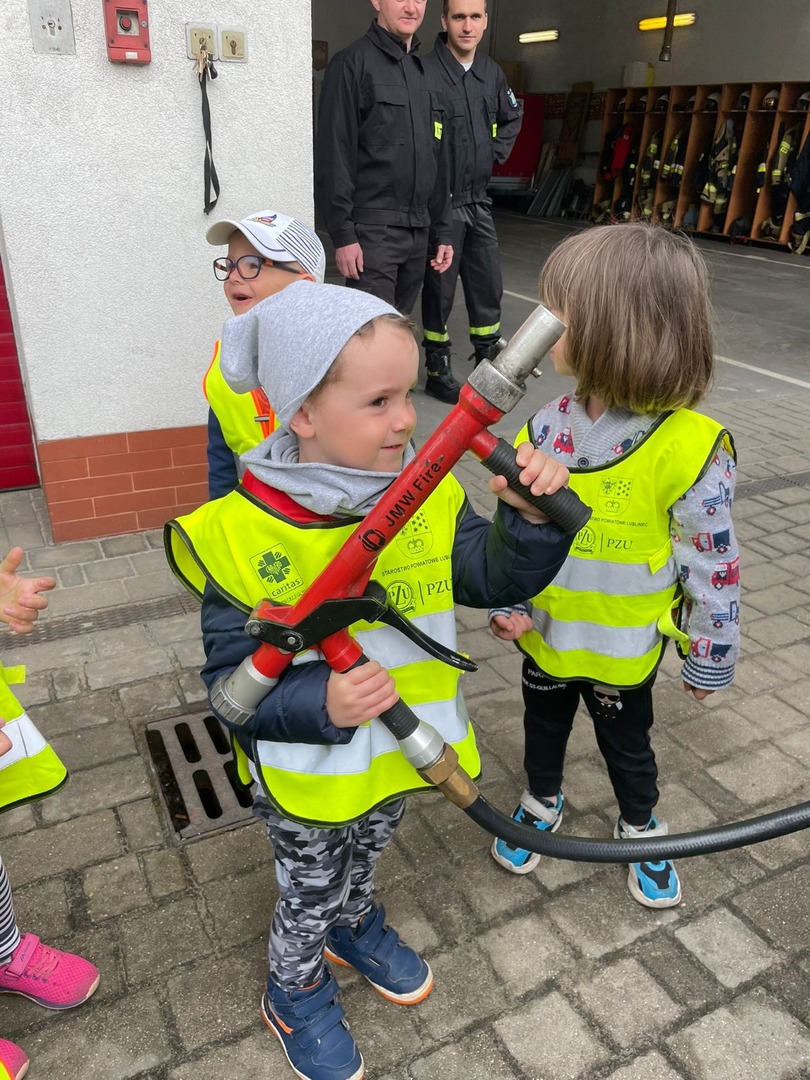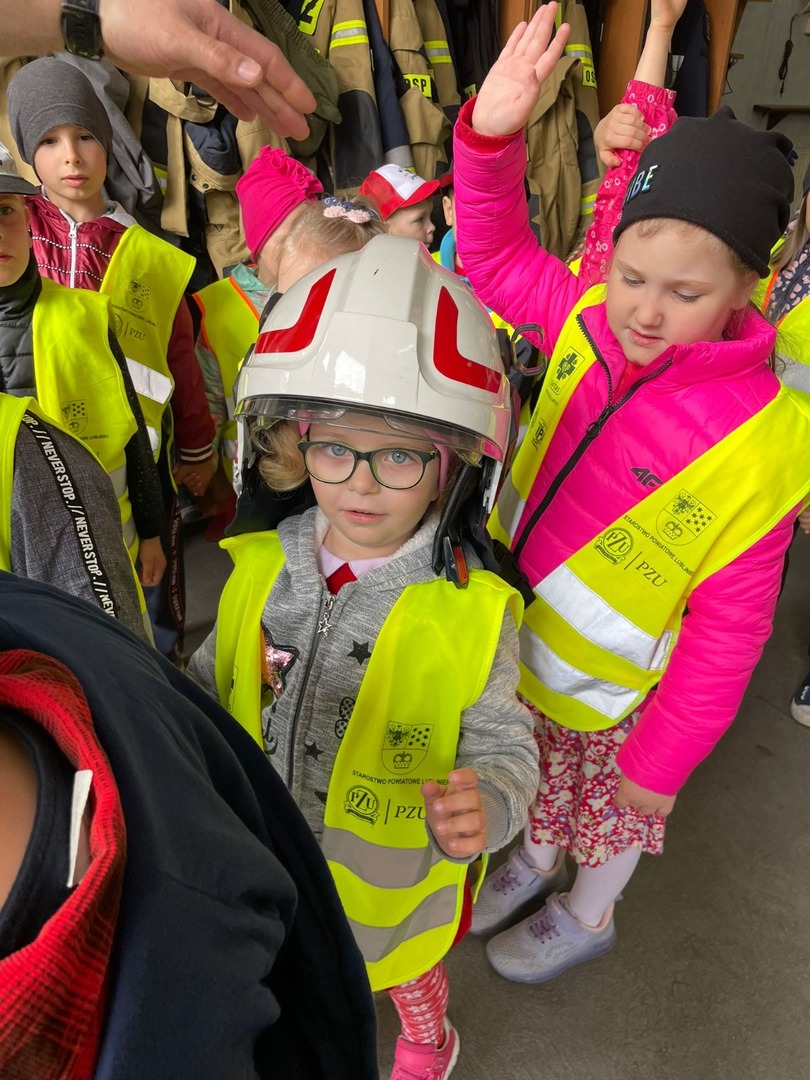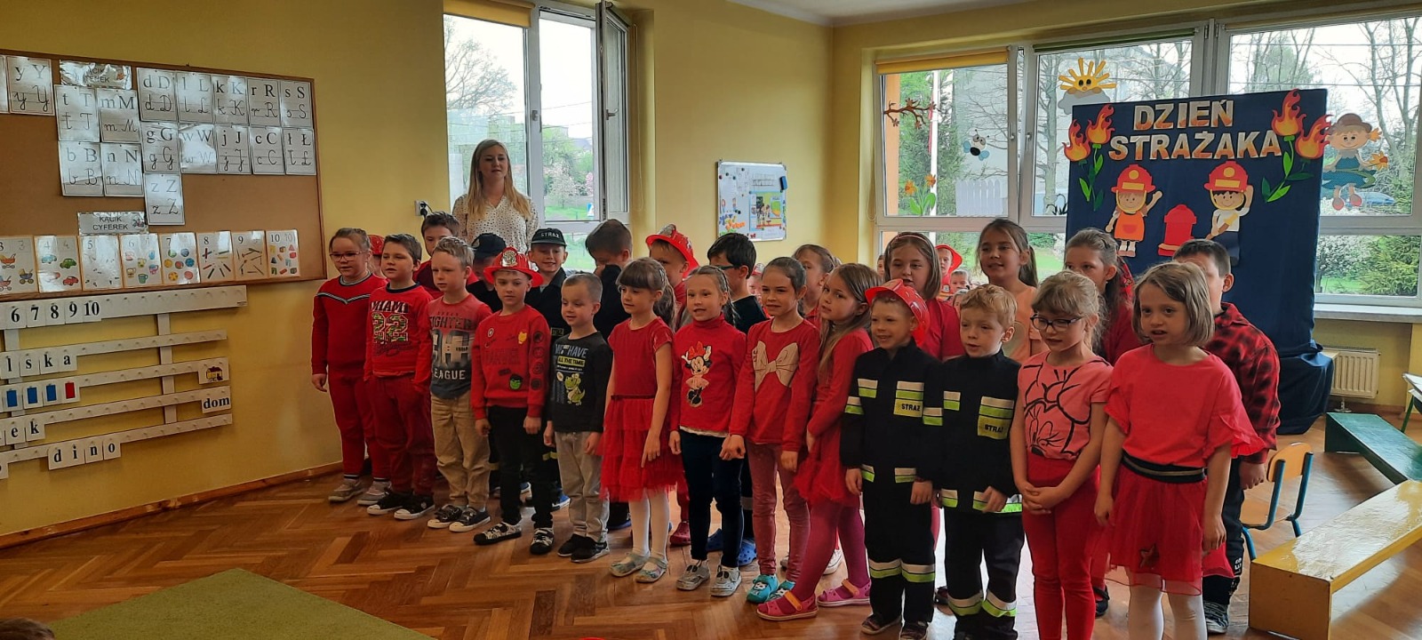 Dzisiejszy dzień był dla nas pełny wrażeń, wszystko za sprawą tego, że wybraliśmy się do jednostki OSP w Woźnikach, gdzie przywitał nas Prezes jednostki pan Krzysztof Nowacki, który oprowadził nas po jednostce opowiadając o pracy strażaka. Przedszkolaki z ogromnym zainteresowaniem słuchały opowieści o trudnej, odpowiedzialnej i niebezpiecznej pracy strażaka, jak i zadawały pytania. Utrwaliły znajomość numeru alarmowego - 112. Dużo radości sprawiło dzieciom przymierzanie hełmu i odzieży ochronnej używanej w akcjach ratowniczo-gaśniczych. Ponadto oglądały wozy strażackie, poznały wyposażenie i sprzęt, służący do udzielania pomocy nie tylko w przypadku pożarów, ale również wypadków drogowych i innych trudnych sytuacji wymagających interwencji strażaków. Następnie wróciliśmy do przedszkola, gdzie dzieci z grup IV i V zaprezentowały program artystyczny dla naszych gości.