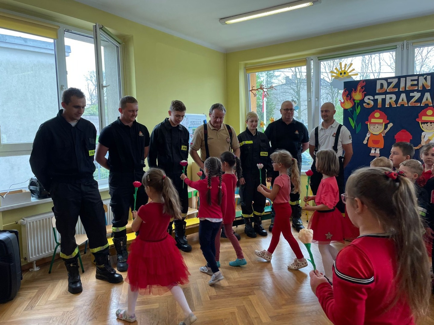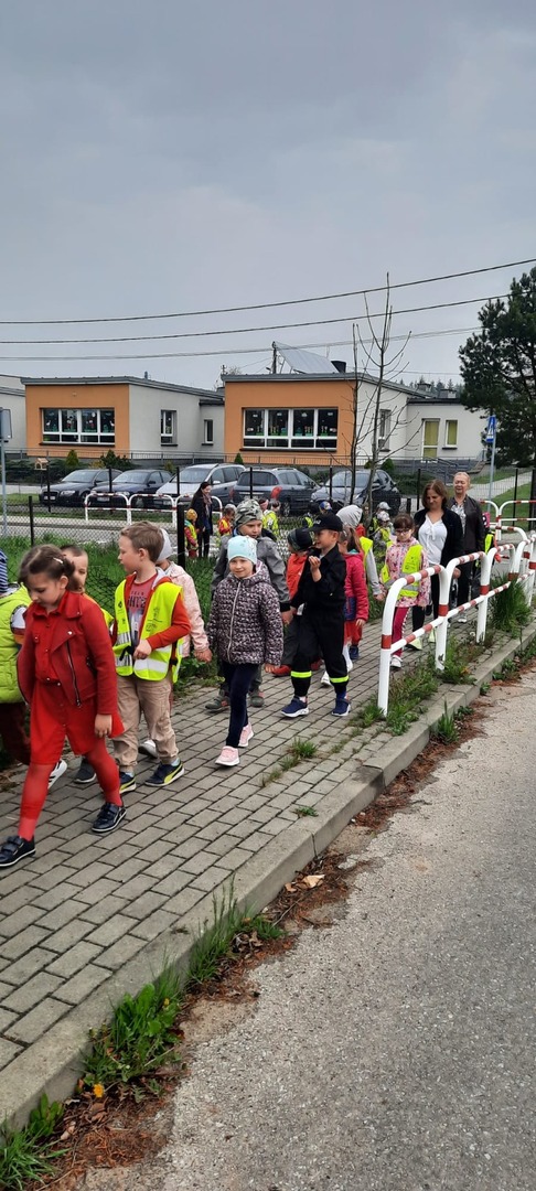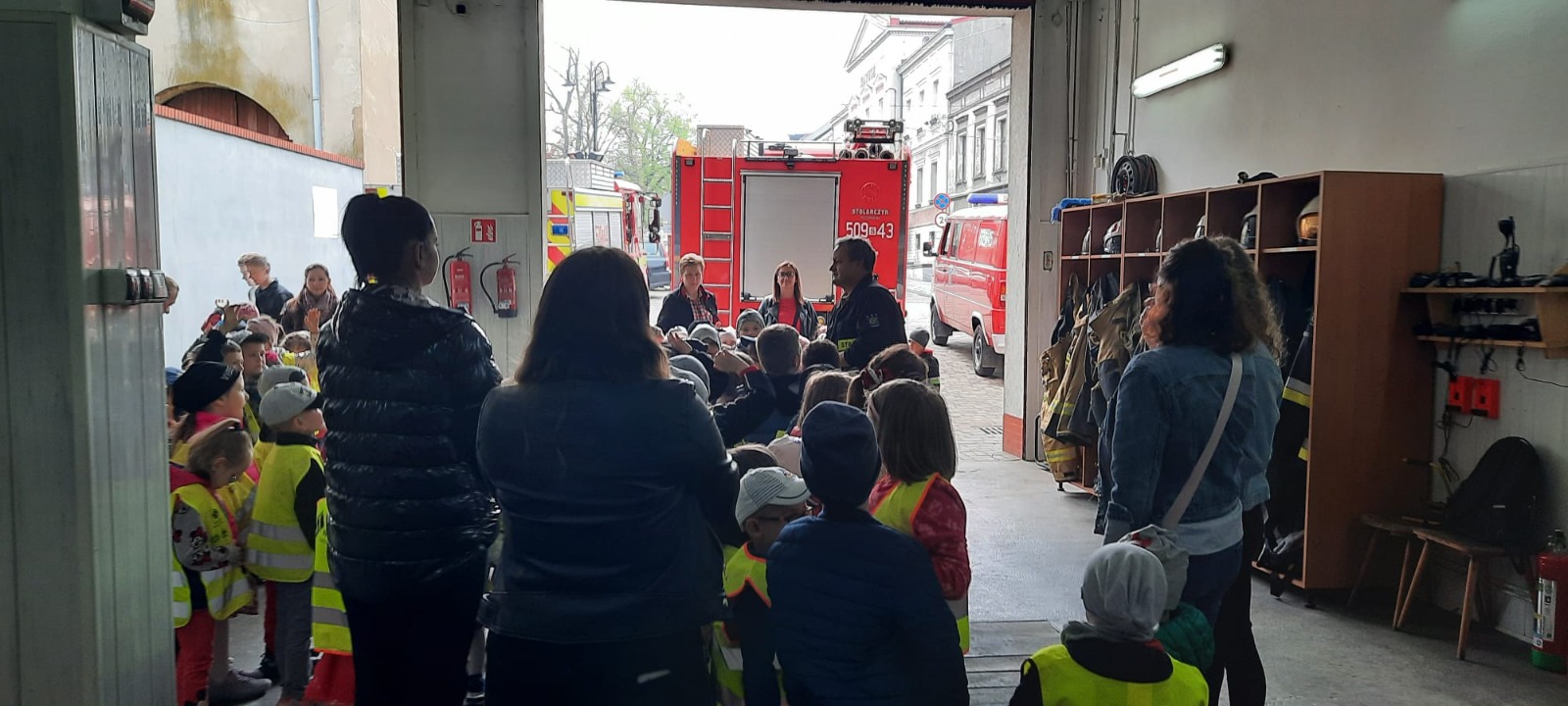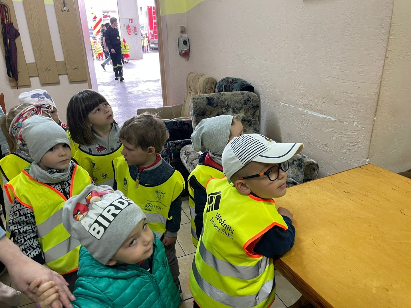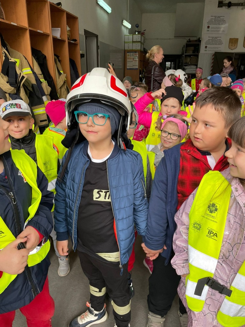 Dzisiejszy dzień był dla nas pełny wrażeń, wszystko za sprawą tego, że wybraliśmy się do jednostki OSP w Woźnikach, gdzie przywitał nas Prezes jednostki pan Krzysztof Nowacki, który oprowadził nas po jednostce opowiadając o pracy strażaka. Przedszkolaki z ogromnym zainteresowaniem słuchały opowieści o trudnej, odpowiedzialnej i niebezpiecznej pracy strażaka, jak i zadawały pytania. Utrwaliły znajomość numeru alarmowego - 112. Dużo radości sprawiło dzieciom przymierzanie hełmu i odzieży ochronnej używanej w akcjach ratowniczo-gaśniczych. Ponadto oglądały wozy strażackie, poznały wyposażenie i sprzęt, służący do udzielania pomocy nie tylko w przypadku pożarów, ale również wypadków drogowych i innych trudnych sytuacji wymagających interwencji strażaków. Następnie wróciliśmy do przedszkola, gdzie dzieci z grup IV i V zaprezentowały program artystyczny dla naszych gości.