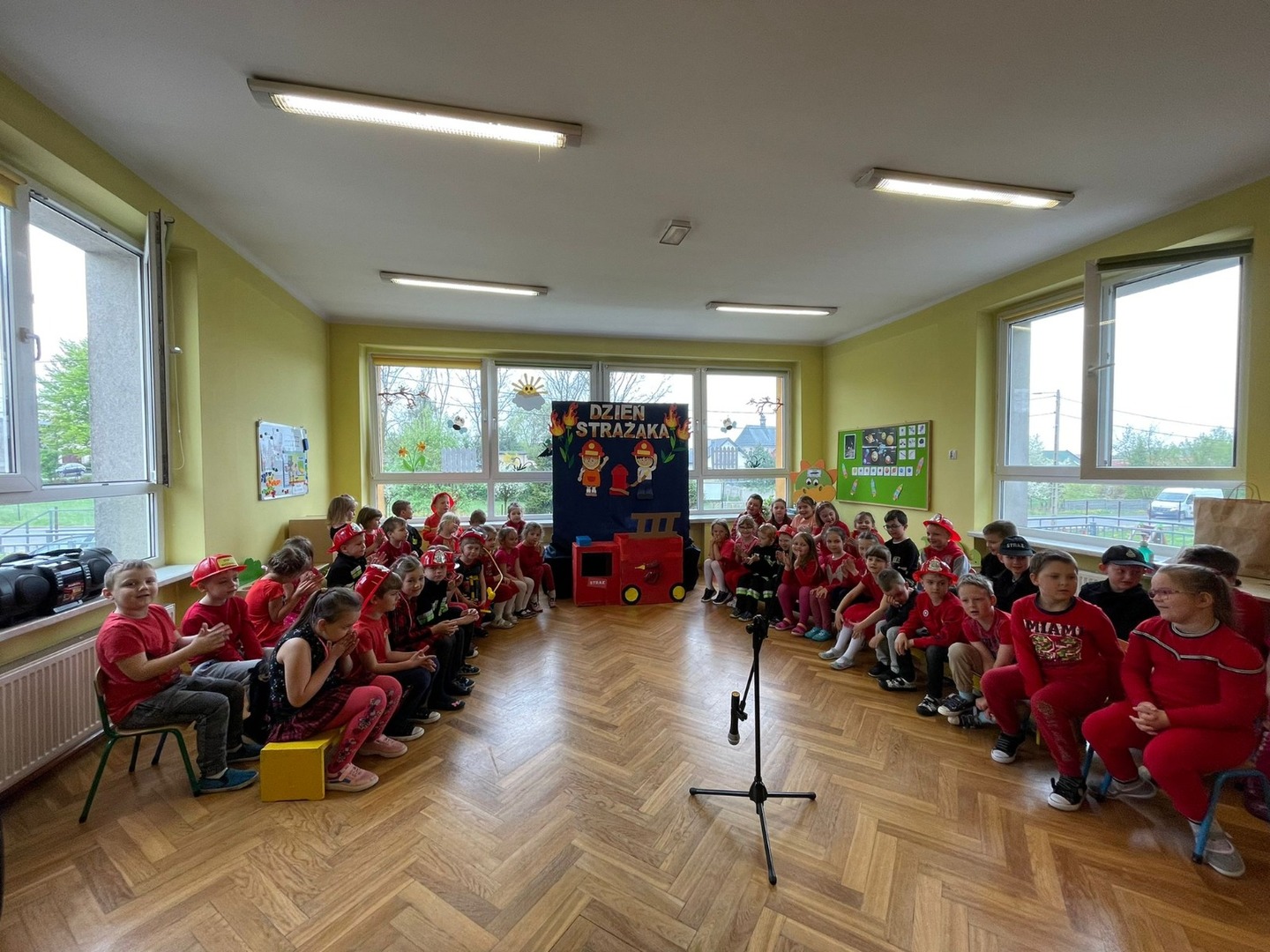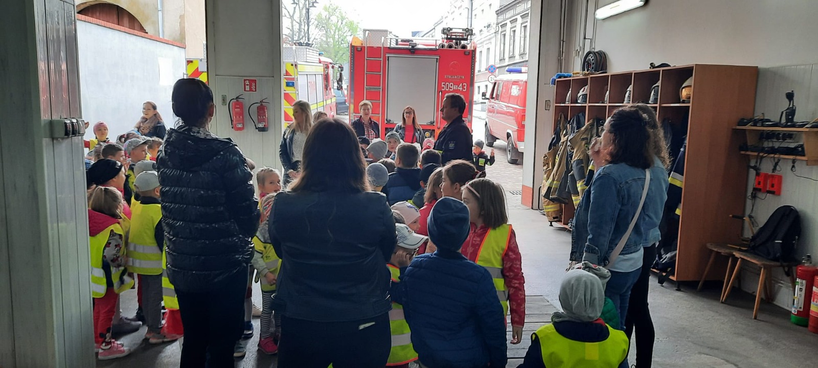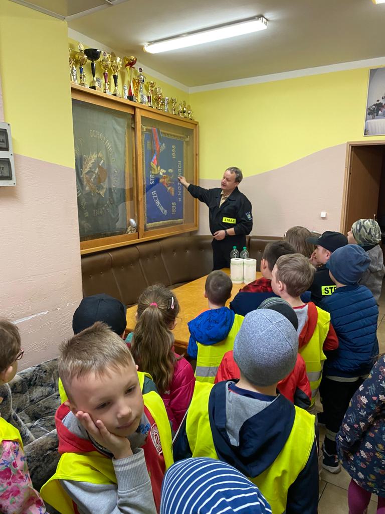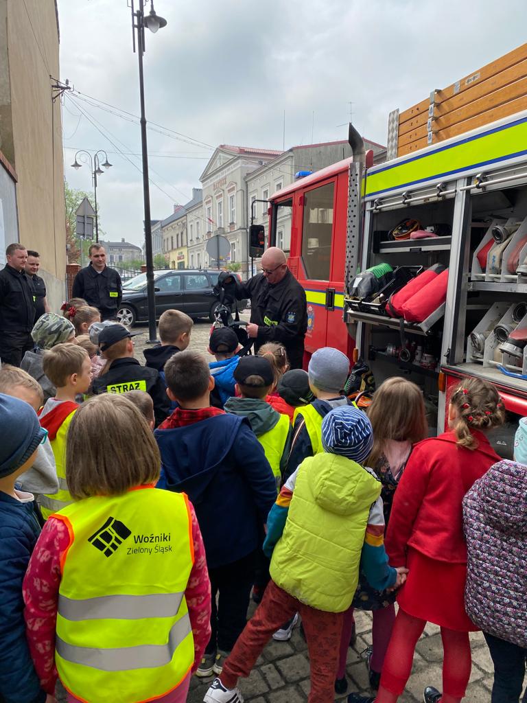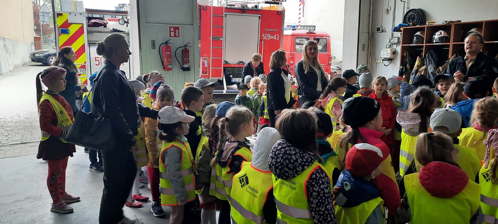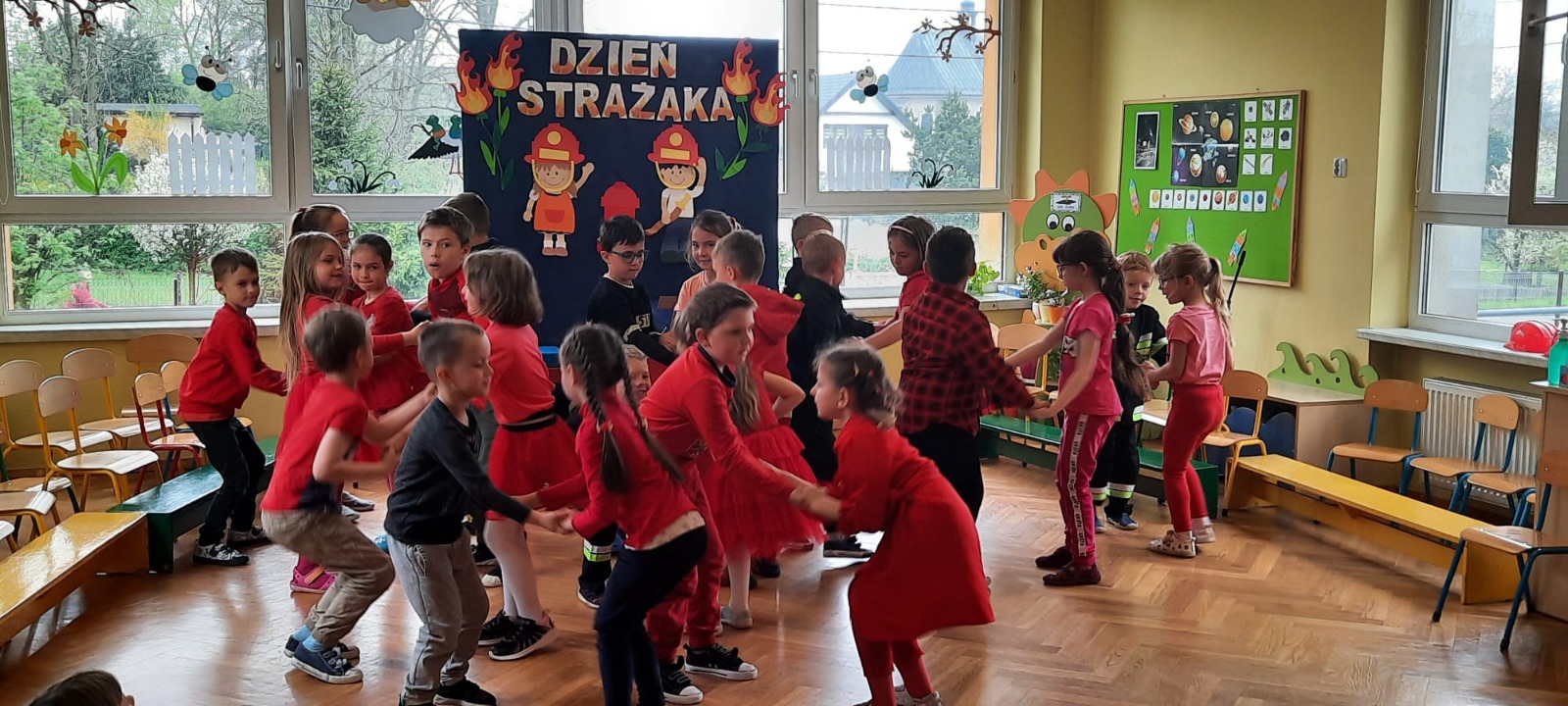 Dzisiejszy dzień był dla nas pełny wrażeń, wszystko za sprawą tego, że wybraliśmy się do jednostki OSP w Woźnikach, gdzie przywitał nas Prezes jednostki pan Krzysztof Nowacki, który oprowadził nas po jednostce opowiadając o pracy strażaka. Przedszkolaki z ogromnym zainteresowaniem słuchały opowieści o trudnej, odpowiedzialnej i niebezpiecznej pracy strażaka, jak i zadawały pytania. Utrwaliły znajomość numeru alarmowego - 112. Dużo radości sprawiło dzieciom przymierzanie hełmu i odzieży ochronnej używanej w akcjach ratowniczo-gaśniczych. Ponadto oglądały wozy strażackie, poznały wyposażenie i sprzęt, służący do udzielania pomocy nie tylko w przypadku pożarów, ale również wypadków drogowych i innych trudnych sytuacji wymagających interwencji strażaków. Następnie wróciliśmy do przedszkola, gdzie dzieci z grup IV i V zaprezentowały program artystyczny dla naszych gości.