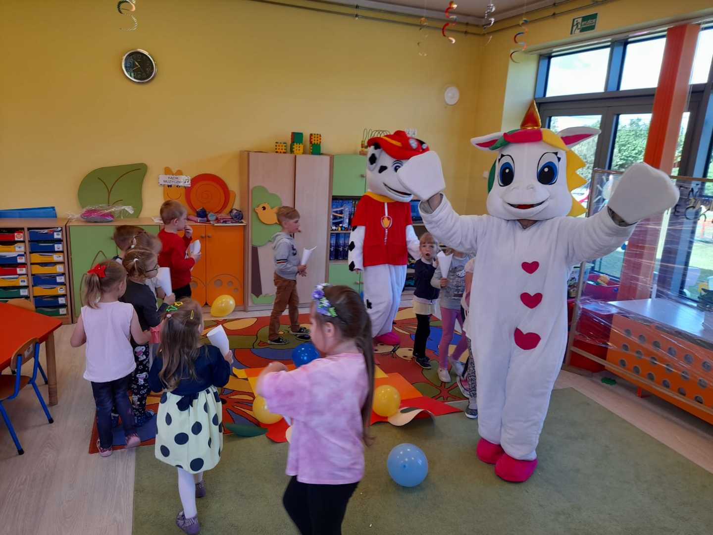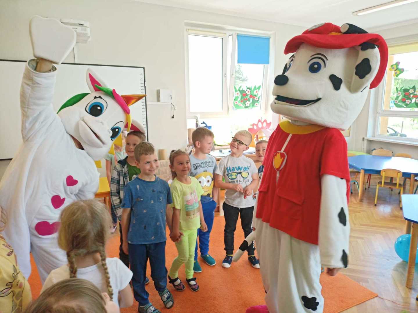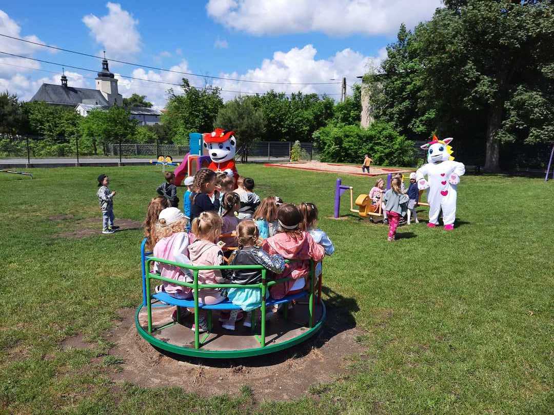 To oczywiście nie były jedyne atrakcje tego dnia. Po wspólnej zabawie dzieci odwiedziły bajkowe postacie z którymi oprócz wspólnej zabawy mogły skosztować popcornu, lodów. Towarzyszące w tym dniu okrzyki radości na pewno świadczyły o dobrej zabawie.