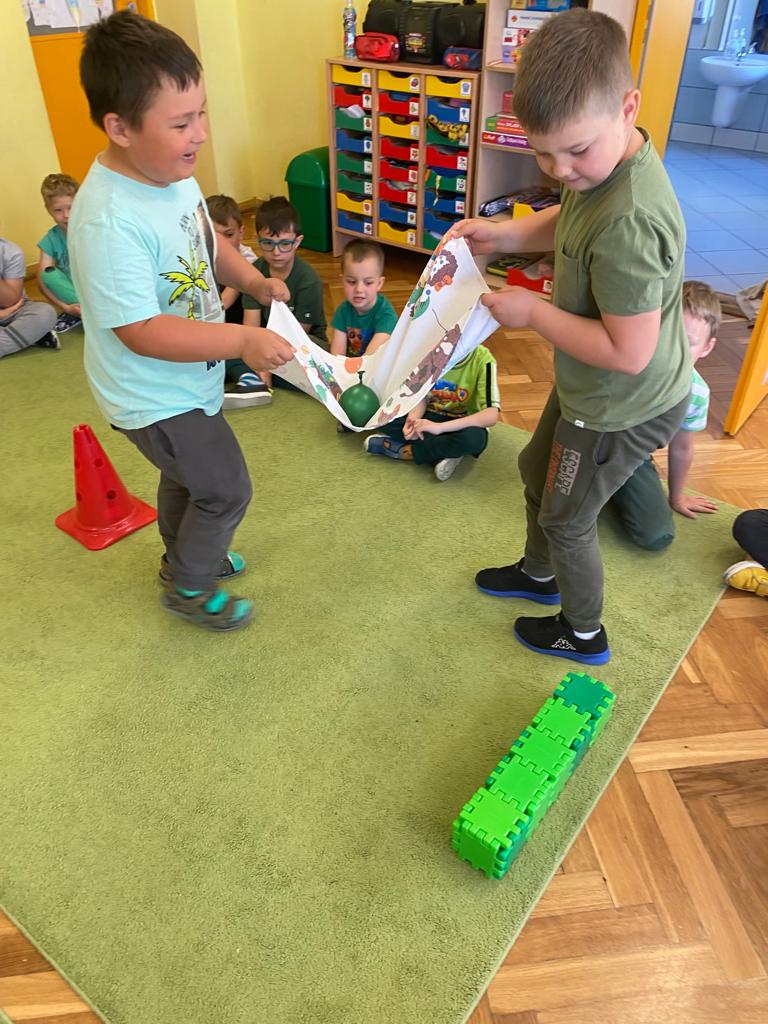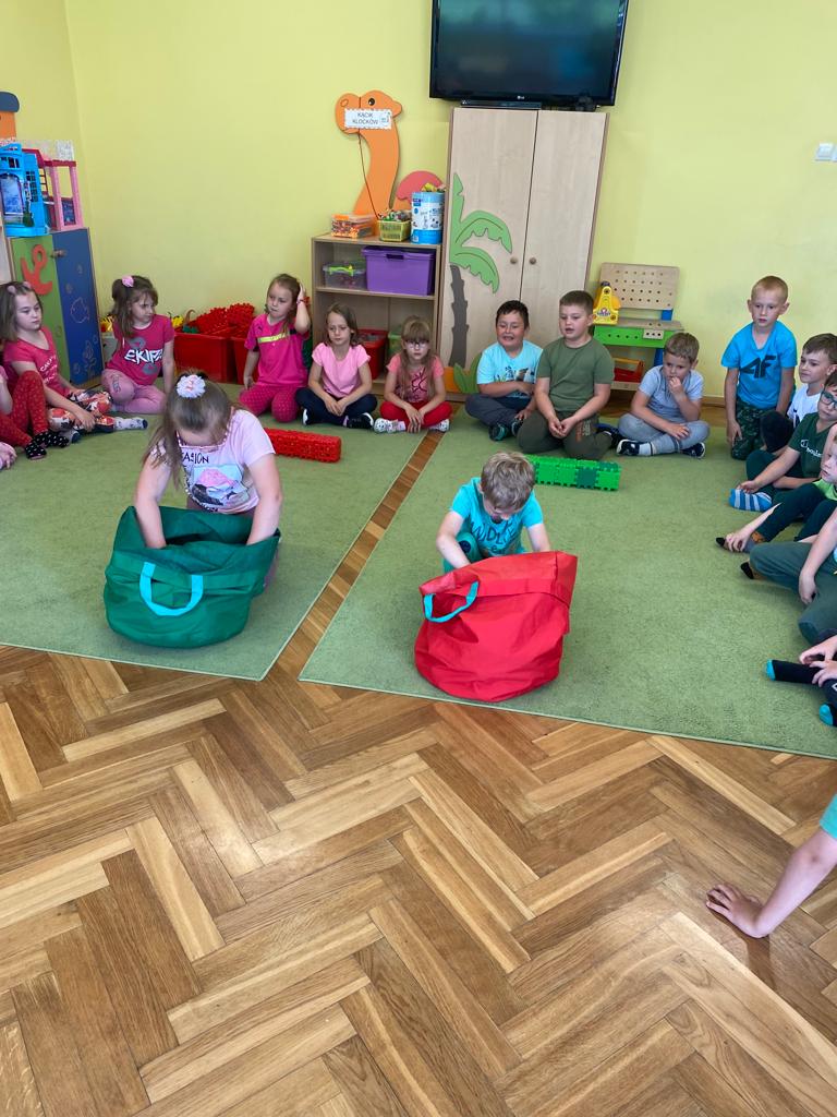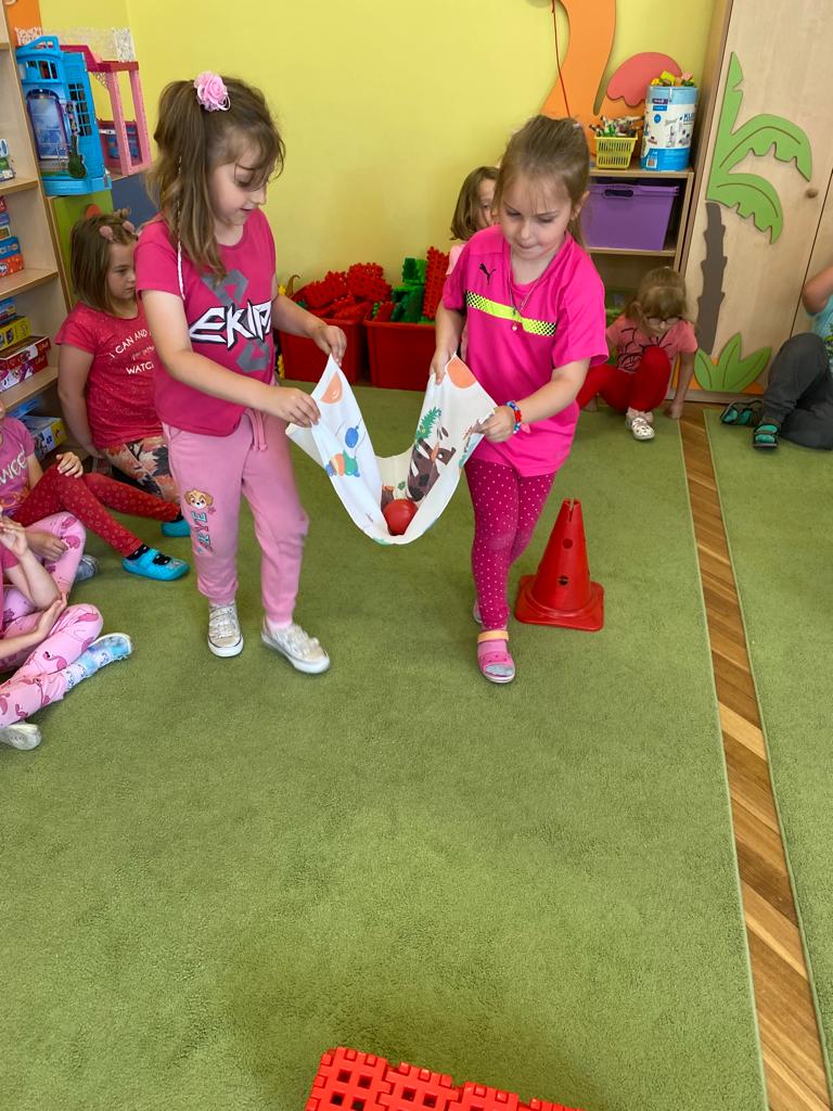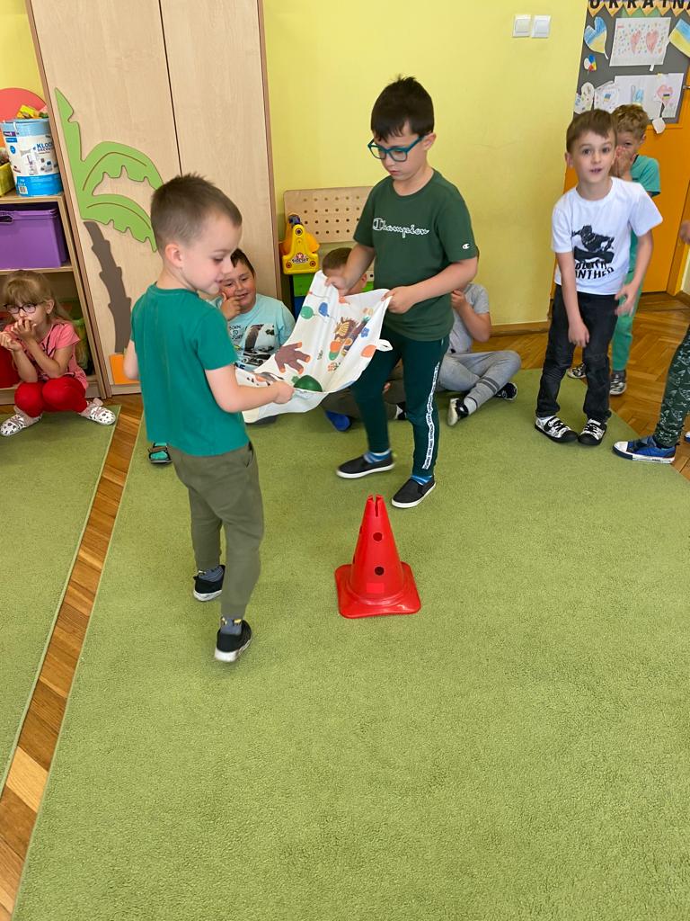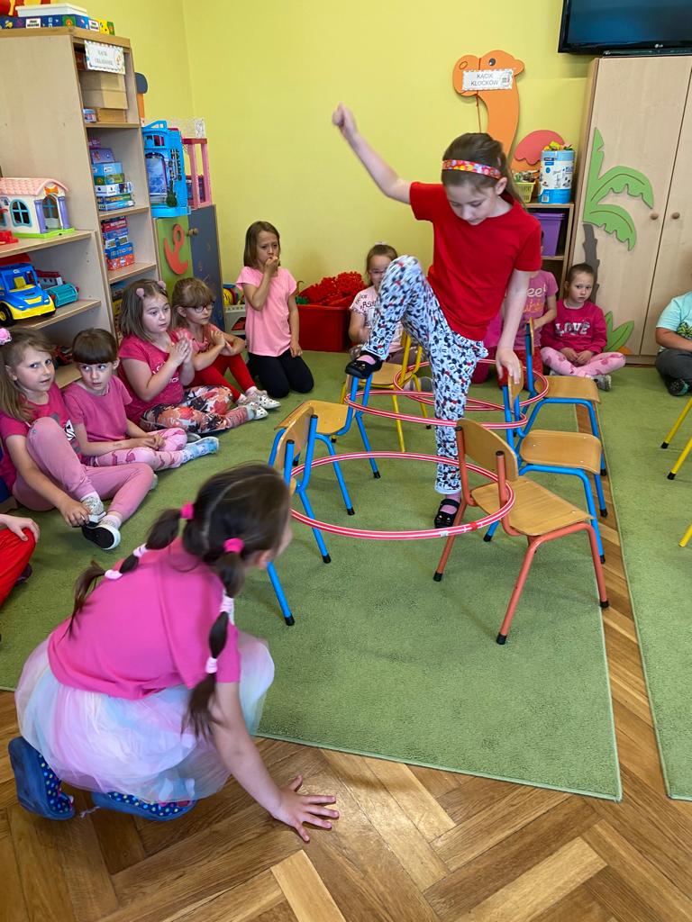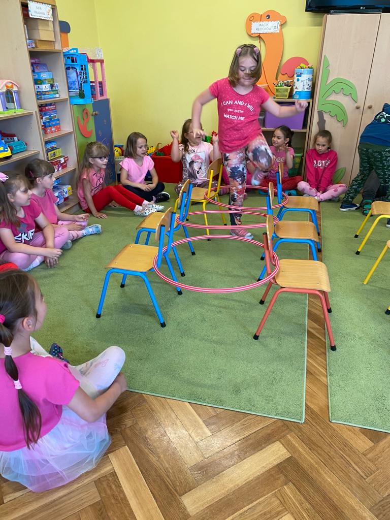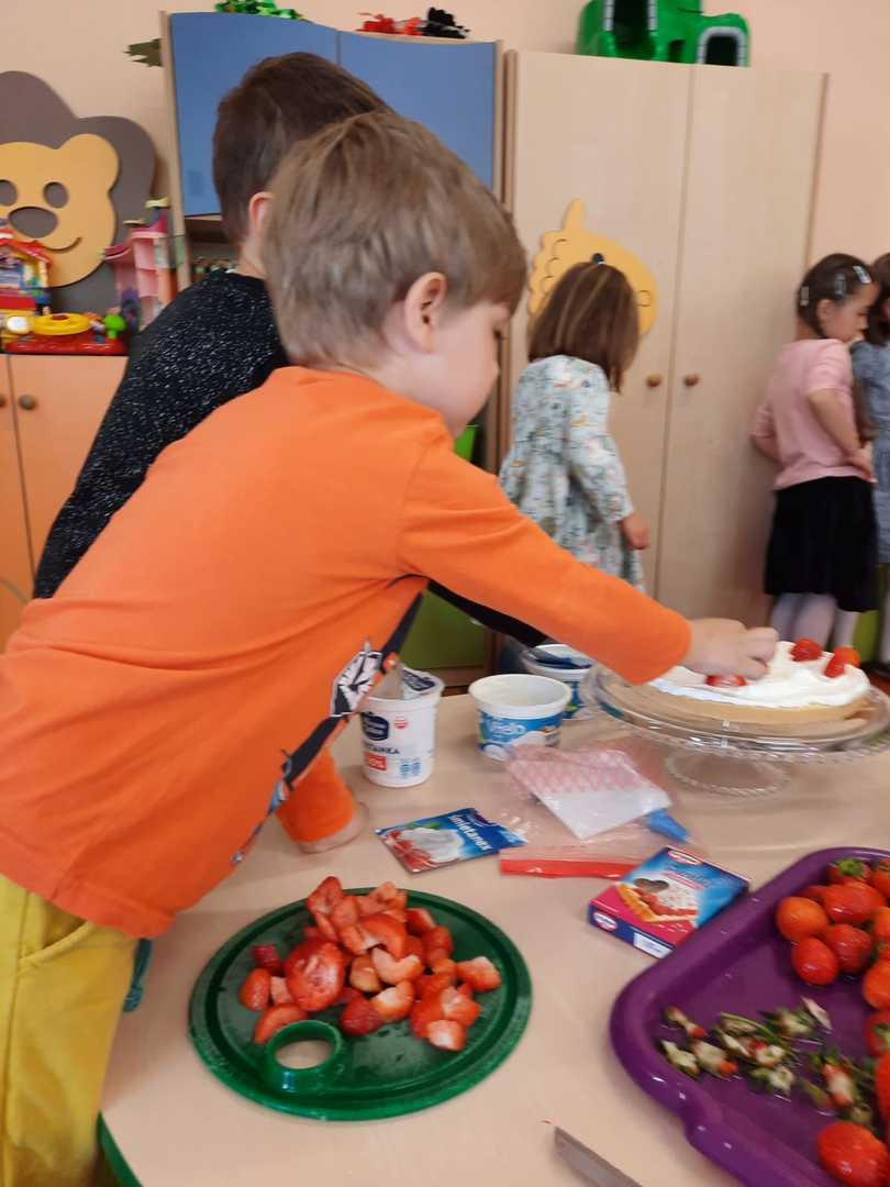 W każdej grupie w czasie zabawy towarzyszyło hasło przewodnie. „Jeżyki” bawiąc się w piratów poszukiwali skarbów. „Niedźwiadki” wyruszyły do krainy marzeń a „Wiewiórki” zamieniły się w cukierników. „Zajączki” wzięły udział w Olimpiadzie sportowej a „Liski” bawiły się wyśmienicie jako mali kucharze.