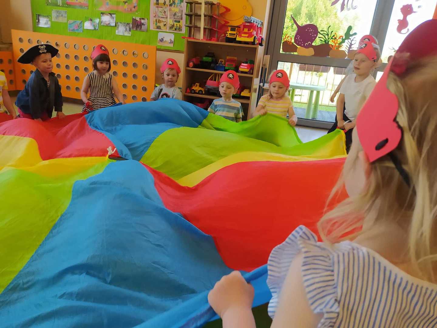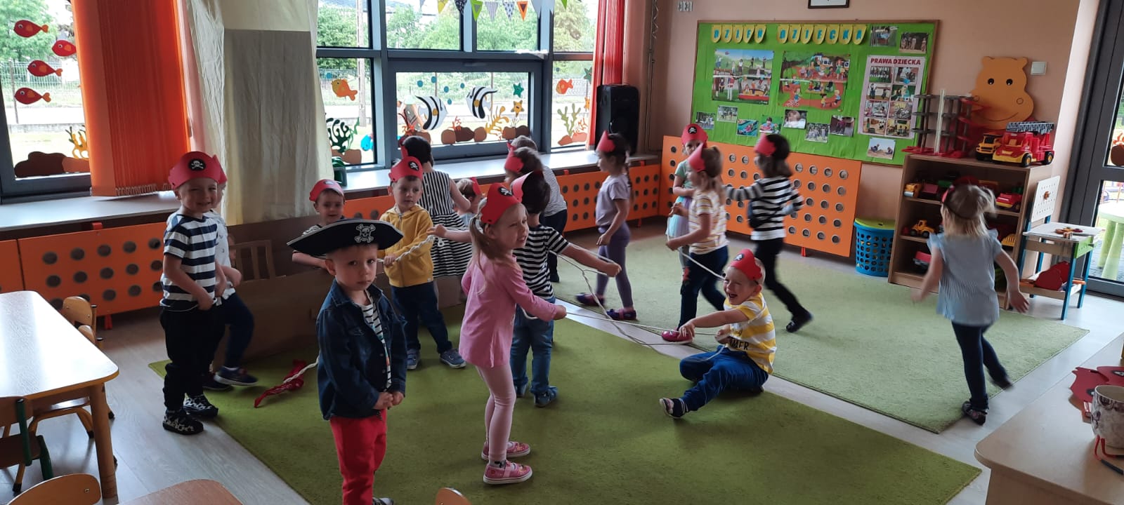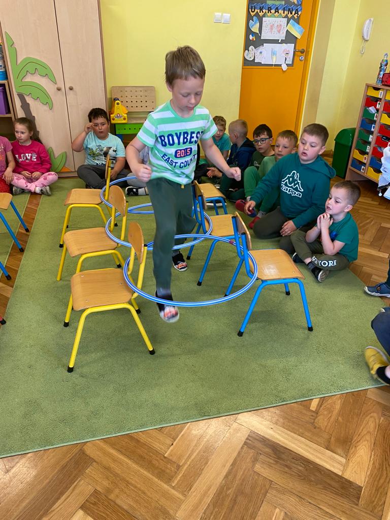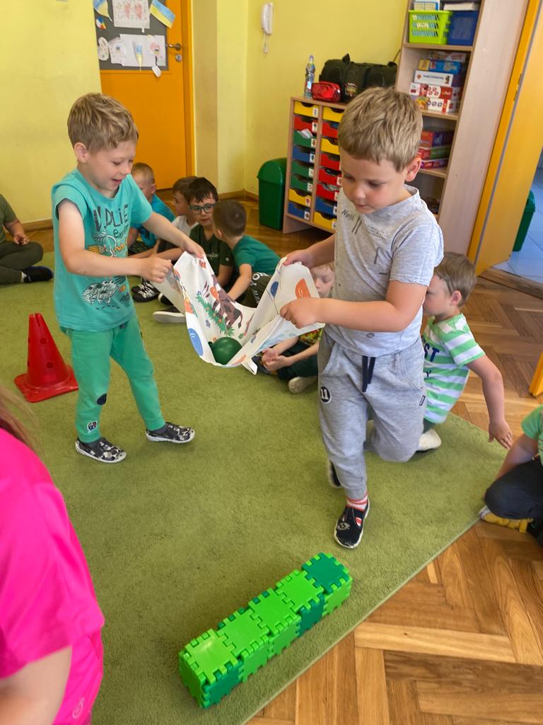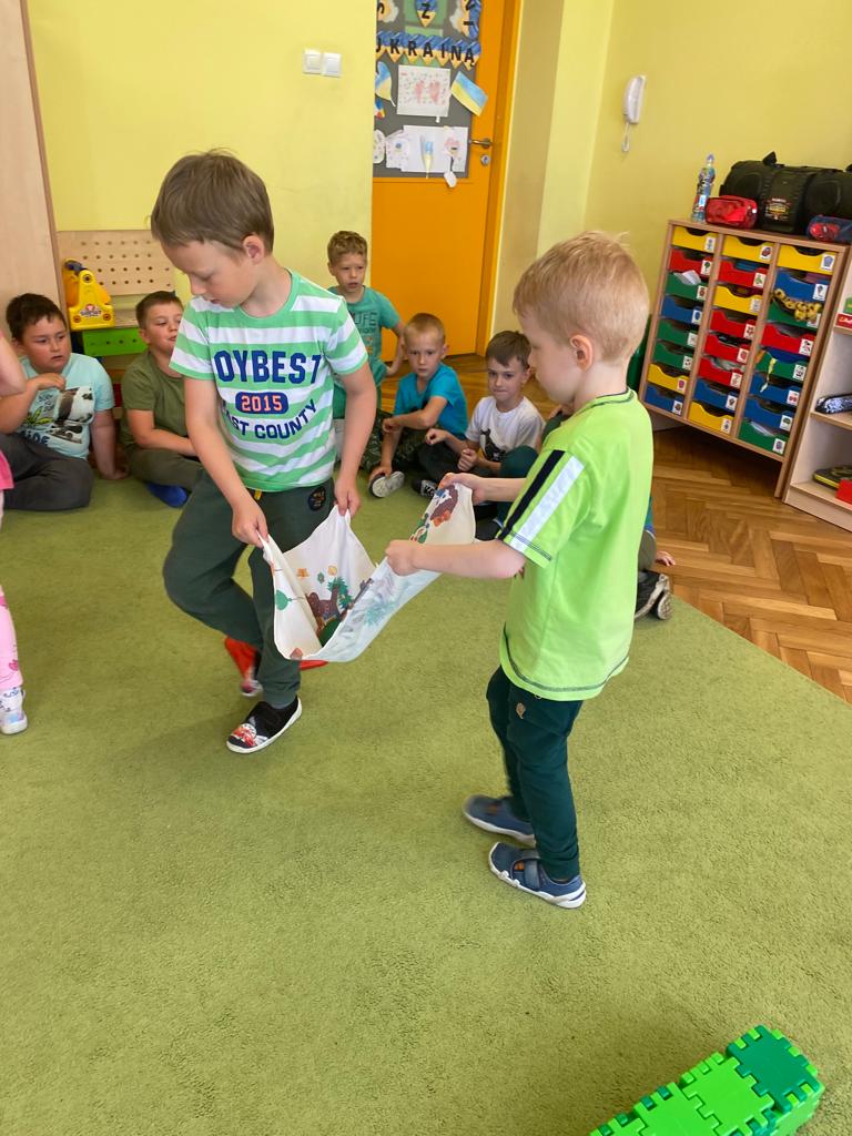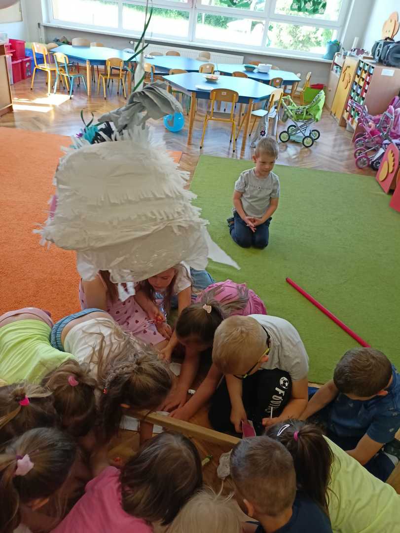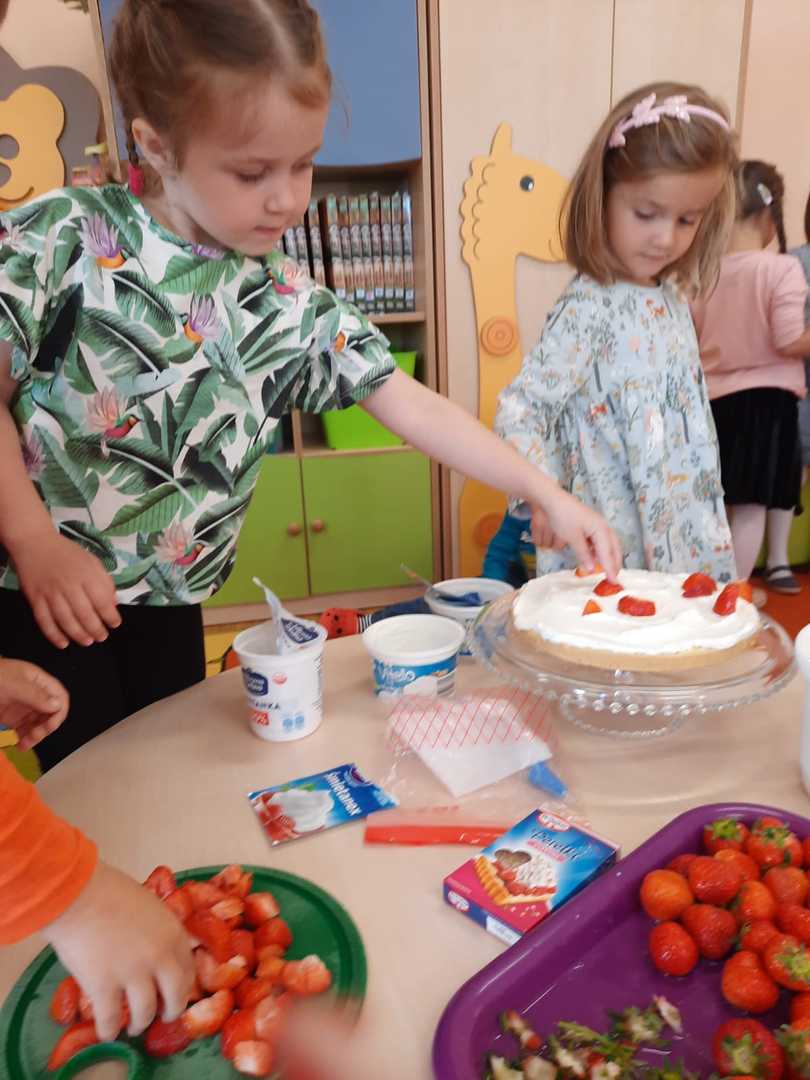 W każdej grupie w czasie zabawy towarzyszyło hasło przewodnie. „Jeżyki” bawiąc się w piratów poszukiwali skarbów. „Niedźwiadki” wyruszyły do krainy marzeń a „Wiewiórki” zamieniły się w cukierników. „Zajączki” wzięły udział w Olimpiadzie sportowej a „Liski” bawiły się wyśmienicie jako mali kucharze.