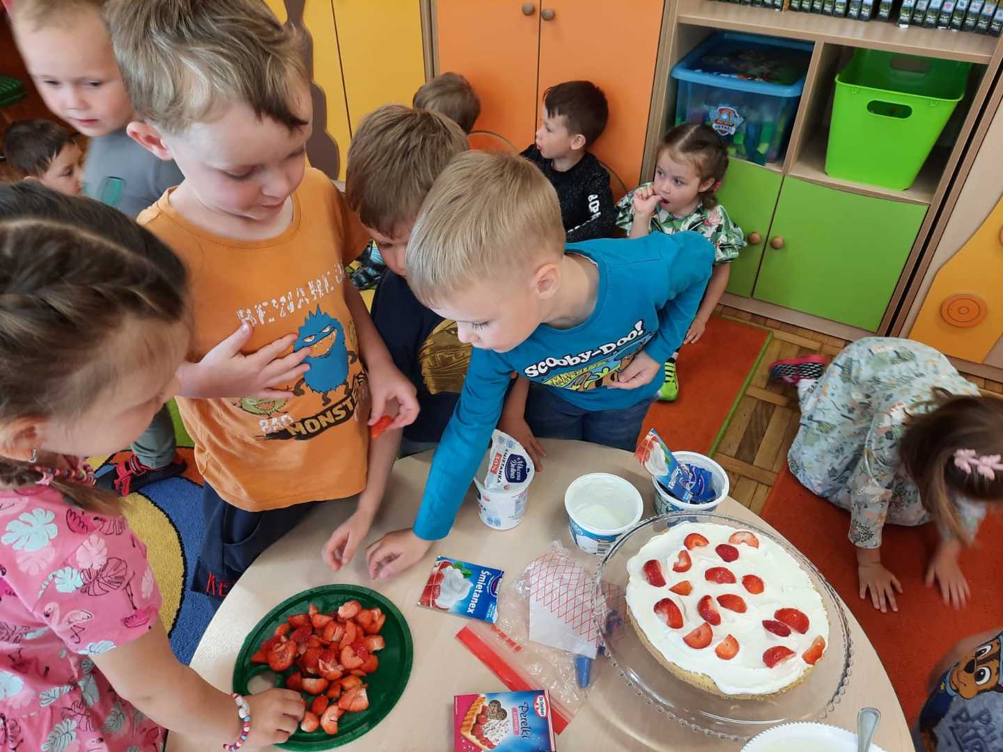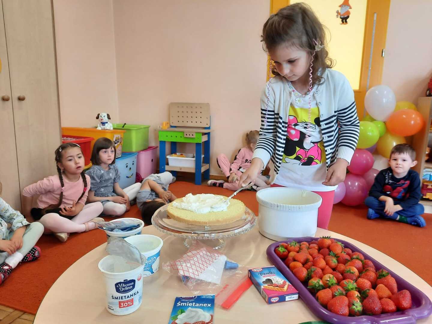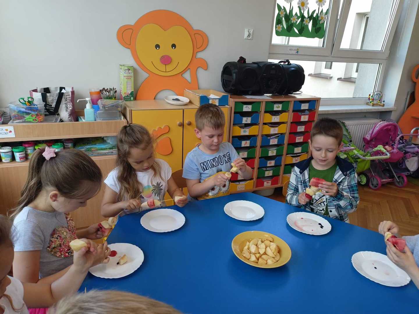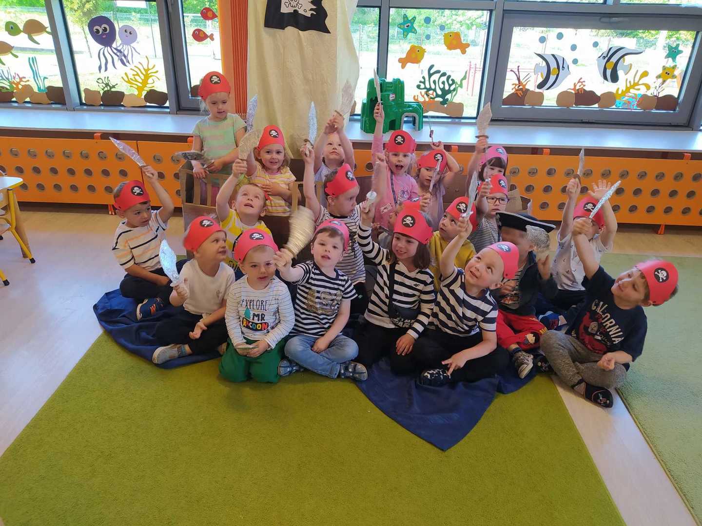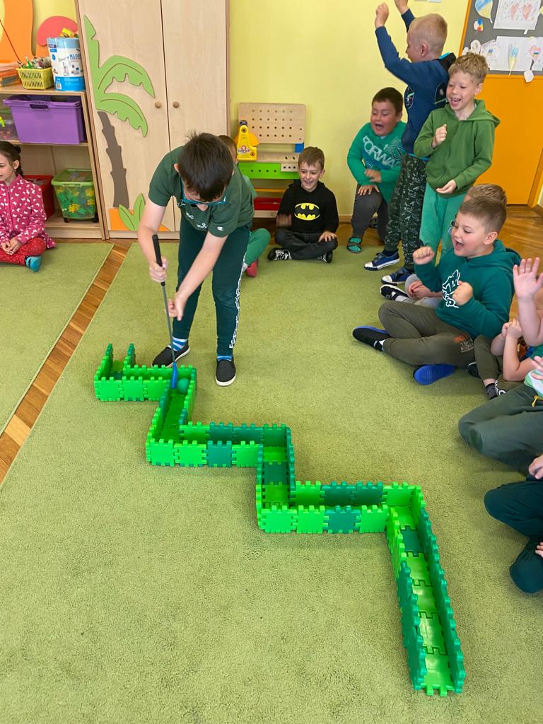 W każdej grupie w czasie zabawy towarzyszyło hasło przewodnie. „Jeżyki” bawiąc się w piratów poszukiwali skarbów. „Niedźwiadki” wyruszyły do krainy marzeń a „Wiewiórki” zamieniły się w cukierników. „Zajączki” wzięły udział w Olimpiadzie sportowej a „Liski” bawiły się wyśmienicie jako mali kucharze.