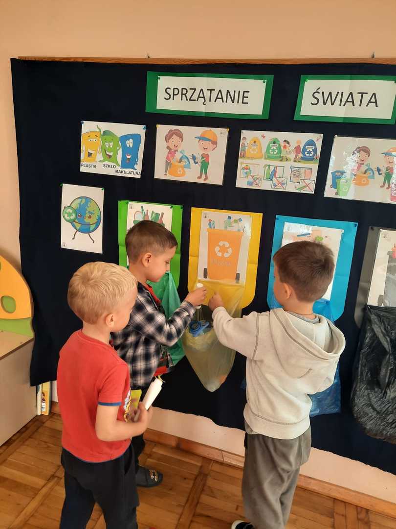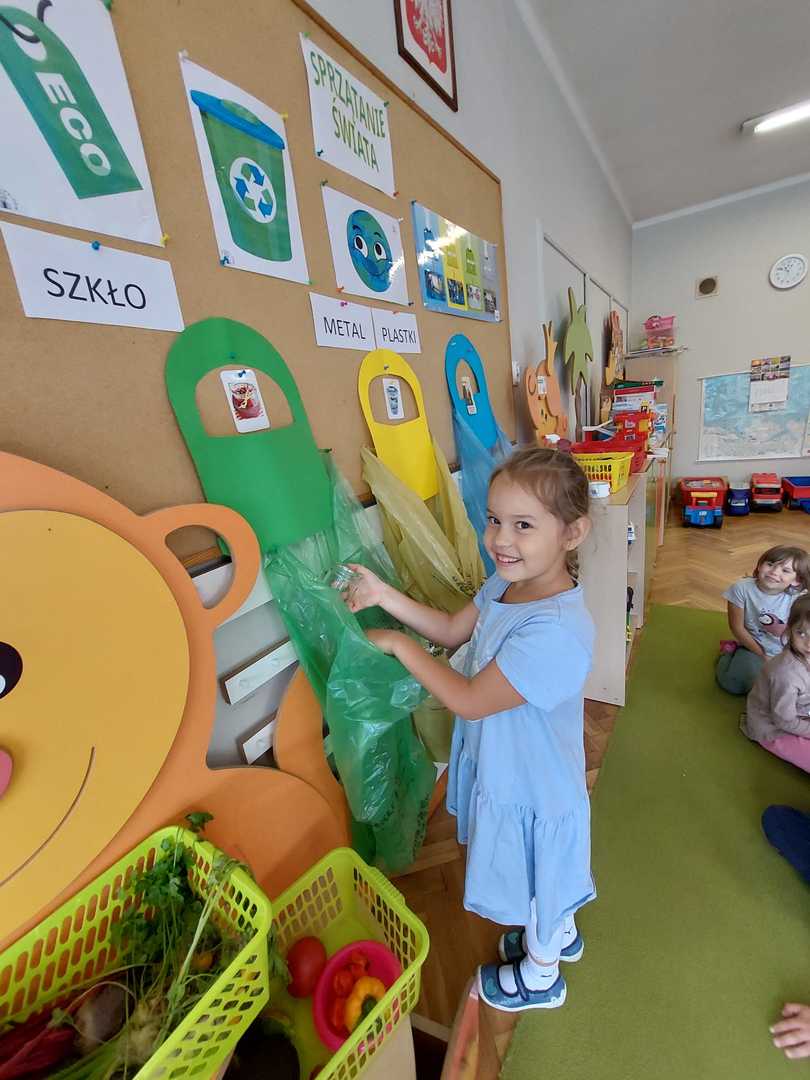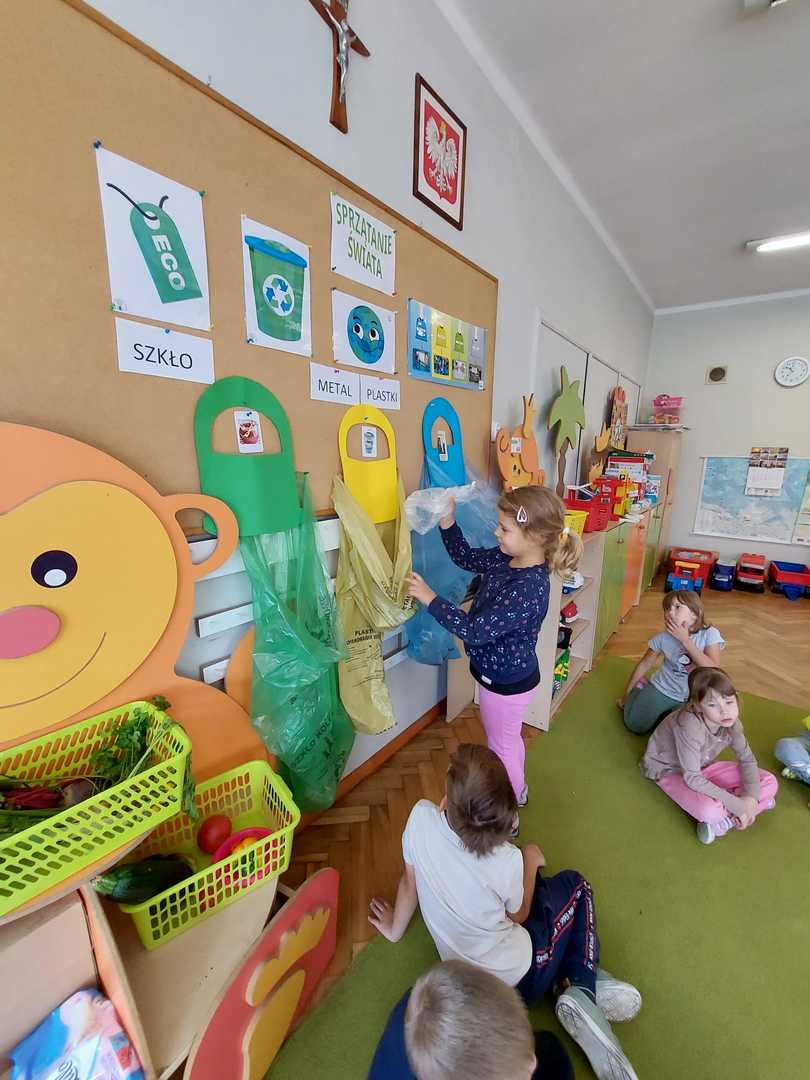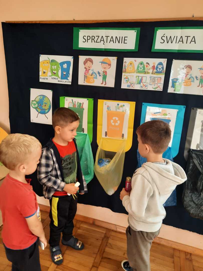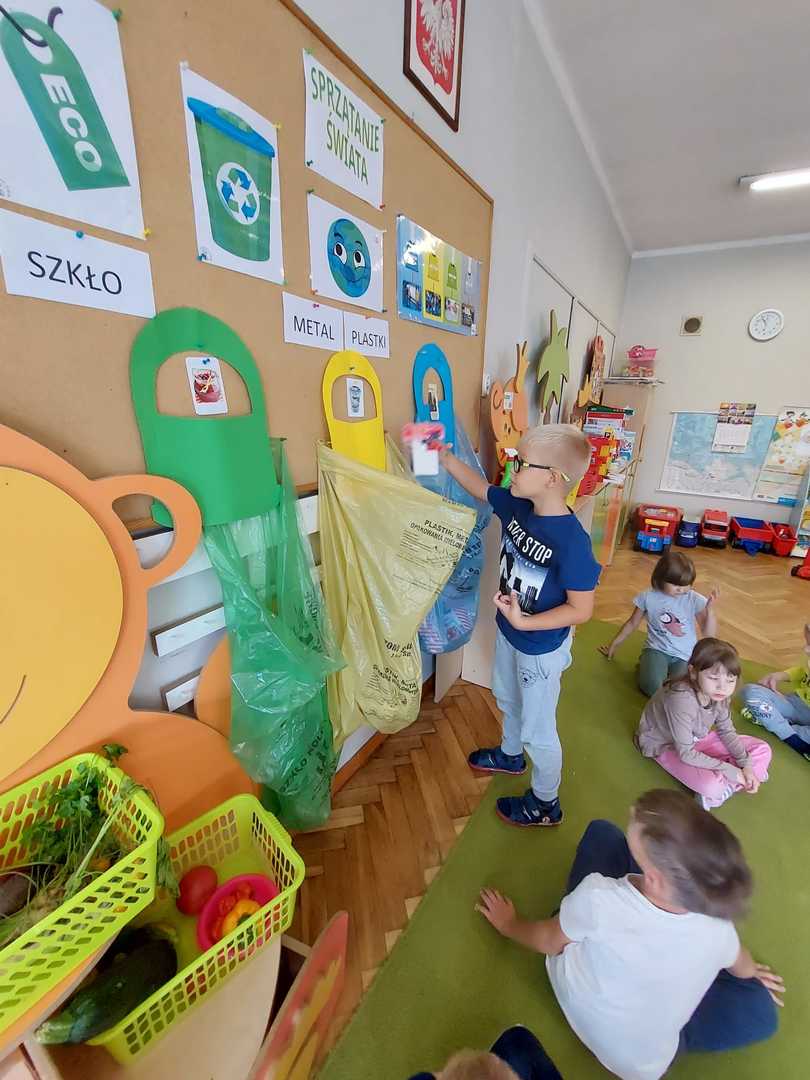 Po raz kolejny dzieci z naszego przedszkola wzięły udział w ogólnoświatowej akcji - Sprzątanie świata, który co roku przypada od 16 - 18 września. W tym roku akcji towarzyszyło hasło "Wszystkie śmieci są nasze ". Zgodnie z nim dzieci z wszystkich grup podjęły się wyzwania ale najpierw dowiedziały się jak należy segregować śmieci a następnie wyruszyły wraz z wychowawczyniami pozbierać je w okolicy naszego przedszkola. Bo każdy przedszkolak mały czy duży wie, że aby Ziemi było lżej - segregować śmieci chciej...