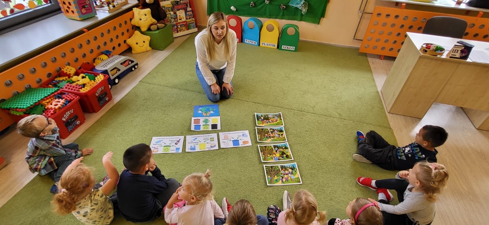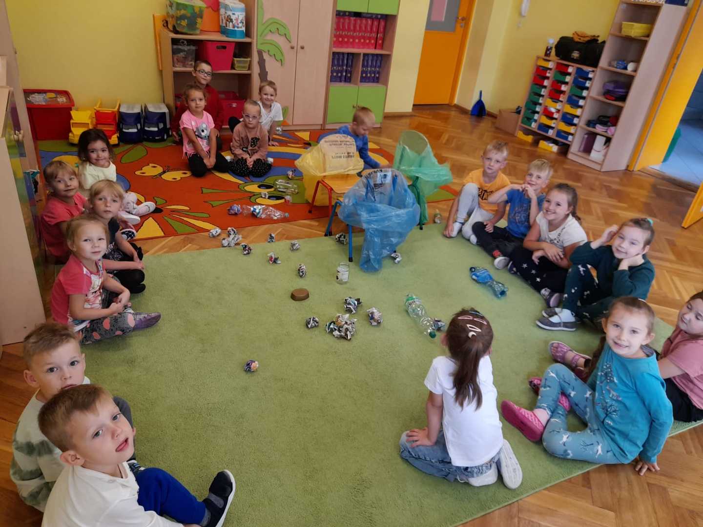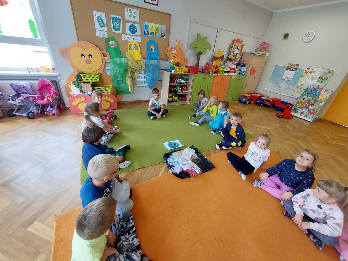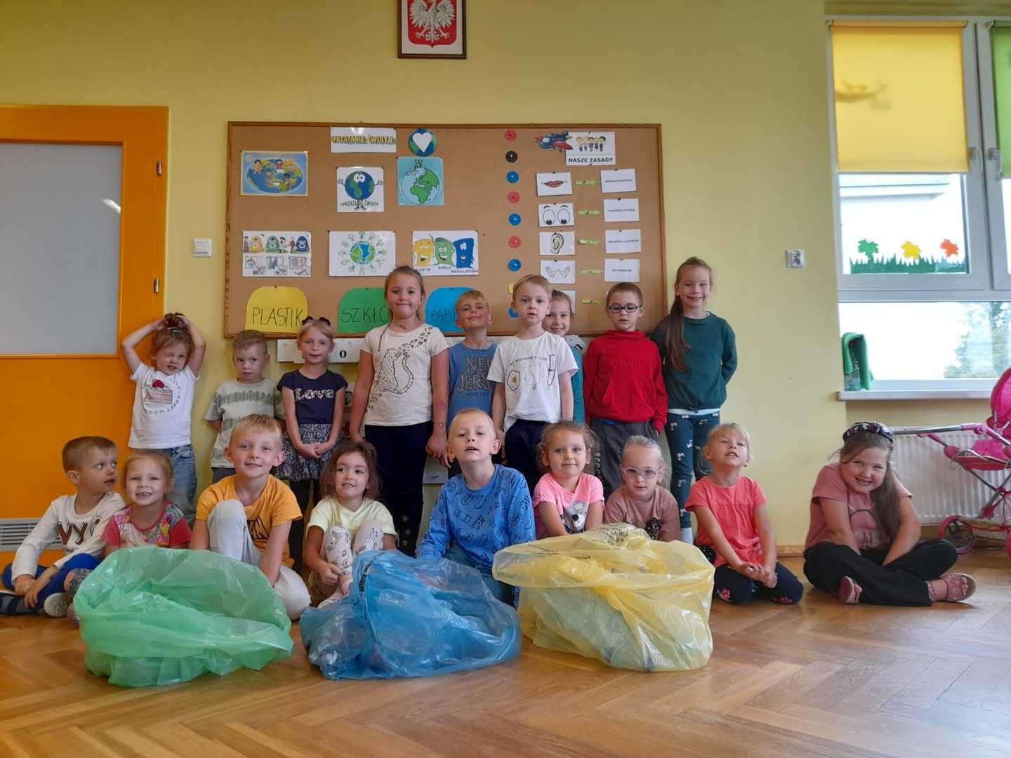 Po raz kolejny dzieci z naszego przedszkola wzięły udział w ogólnoświatowej akcji - Sprzątanie świata, który co roku przypada od 16 - 18 września. W tym roku akcji towarzyszyło hasło "Wszystkie śmieci są nasze ". Zgodnie z nim dzieci z wszystkich grup podjęły się wyzwania ale najpierw dowiedziały się jak należy segregować śmieci a następnie wyruszyły wraz z wychowawczyniami pozbierać je w okolicy naszego przedszkola. Bo każdy przedszkolak mały czy duży wie, że aby Ziemi było lżej - segregować śmieci chciej...