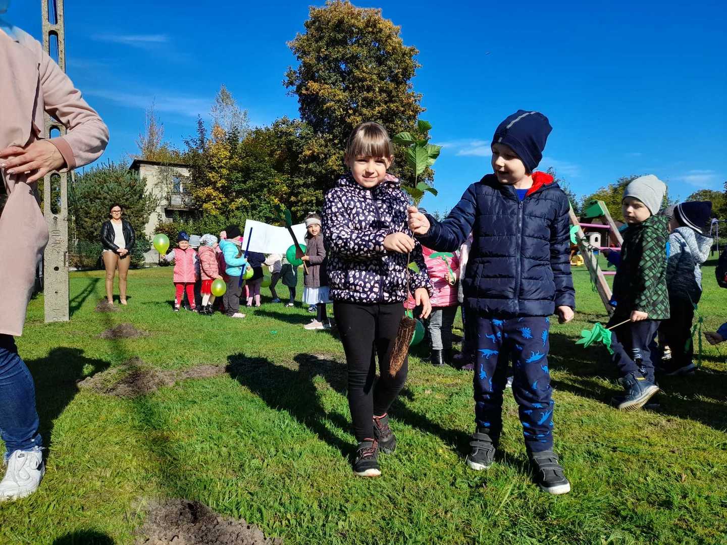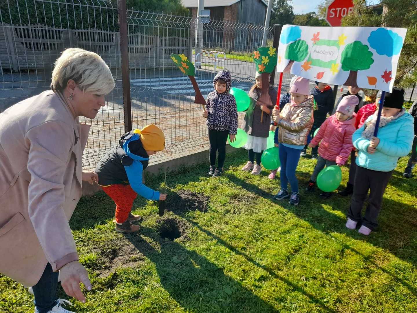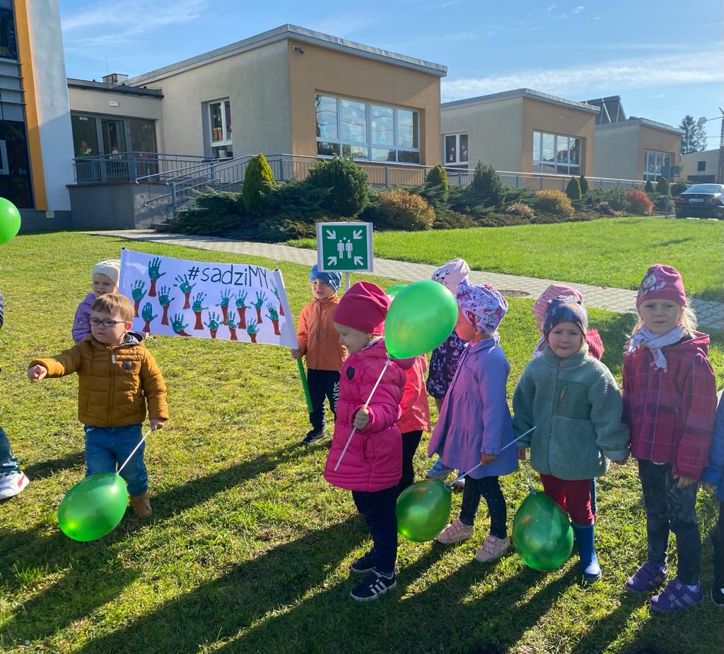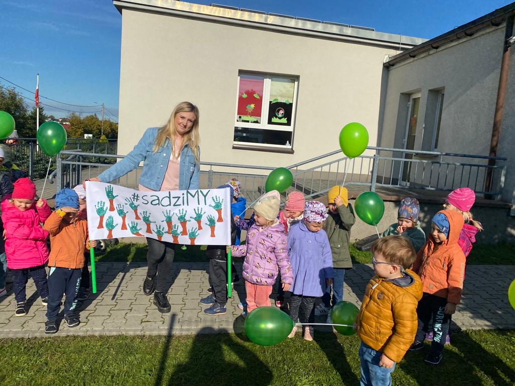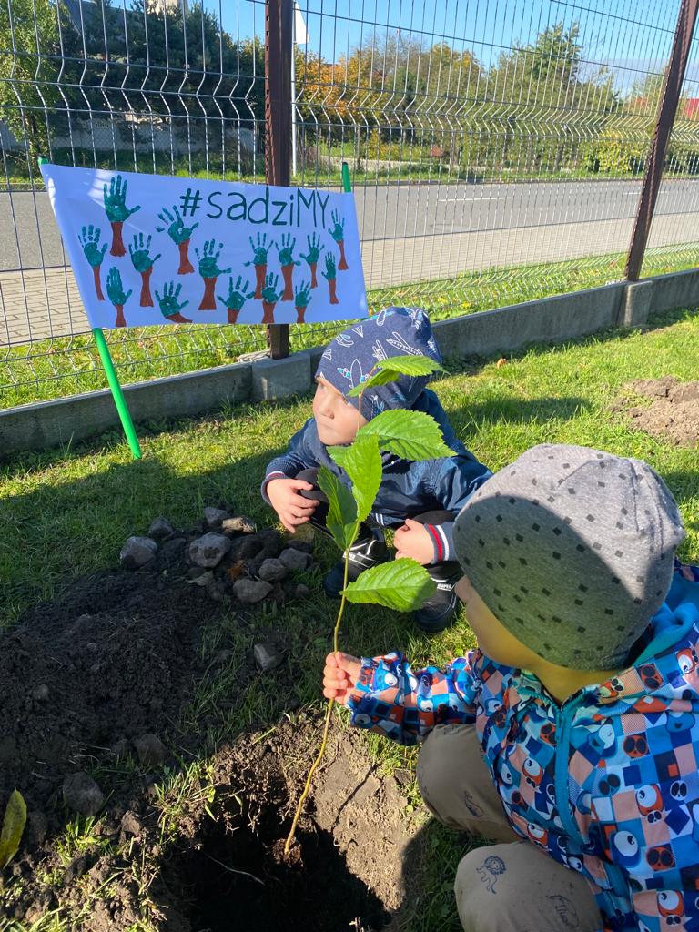 Nasze Przedszkole dołączyło do ogólnopolskiej akcji #sadziMY zainicjowanej przez Prezydenta Rzeczypospolitej Polskiej Andrzeja Dudę i Pierwszą Damę Agatę Kornahauser - Dudę. W czwartek (06.10.2022r.) dzieci wraz z wychowawcami zasadziły otrzymane sadzonki drzew na terenie przedszkolnego placu zabaw. Wiemy, że drzewa zapewniają nam tlen, oczyszczają powietrze, wpływają korzystnie na klimat, a dodatkowo te posadzone w naszym ogrodzie przedszkolnym będą jego piękną ozdobą.