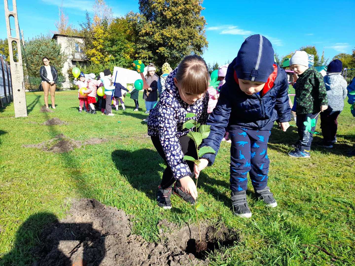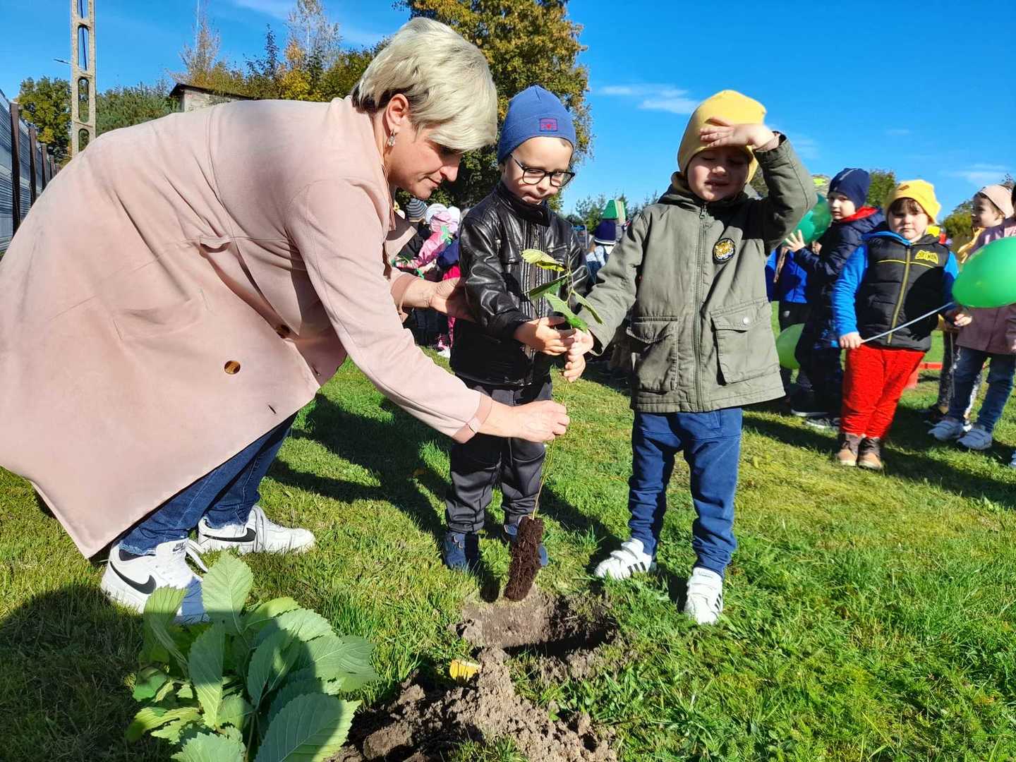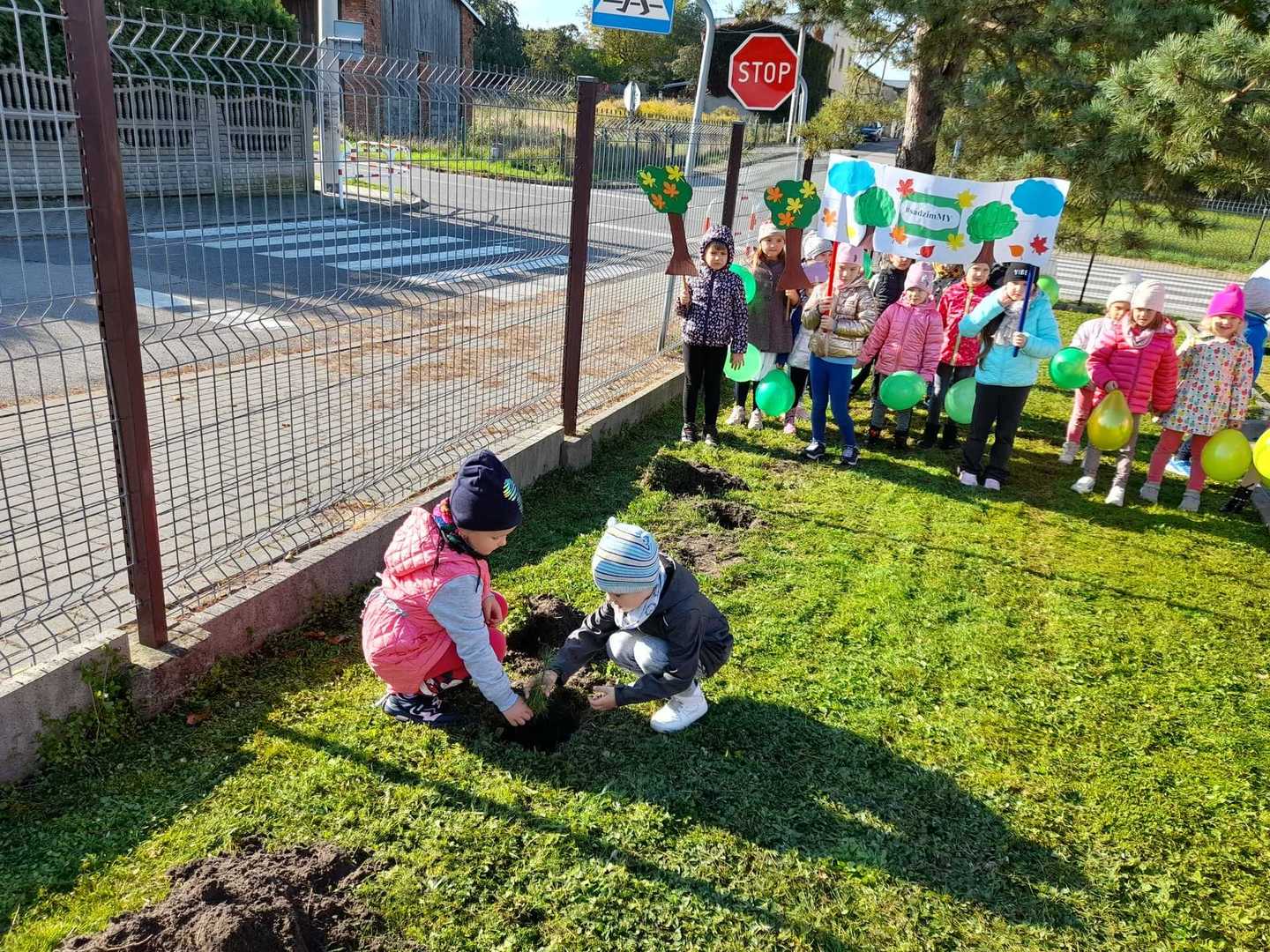 Nasze Przedszkole dołączyło do ogólnopolskiej akcji #sadziMY zainicjowanej przez Prezydenta Rzeczypospolitej Polskiej Andrzeja Dudę i Pierwszą Damę Agatę Kornahauser - Dudę. W czwartek (06.10.2022r.) dzieci wraz z wychowawcami zasadziły otrzymane sadzonki drzew na terenie przedszkolnego placu zabaw. Wiemy, że drzewa zapewniają nam tlen, oczyszczają powietrze, wpływają korzystnie na klimat, a dodatkowo te posadzone w naszym ogrodzie przedszkolnym będą jego piękną ozdobą.