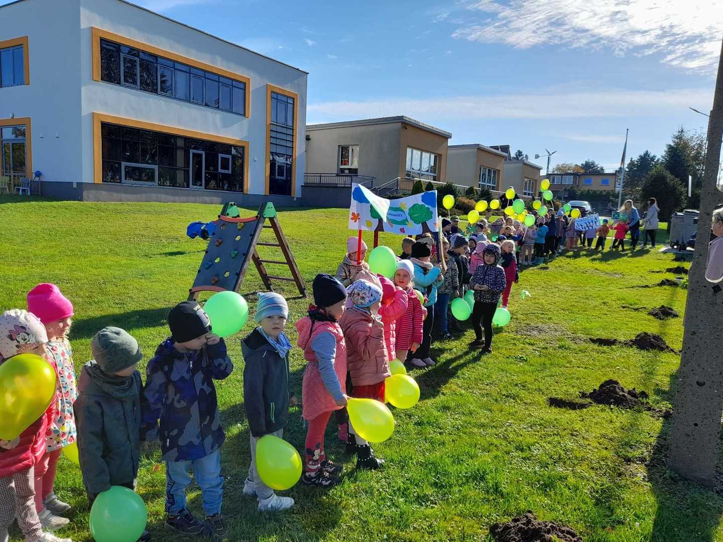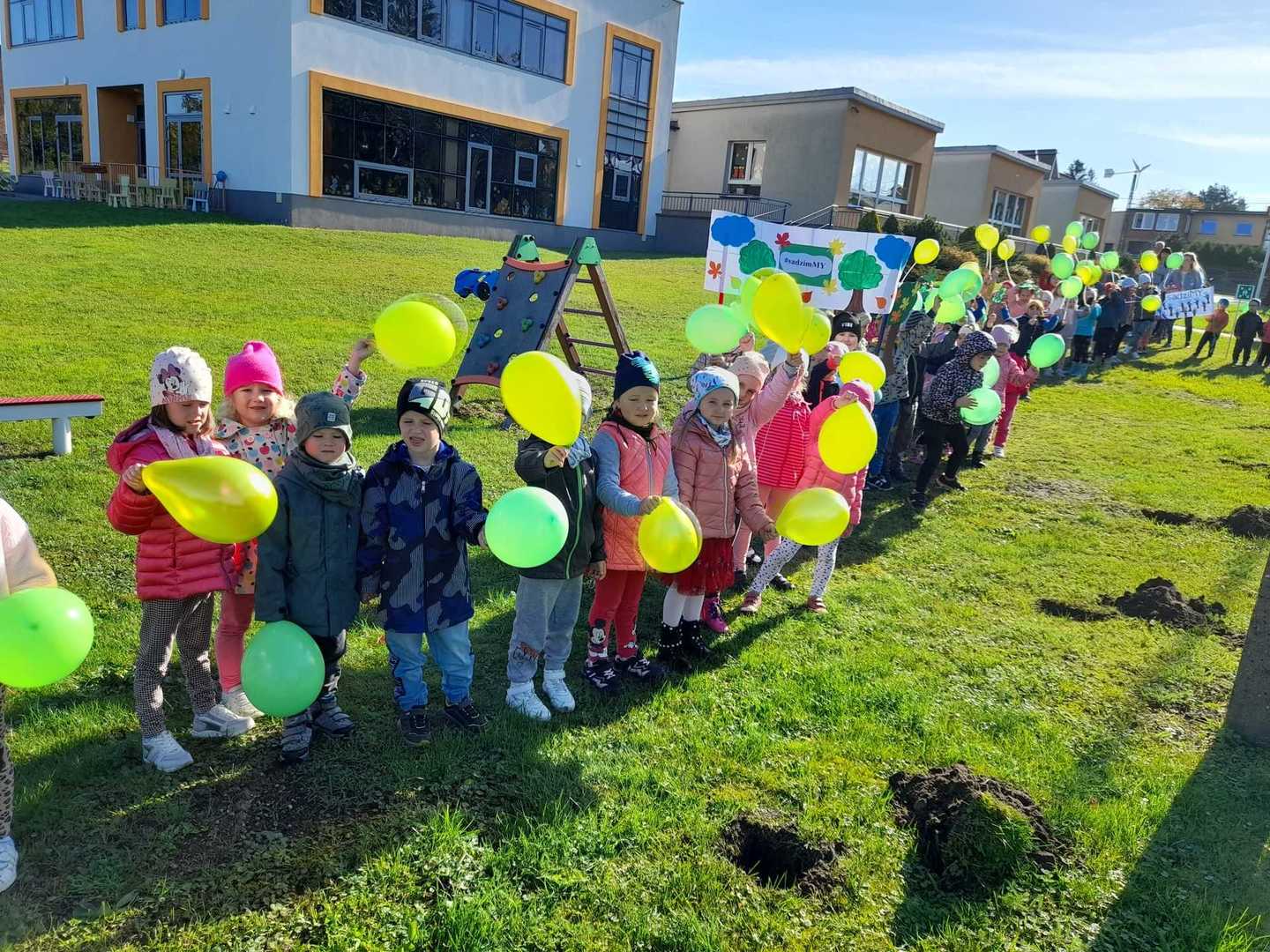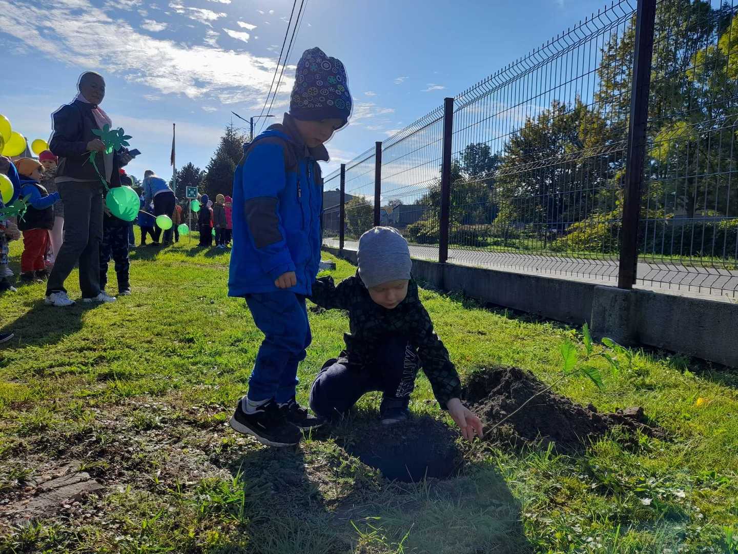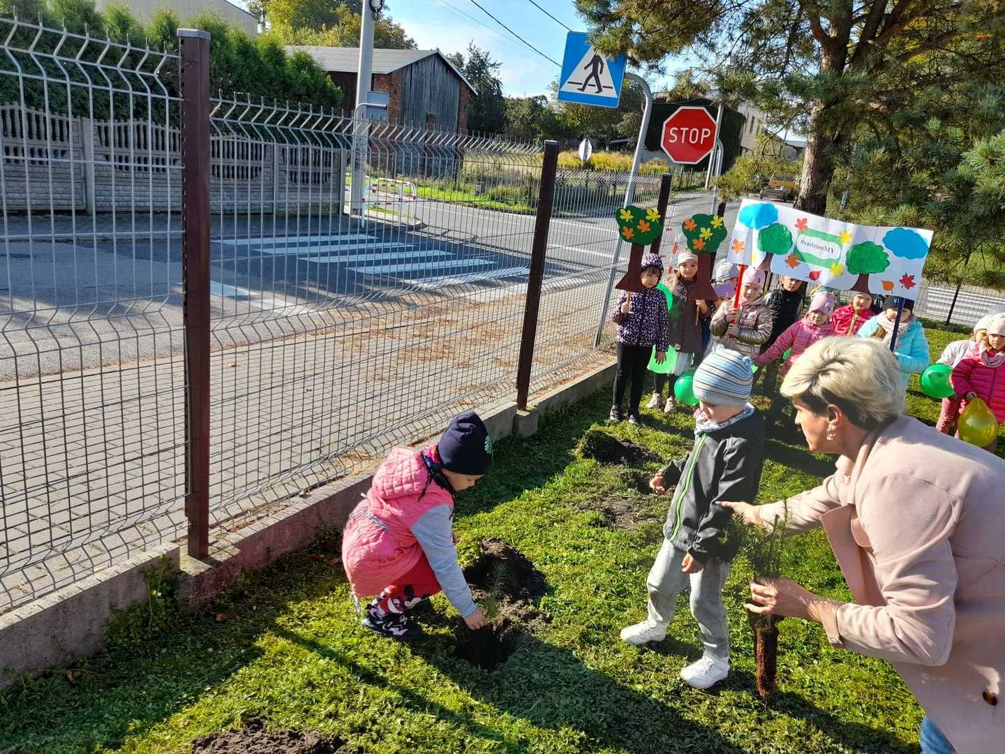 Nasze Przedszkole dołączyło do ogólnopolskiej akcji #sadziMY zainicjowanej przez Prezydenta Rzeczypospolitej Polskiej Andrzeja Dudę i Pierwszą Damę Agatę Kornahauser - Dudę. W czwartek (06.10.2022r.) dzieci wraz z wychowawcami zasadziły otrzymane sadzonki drzew na terenie przedszkolnego placu zabaw. Wiemy, że drzewa zapewniają nam tlen, oczyszczają powietrze, wpływają korzystnie na klimat, a dodatkowo te posadzone w naszym ogrodzie przedszkolnym będą jego piękną ozdobą.