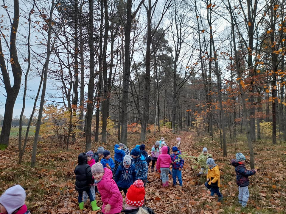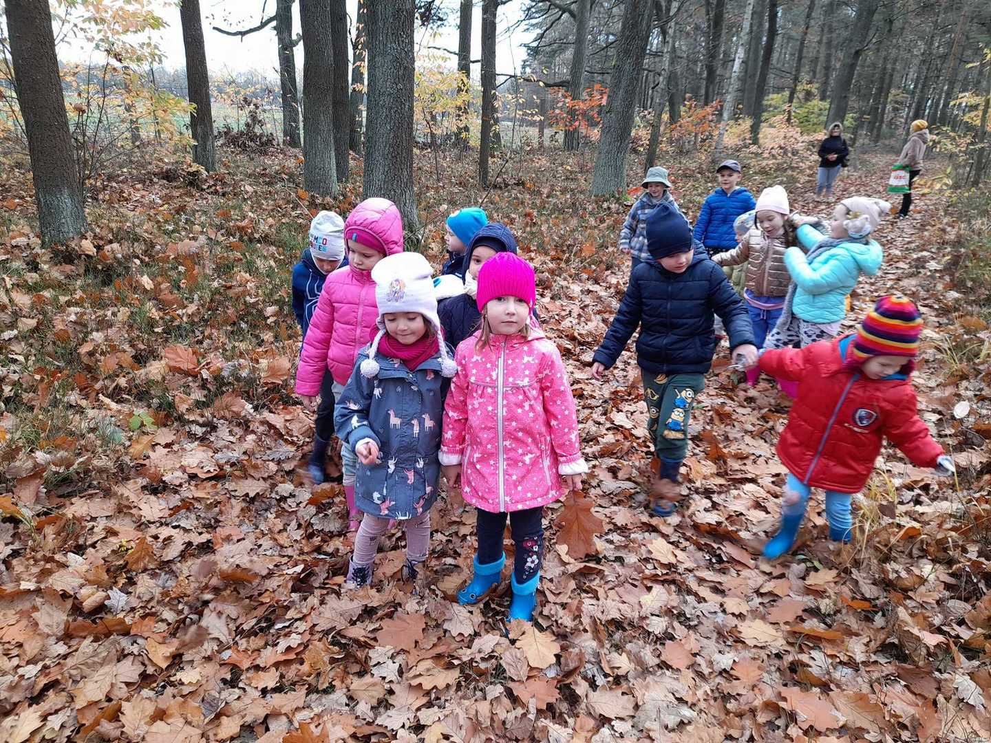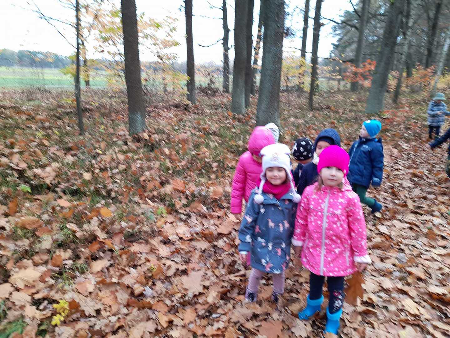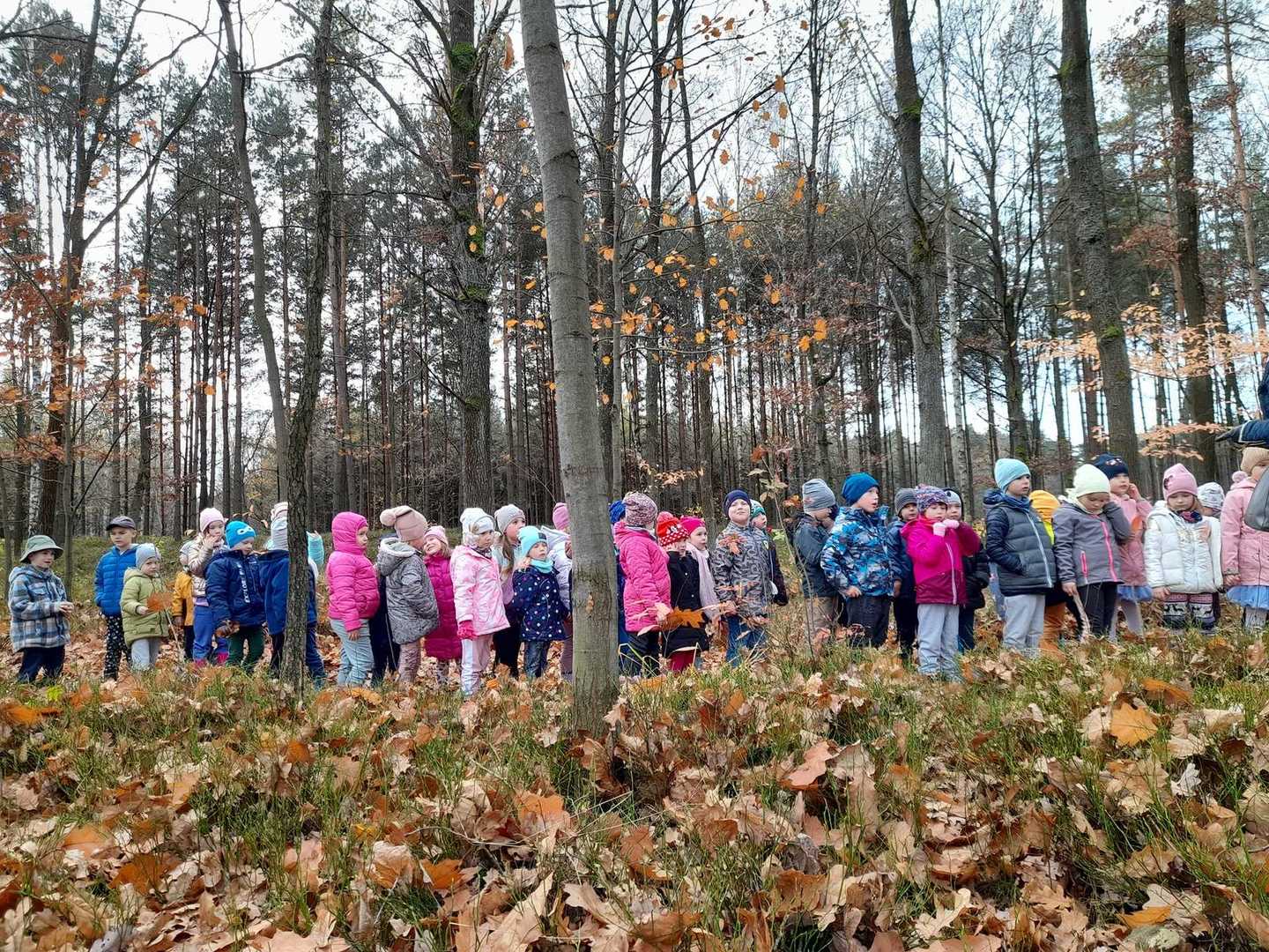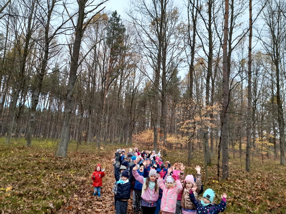 Już nadeszła złota jesień i zmieniła wszystko w lesie. Liście złote i czerwone Lecą wiatrem uniesione. Dąb w brązowym płaszczu stoi, zimna wcale się nie boi,