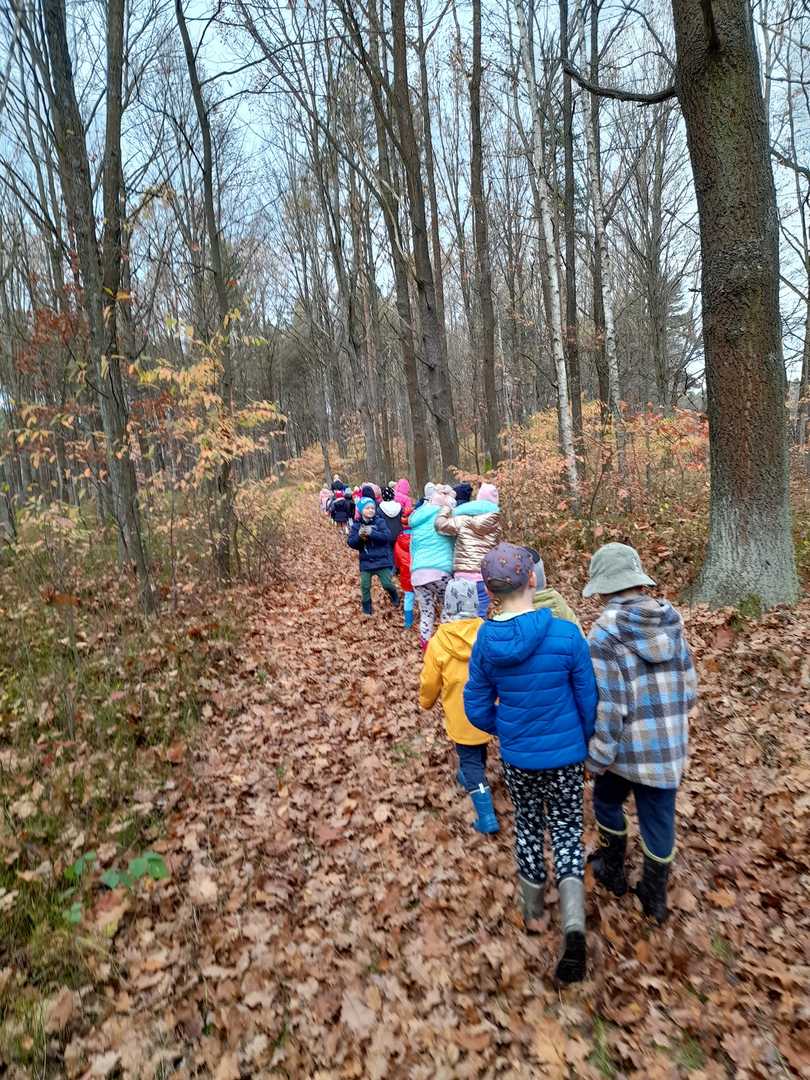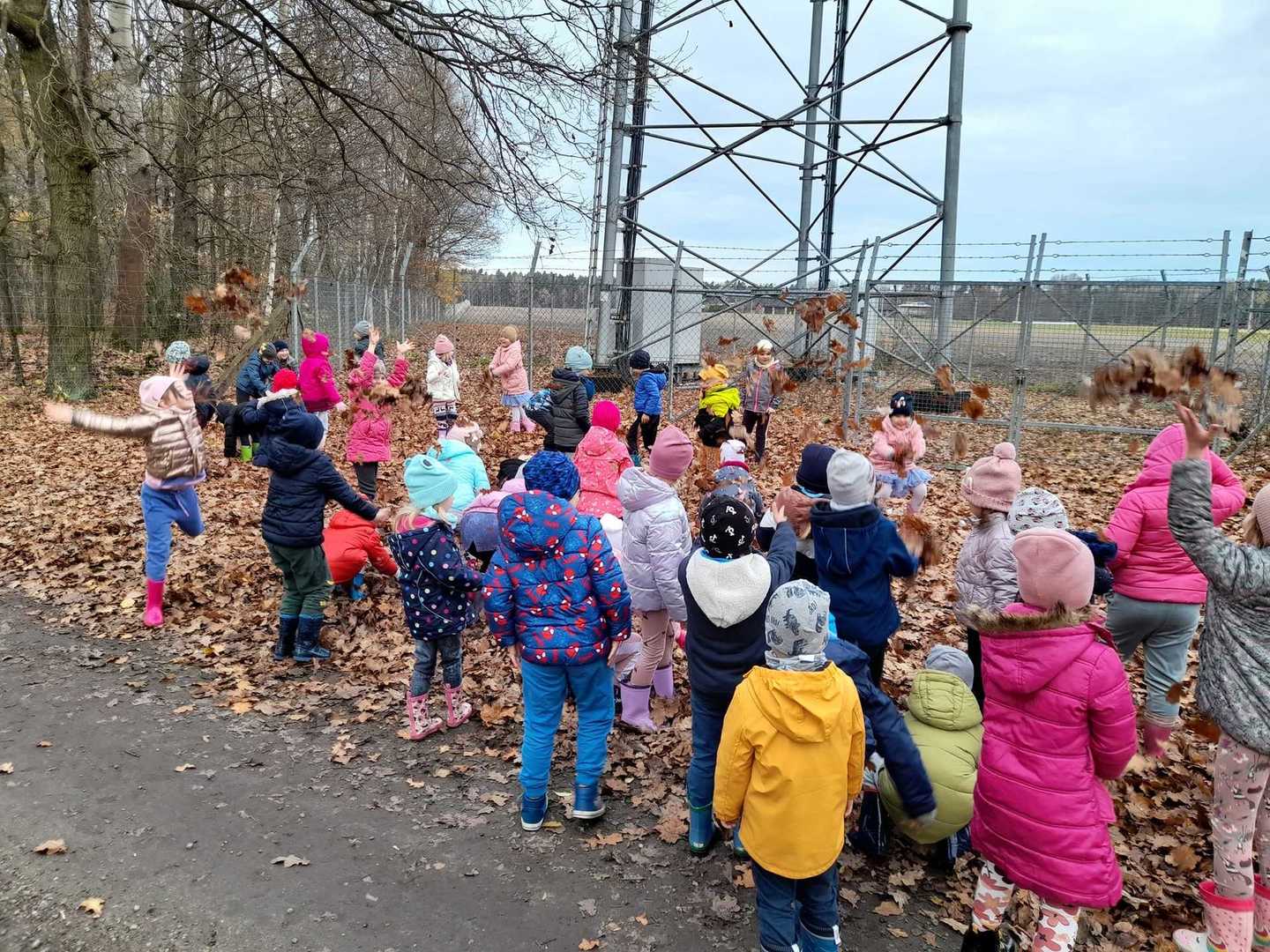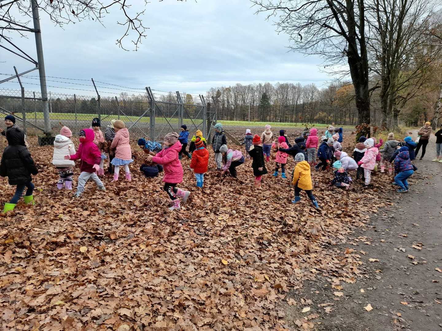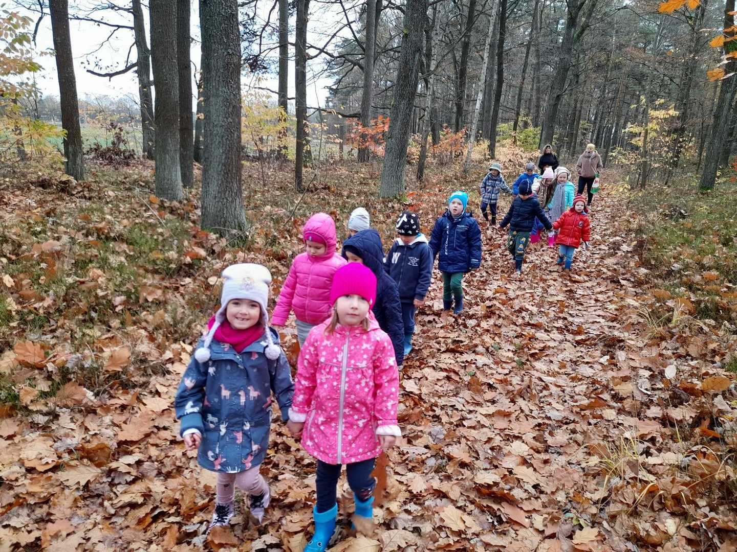 Już nadeszła złota jesień i zmieniła wszystko w lesie. Liście złote i czerwone Lecą wiatrem uniesione. Dąb w brązowym płaszczu stoi, zimna wcale się nie boi,
