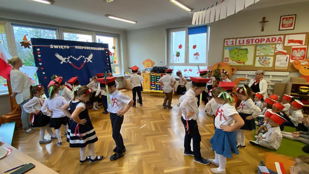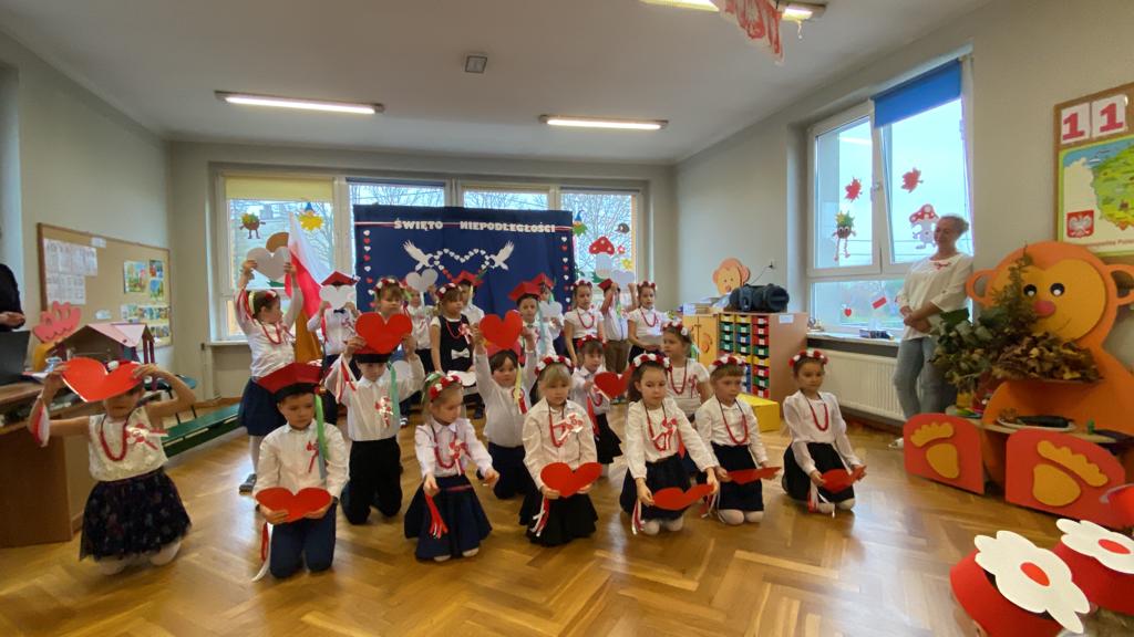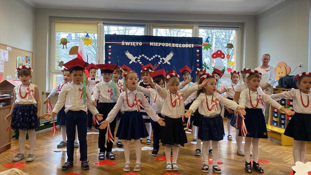 10listopada w naszym przedszkolu świętowaliśmy Narodowe Święto Niepodległości. To wyjątkowy czas dla każdej Polki i Polaka. Z tej okazji dzieci z wszystkich grup uroczyście świętowały ten wyjątkowy dla Polaków czas poprzez udział w akademii przygotowanej przez najstarszą grupę w naszym przedszkolu.