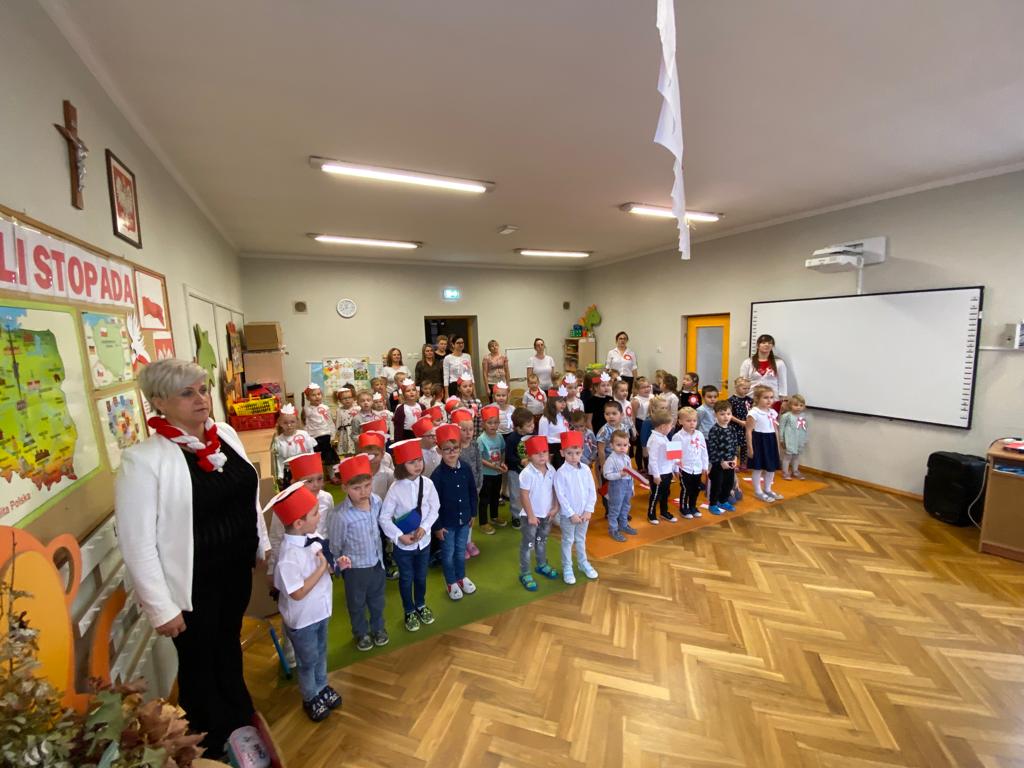 Uroczystość z okazji Narodowego Święta Niepodległości miała na celu rozwijanie wśród wychowanków naszego przedszkola poczucia przynależności narodowej, pielęgnowanie polskiej kultury i tradycji. Jednocześnie była pouczającą lekcją historii i patriotyzmu.