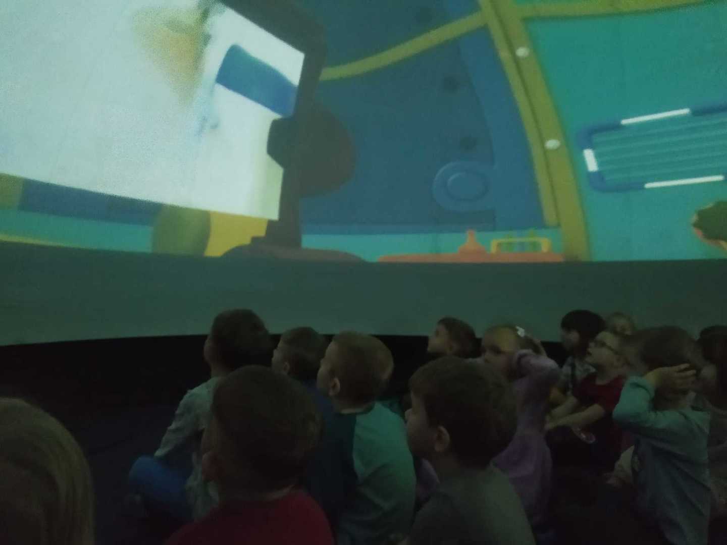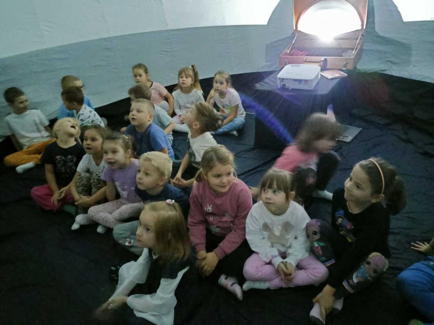 Najmłodsze przedszkolaki miały okazję zobaczyć bajkę edukacyjną pt. ,,Kosmiczna Przygoda Cocomong’a”, z kolei grupy starsze: ,,Polaris. Tajemnica nocy polarnej”.