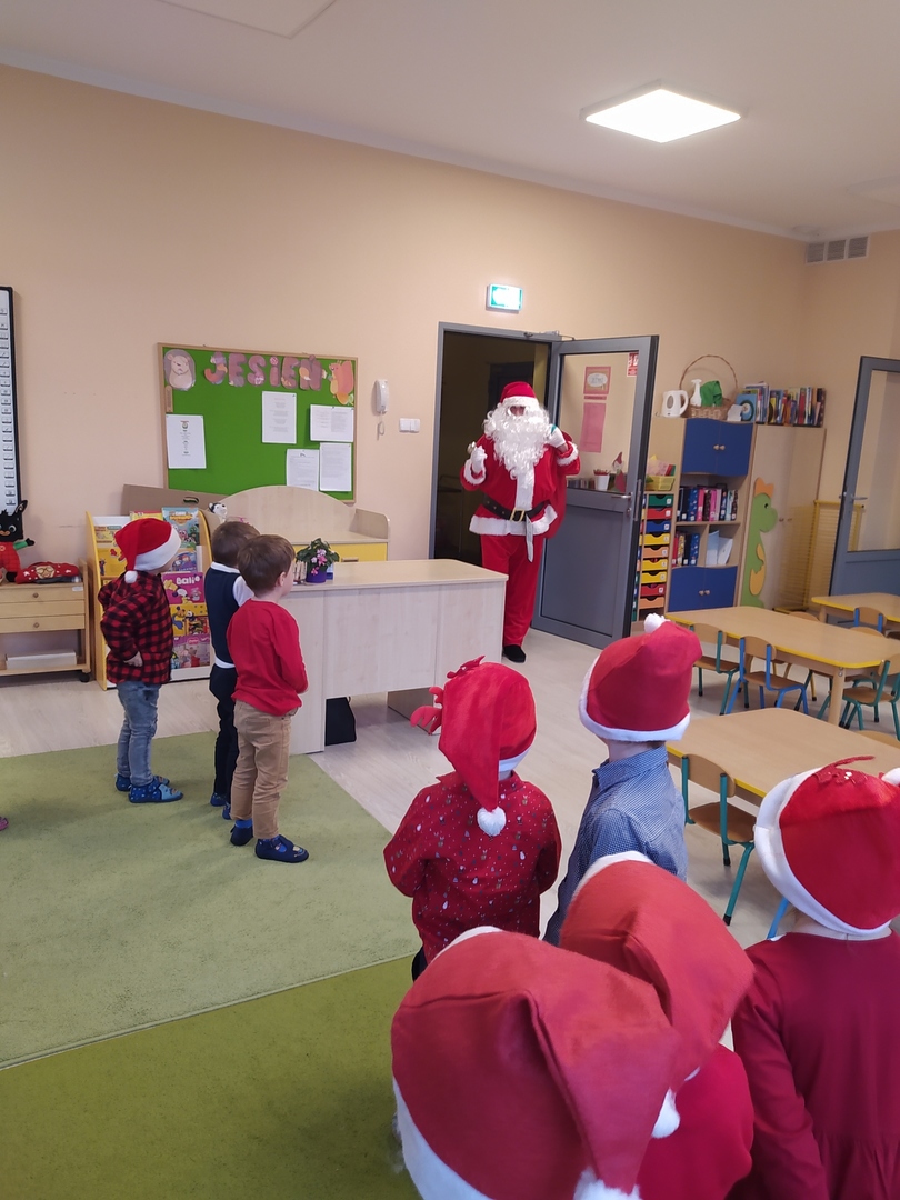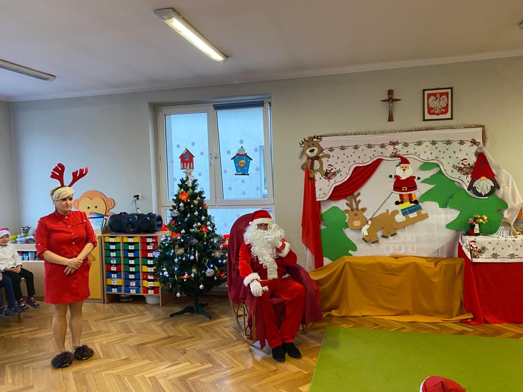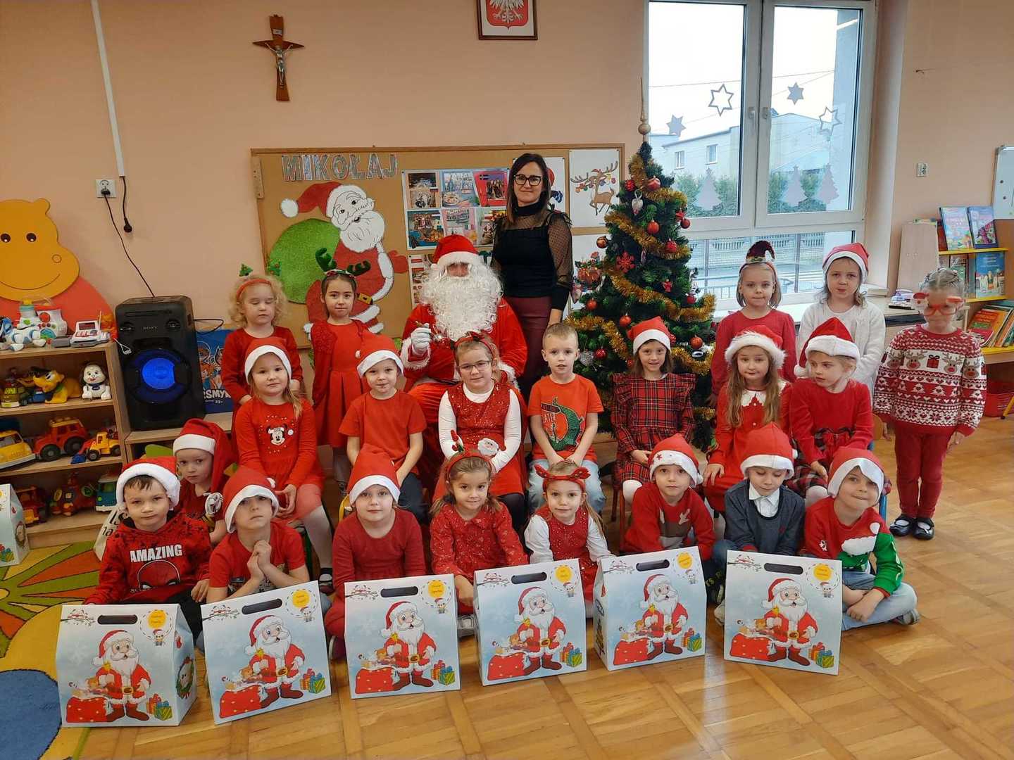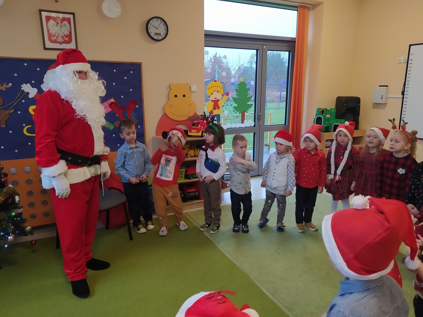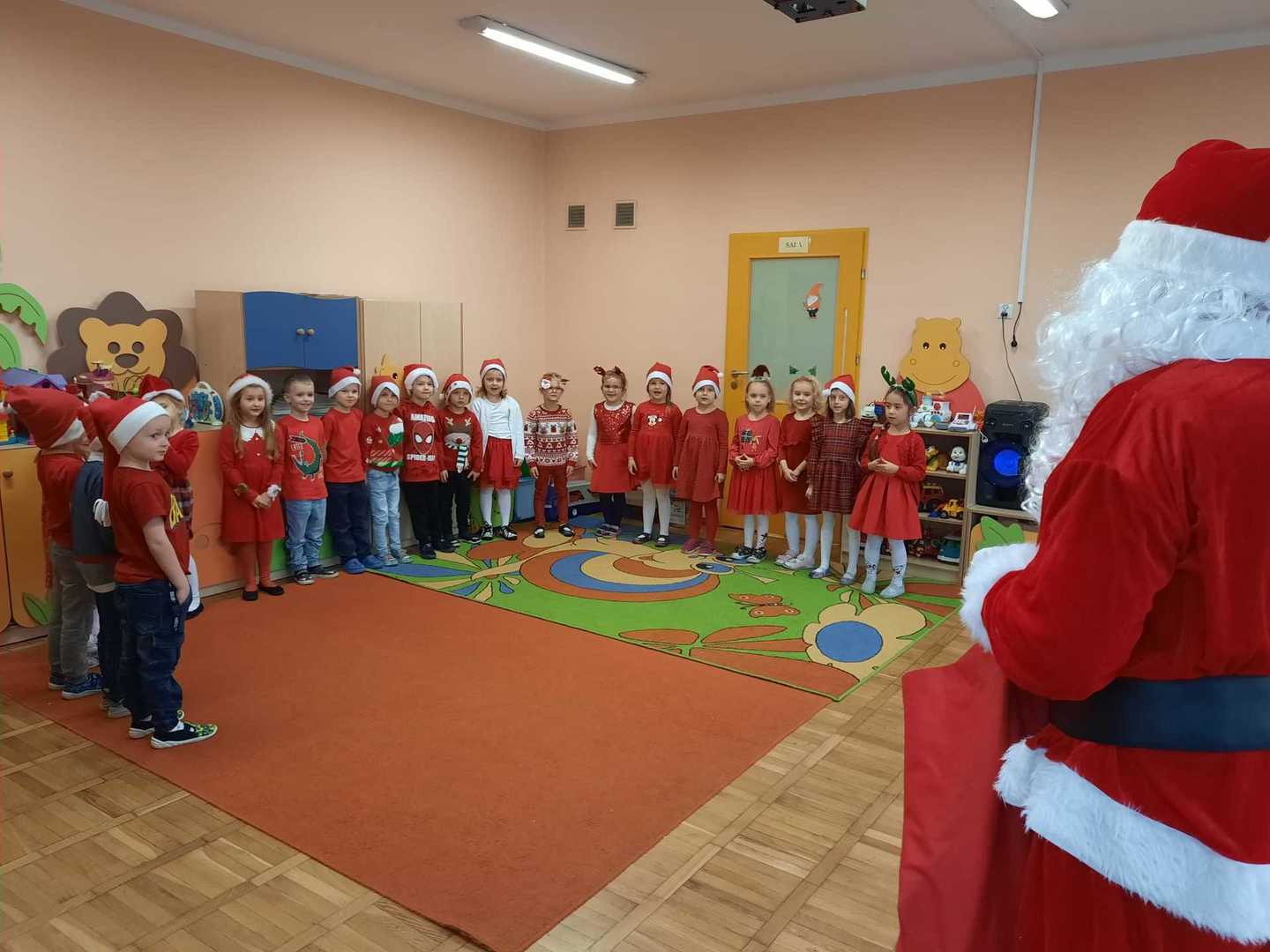 Wizyta świętego Mikołaja w naszym przedszkolu, to jeden z najbardziej oczekiwanych przez dzieci dni w roku. Już od samego rana dzieci czekłay na miłego gościa nasłuchując dźwieku dzwoneczków. Zaraz po śniadaniu usłyszaly tak wyczekiwany dźwięk, który było słychać już z daleka. I już wiadomo było, że do przedszkola zbliża się nikt inny, jak Święty Mikołaj we własnej osobie. Mikołaj nie zawiódł dzieci i nie kazał długo na siebie czekać. Wszystkie przedszkolaki bardzo przeżywały to spotkanie, szczególnie te, które pierwszy raz witały Mikołaja w przedszkolu. Długo oczekiwany gość wywołał uśmiech na twarzach przedszkolaków. Dzieci z ogromną radością przywitały Mikołaja śpiewając mu piosenki i recytując wiersze. Każde dziecko złożyło obietnice, iż kolejny rok będzie grzeczne i posłuszne. Na zakończenie Święty Mikołaj wszystkim przedszkolakom osobiście przekazał piękne prezenty, a w nich – dla każdego coś dobrego.