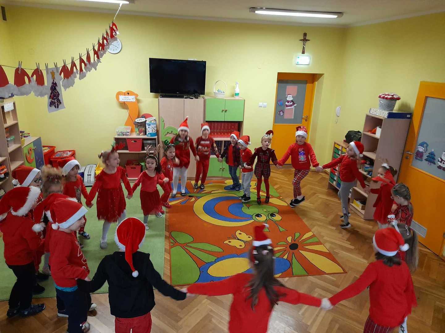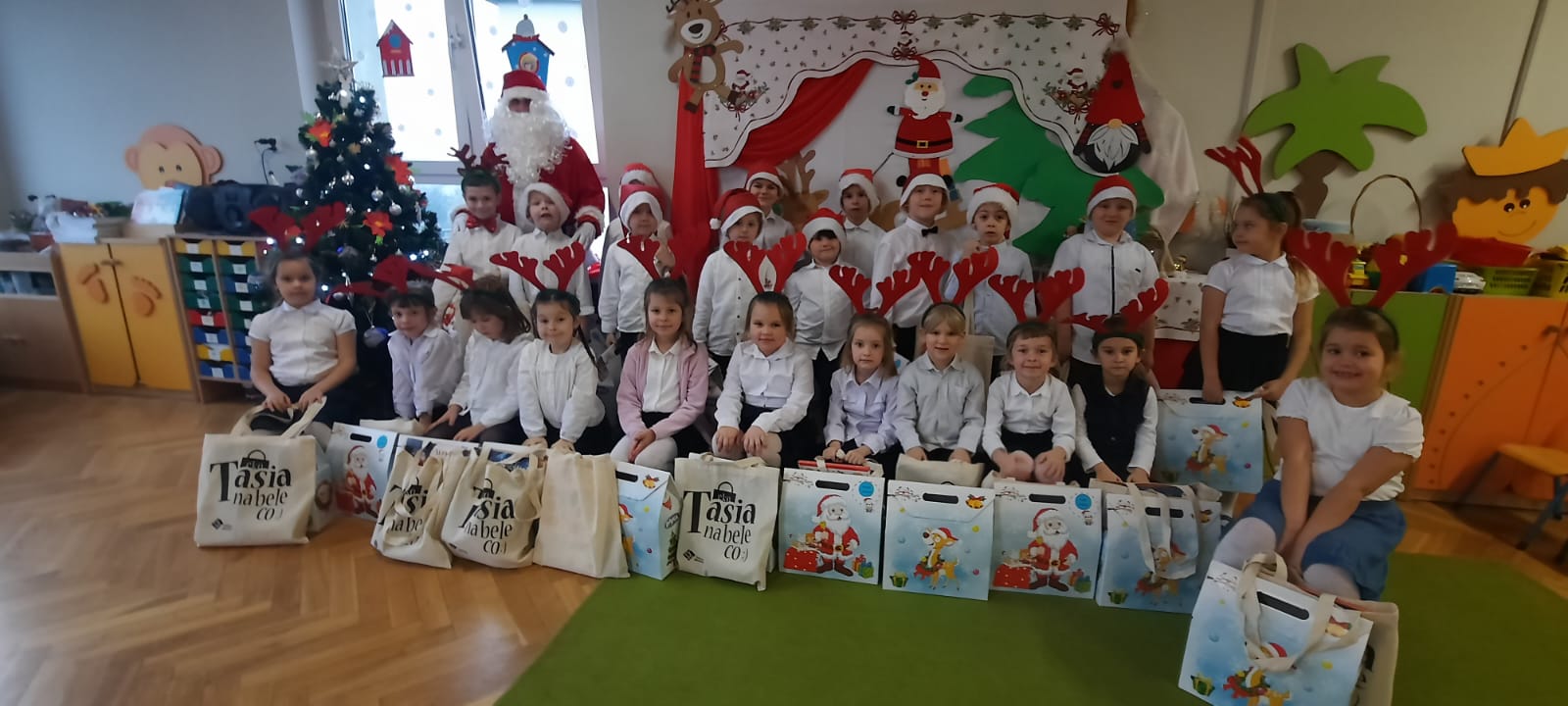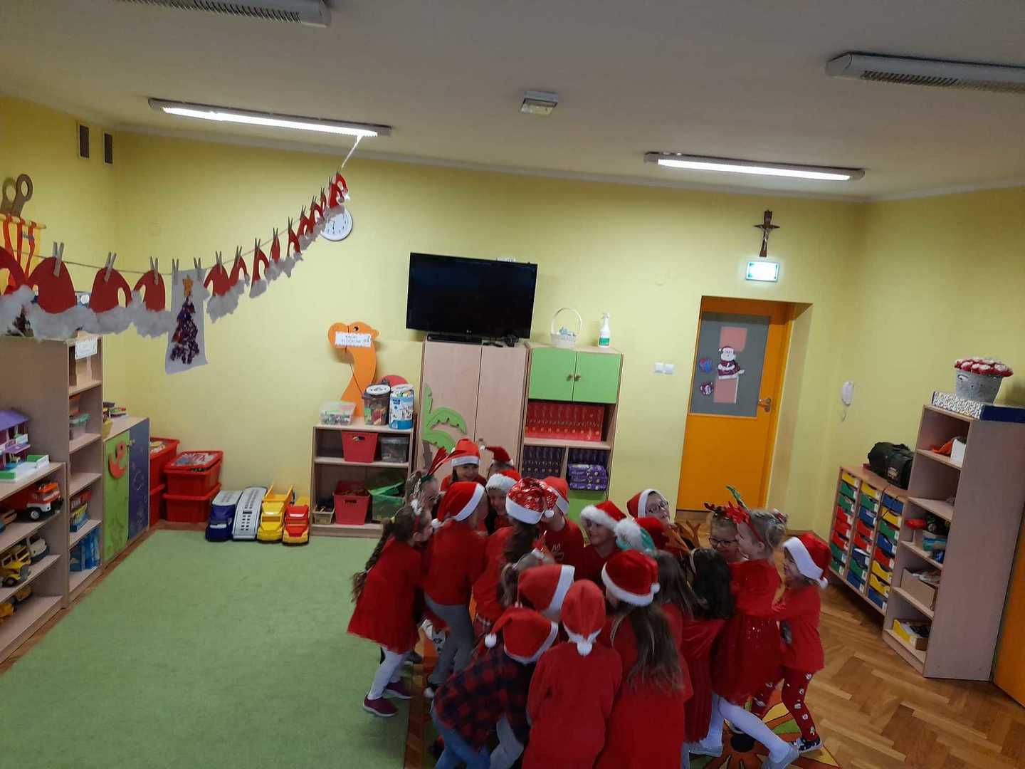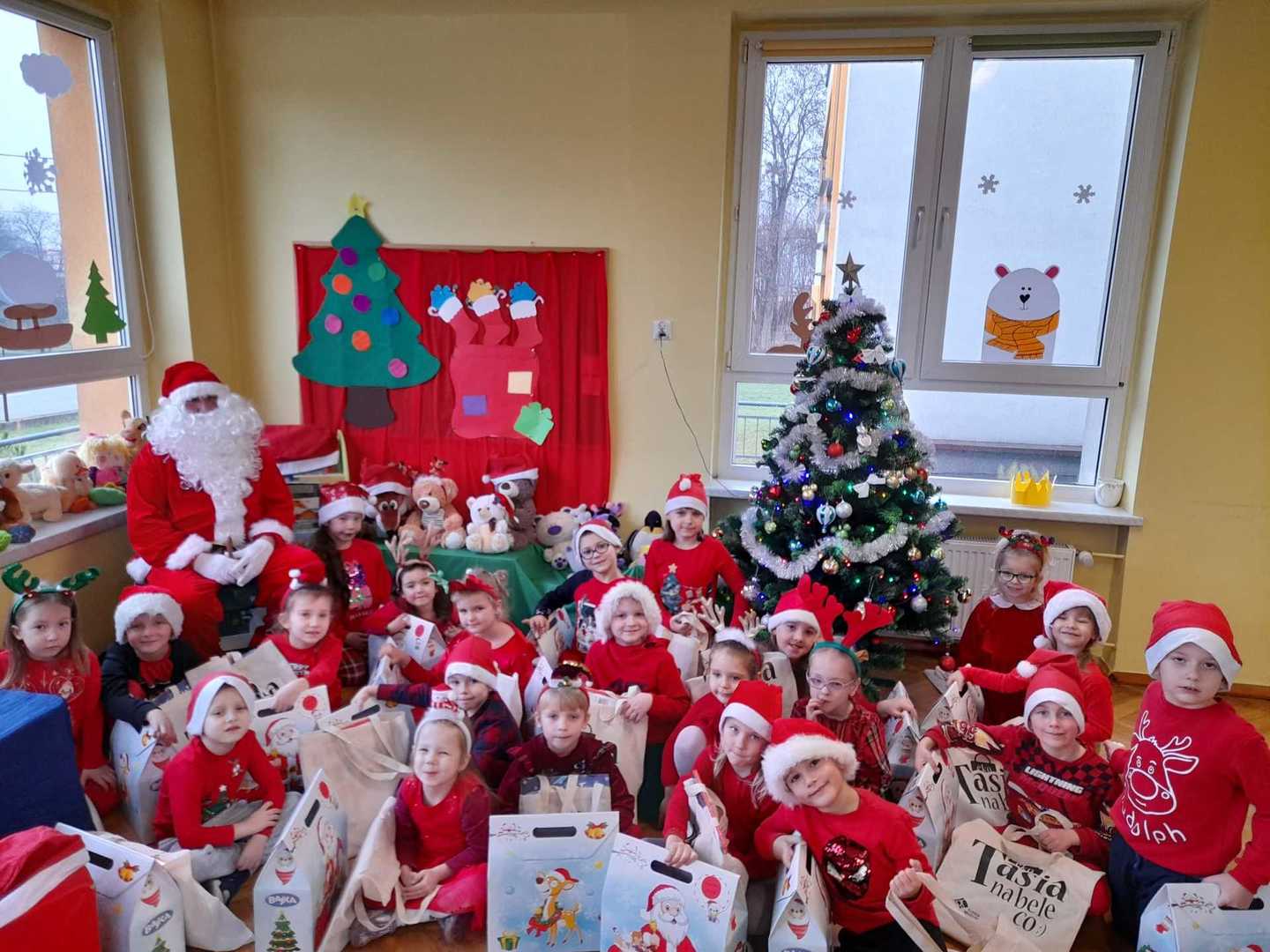 Wizyta świętego Mikołaja w naszym przedszkolu, to jeden z najbardziej oczekiwanych przez dzieci dni w roku. Już od samego rana dzieci czekłay na miłego gościa nasłuchując dźwieku dzwoneczków. Zaraz po śniadaniu usłyszaly tak wyczekiwany dźwięk, który było słychać już z daleka. I już wiadomo było, że do przedszkola zbliża się nikt inny, jak Święty Mikołaj we własnej osobie. Mikołaj nie zawiódł dzieci i nie kazał długo na siebie czekać. Wszystkie przedszkolaki bardzo przeżywały to spotkanie, szczególnie te, które pierwszy raz witały Mikołaja w przedszkolu. Długo oczekiwany gość wywołał uśmiech na twarzach przedszkolaków. Dzieci z ogromną radością przywitały Mikołaja śpiewając mu piosenki i recytując wiersze. Każde dziecko złożyło obietnice, iż kolejny rok będzie grzeczne i posłuszne. Na zakończenie Święty Mikołaj wszystkim przedszkolakom osobiście przekazał piękne prezenty, a w nich – dla każdego coś dobrego.