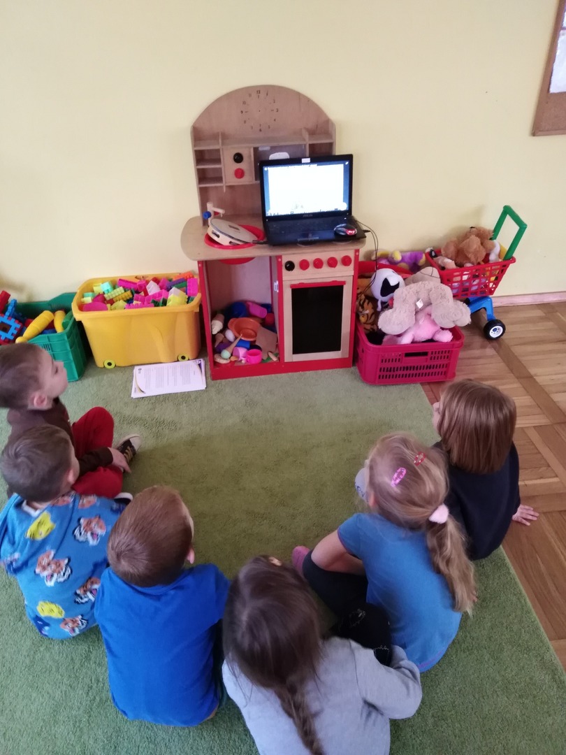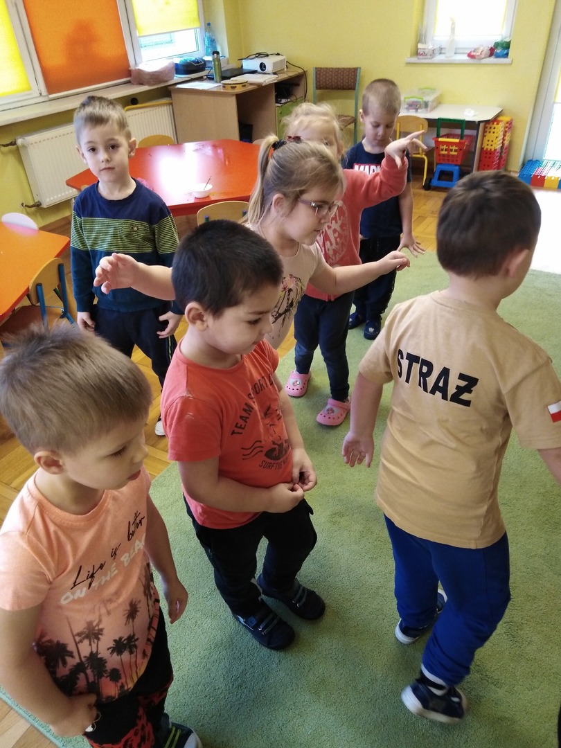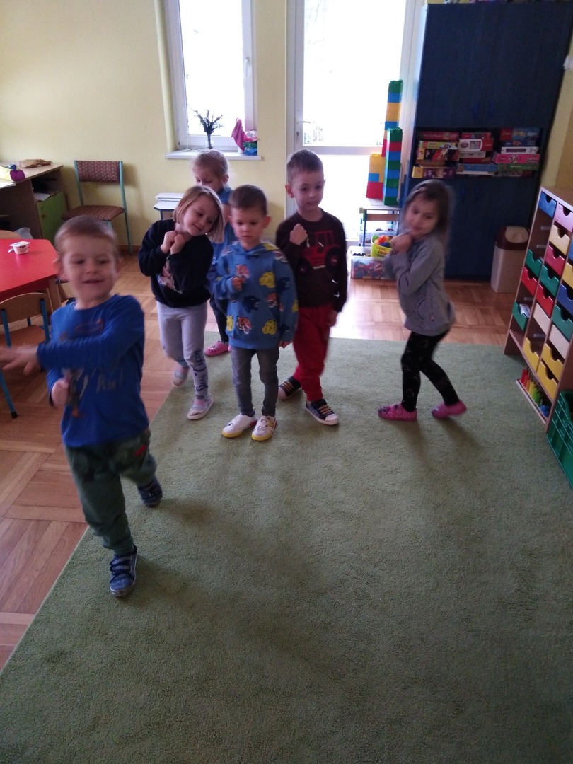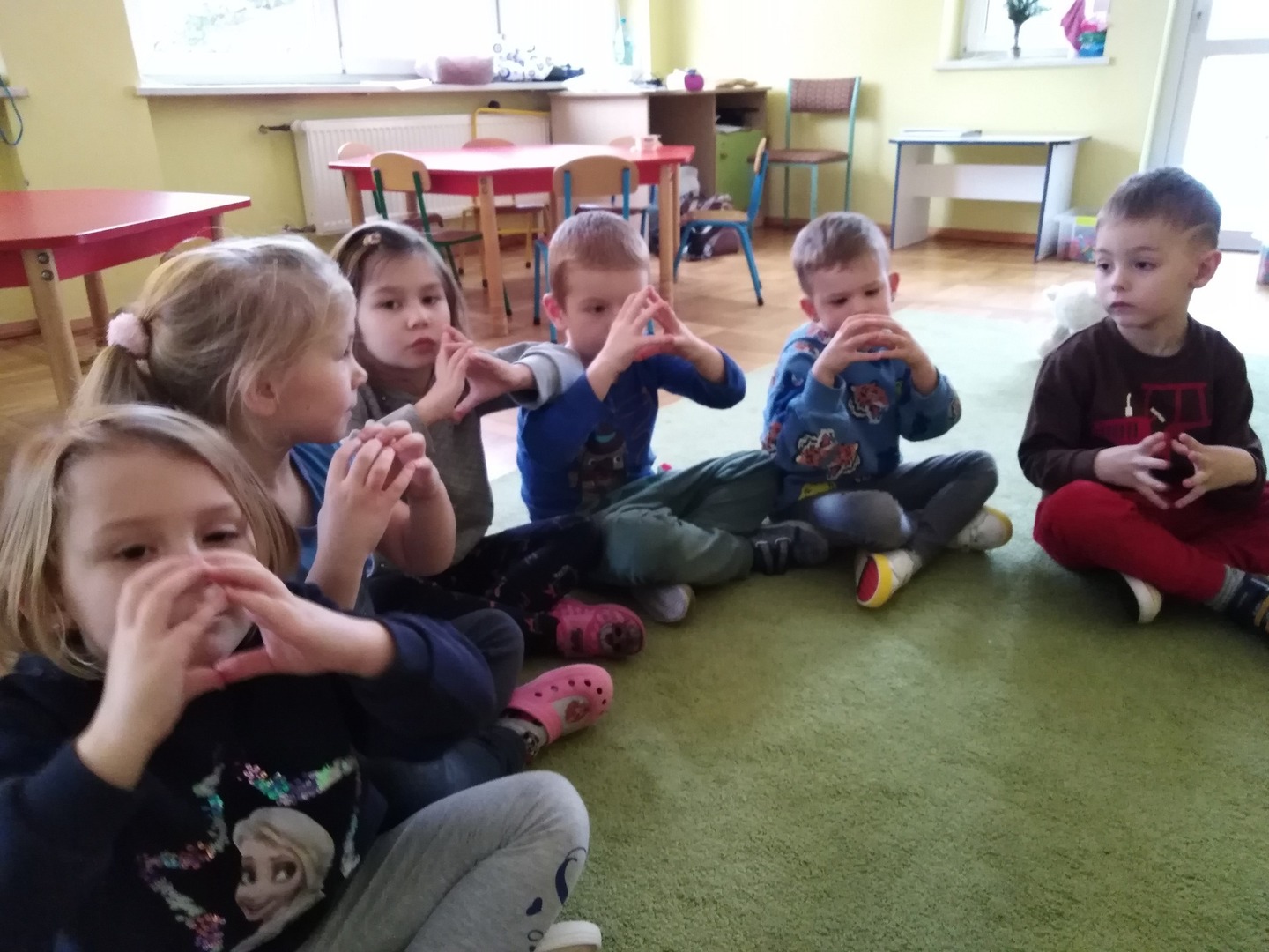 -brały udział w zabawach ruchowych „Prezenty” i „Bałwanki”, które ćwiczyły reakcję na zmienne tempo muzyki, reakcję na sygnał,kształtowały sprawność ruchową i motorykę całego ciała utrwalając jednocześnie poznane znaki języka migowego;