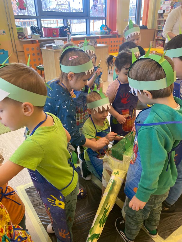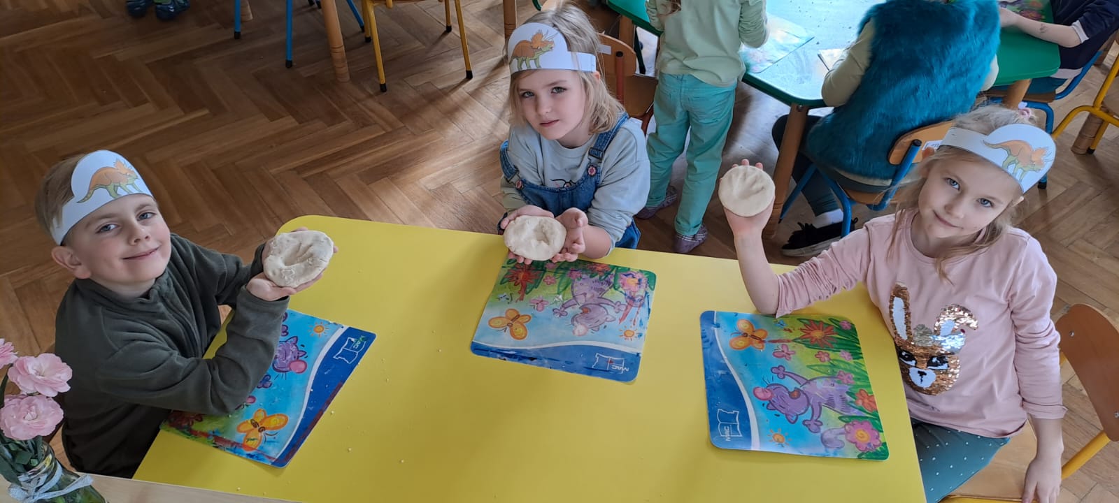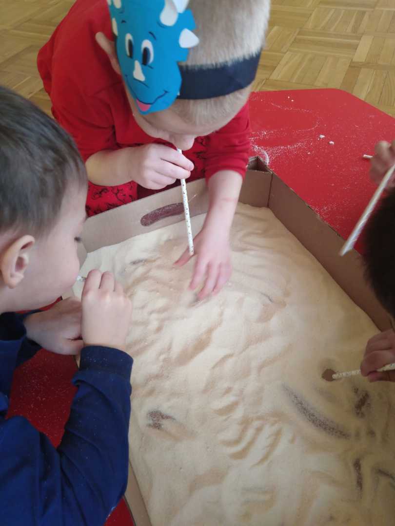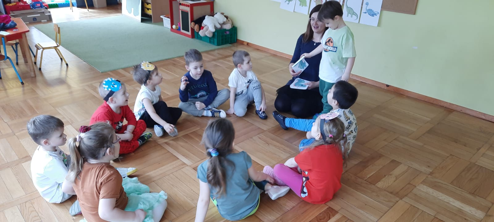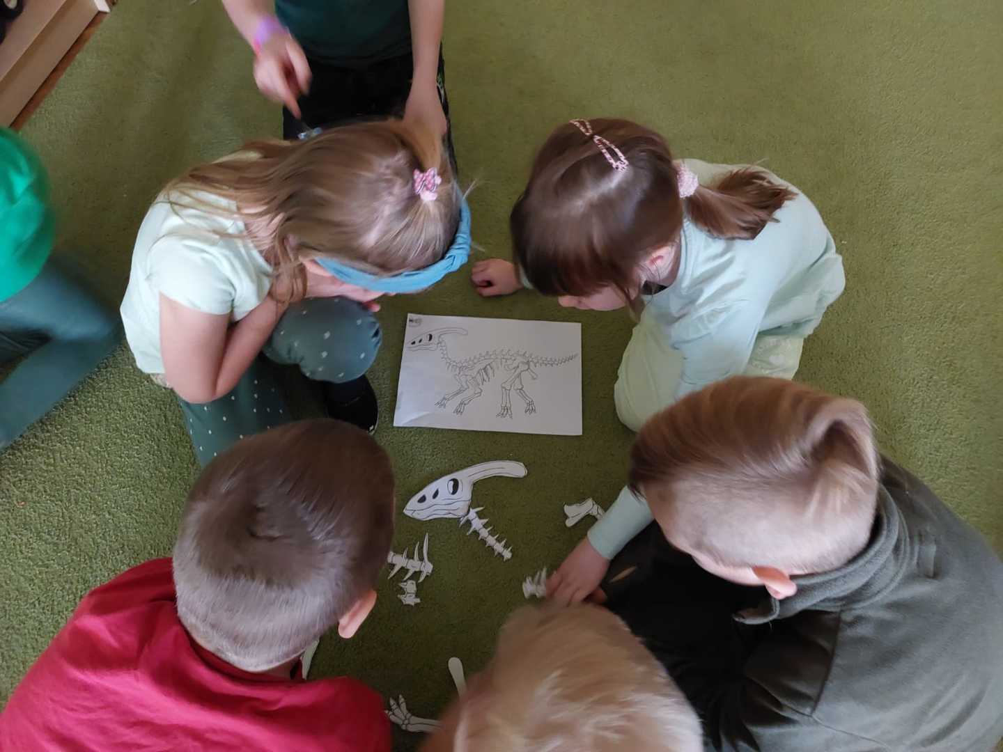 Dziś obchodziliśmy święto znanych, prehistorycznych stworzeń - Dzień Dinozaura. Dzieci poznały historię dinozaurów, dowiedziały się kiedy żyły, czym się żywiły i jak wyglądały. Rozmawialiśmy na temat pracy paleontologa i wspólnie dokonaliśmy ,,wykopalisk" dzięki którym zobaczyliśmy jak wyglądają szkielety niektórych dinozaurów. W zorganizowanych kącikach można było podziwiać diplodoki tyranozaury, triceratopsy, pterodaktyle itp. Nie zabrakło również ciekawych zabawach ruchowych oraz plastycznych związanych z tematyką zajęć. Duże zainteresowanie wzbudziły zajęcia badawcze, dzięki którym dzieci mogły poznać działanie wulkanu.