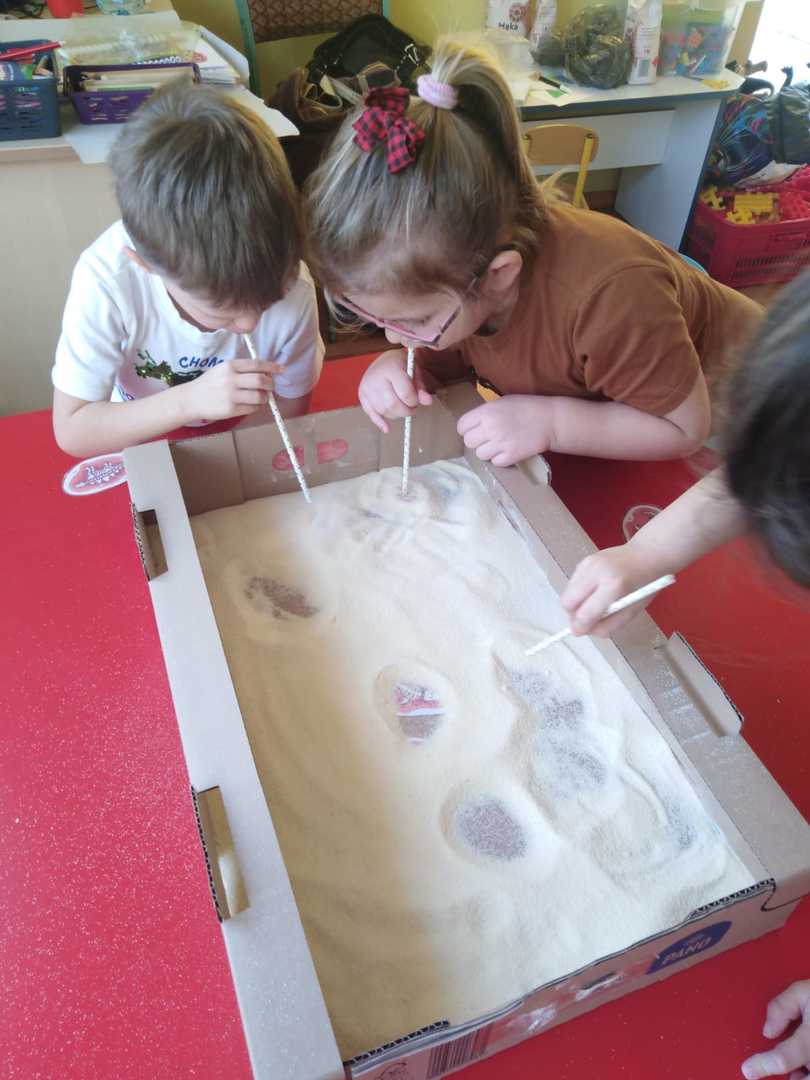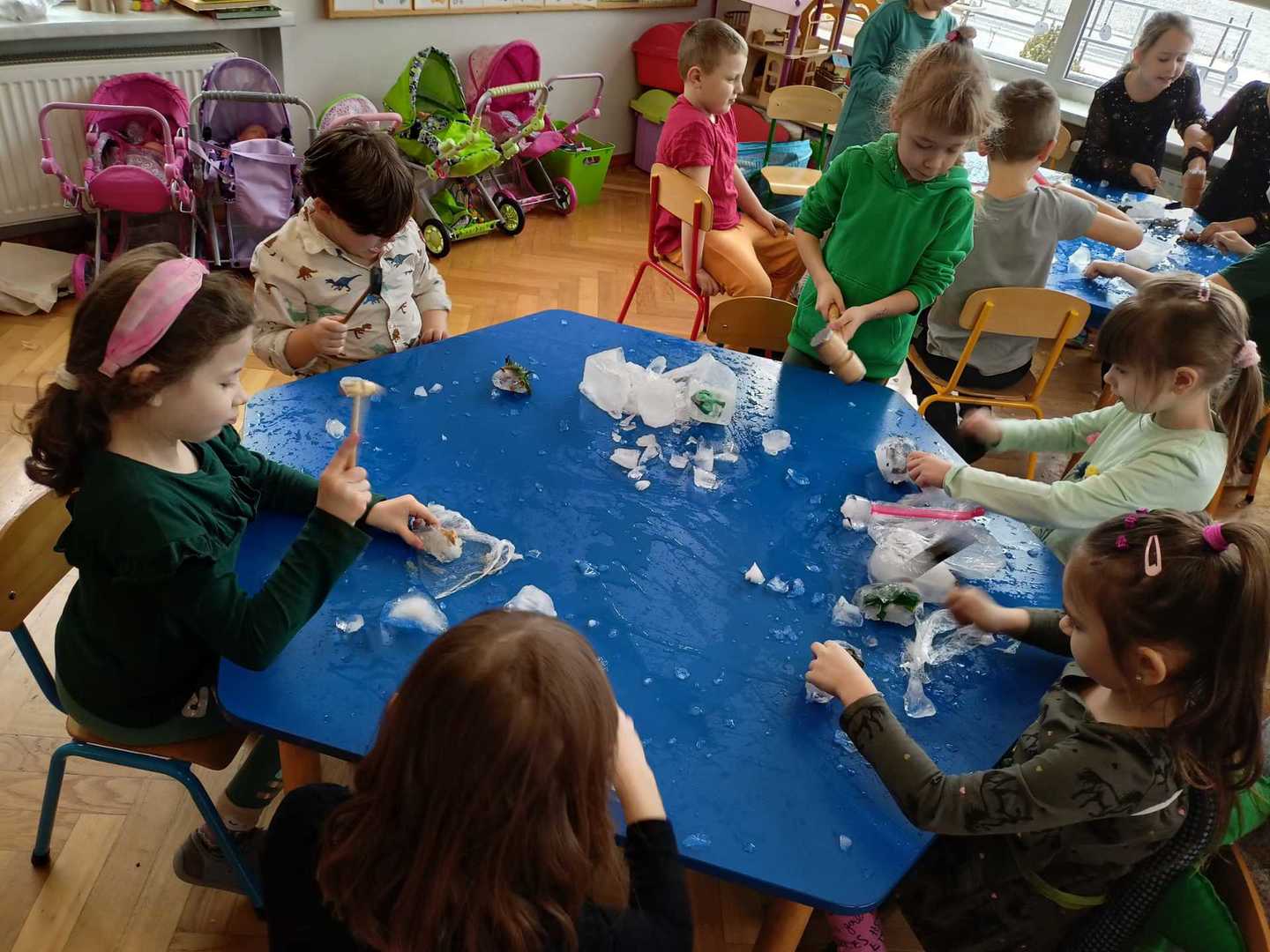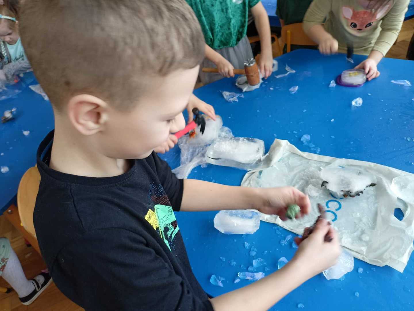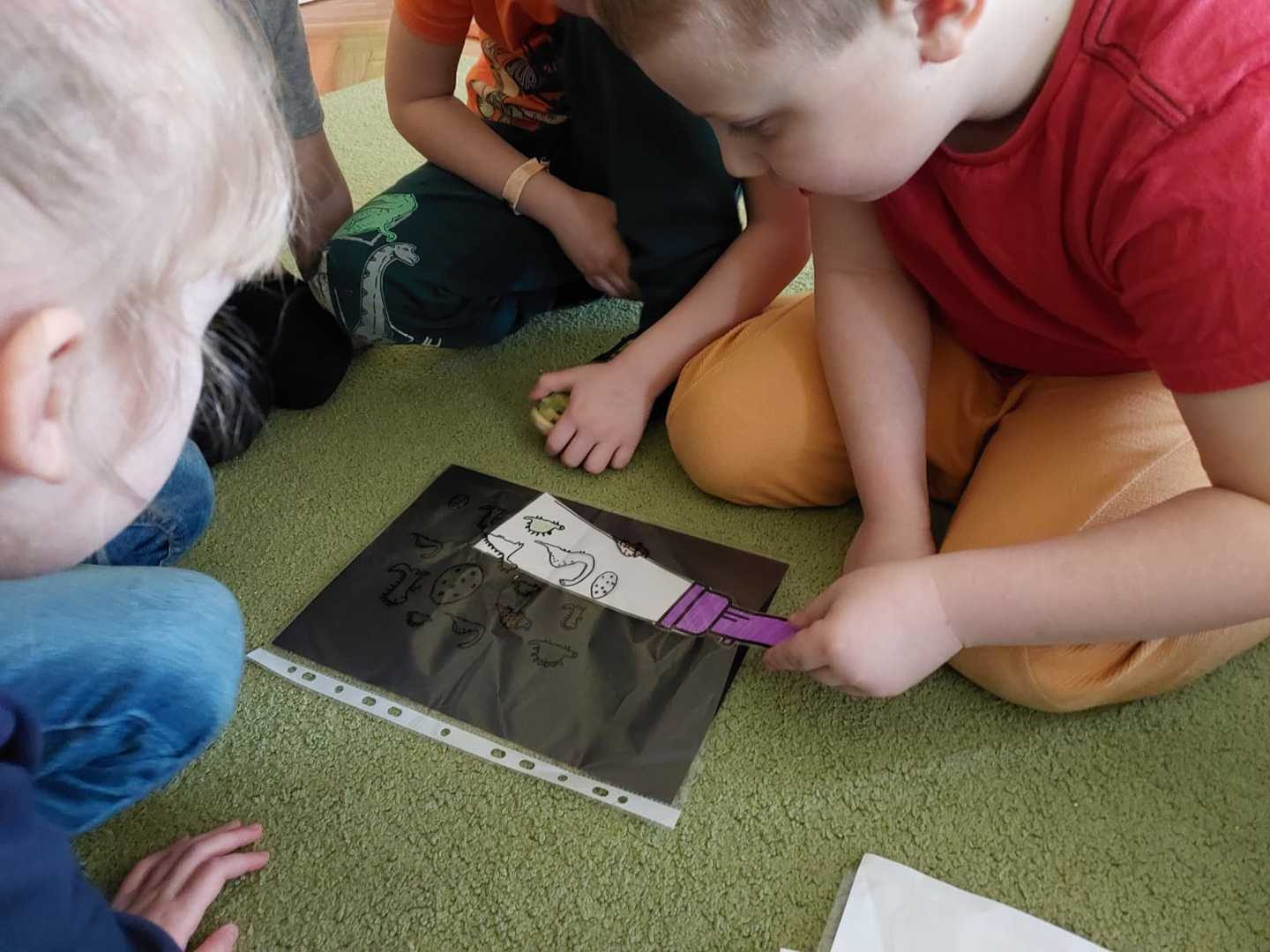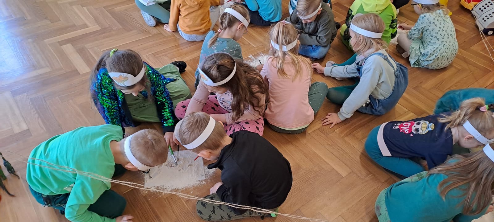 Dziś obchodziliśmy święto znanych, prehistorycznych stworzeń - Dzień Dinozaura. Dzieci poznały historię dinozaurów, dowiedziały się kiedy żyły, czym się żywiły i jak wyglądały. Rozmawialiśmy na temat pracy paleontologa i wspólnie dokonaliśmy ,,wykopalisk" dzięki którym zobaczyliśmy jak wyglądają szkielety niektórych dinozaurów. W zorganizowanych kącikach można było podziwiać diplodoki tyranozaury, triceratopsy, pterodaktyle itp. Nie zabrakło również ciekawych zabawach ruchowych oraz plastycznych związanych z tematyką zajęć. Duże zainteresowanie wzbudziły zajęcia badawcze, dzięki którym dzieci mogły poznać działanie wulkanu.