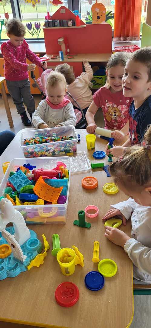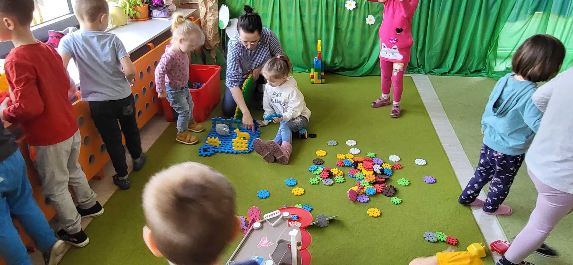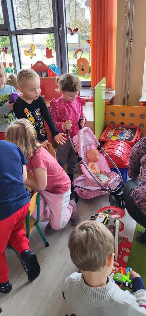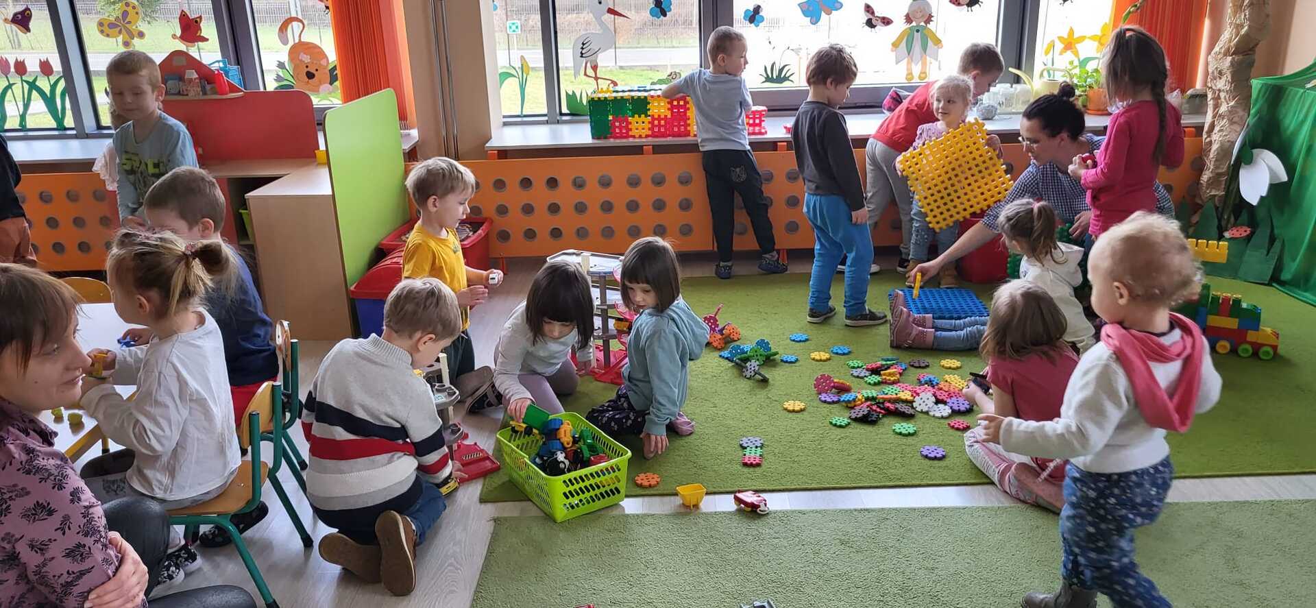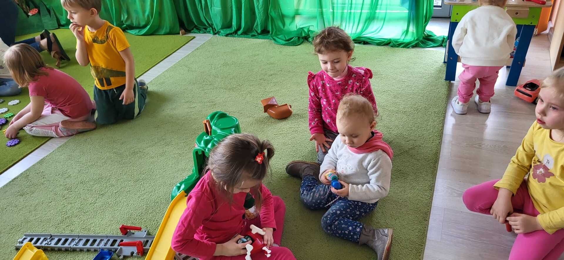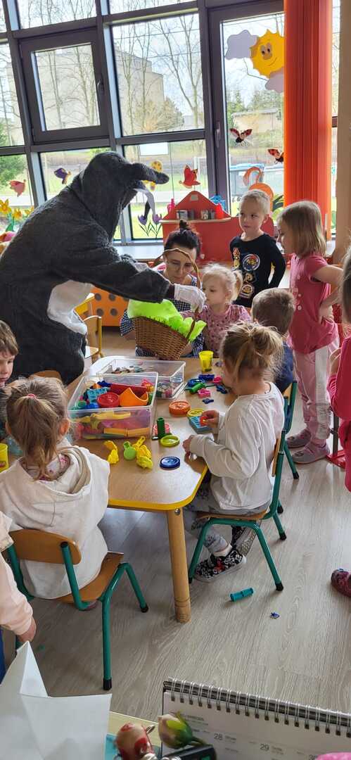 Ponadto w tym dniu odwiedziły nas dzieci, które jeszcze nie uczęszczają do przedszkola. Grupa jeżyki zaprosiła nowych kolegów i koleżanki do wspólnej zabawy. Była to idealna okazja by zapoznać przyszłe przedszkolaki, że świetna zabawa może odbywać się nie tylko w domu, ale również w przedszkolu, pod opieką pani wychowawczyni i w towarzystwie innych dzieci.
