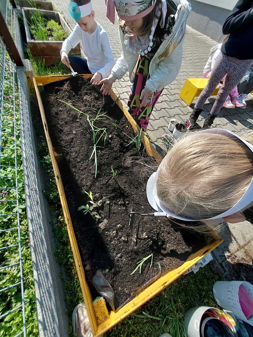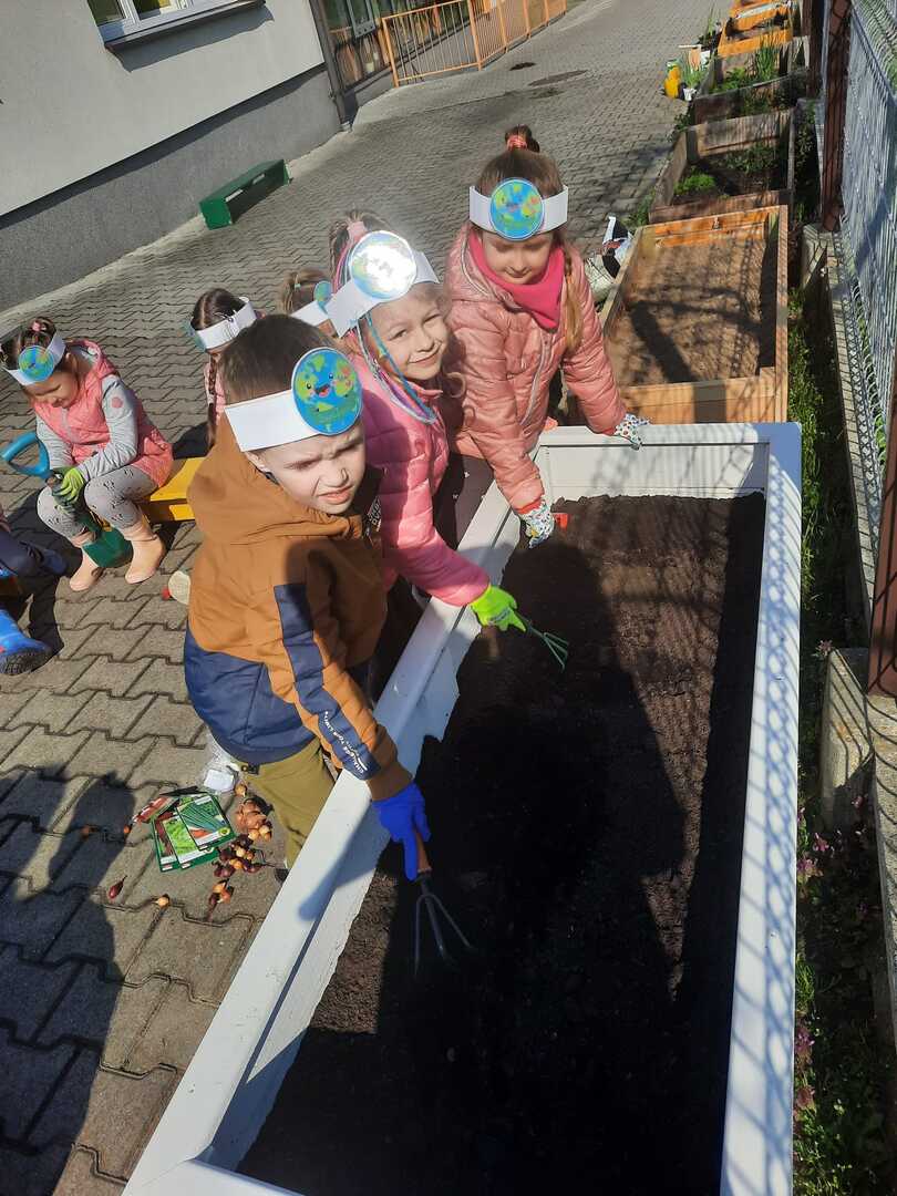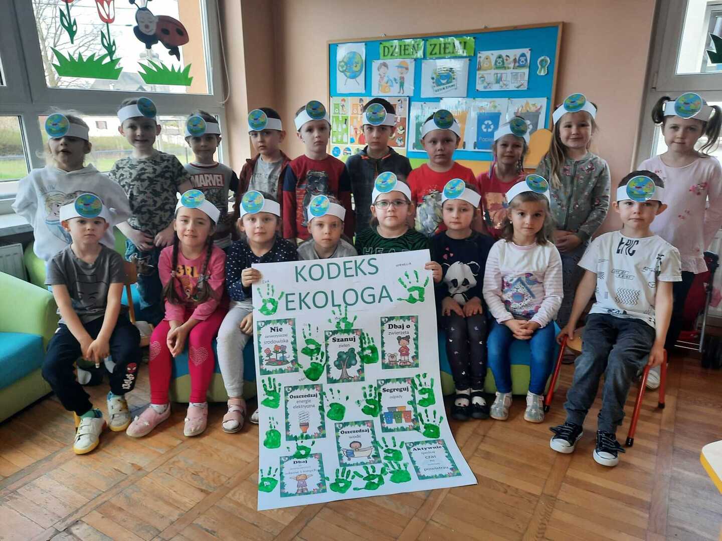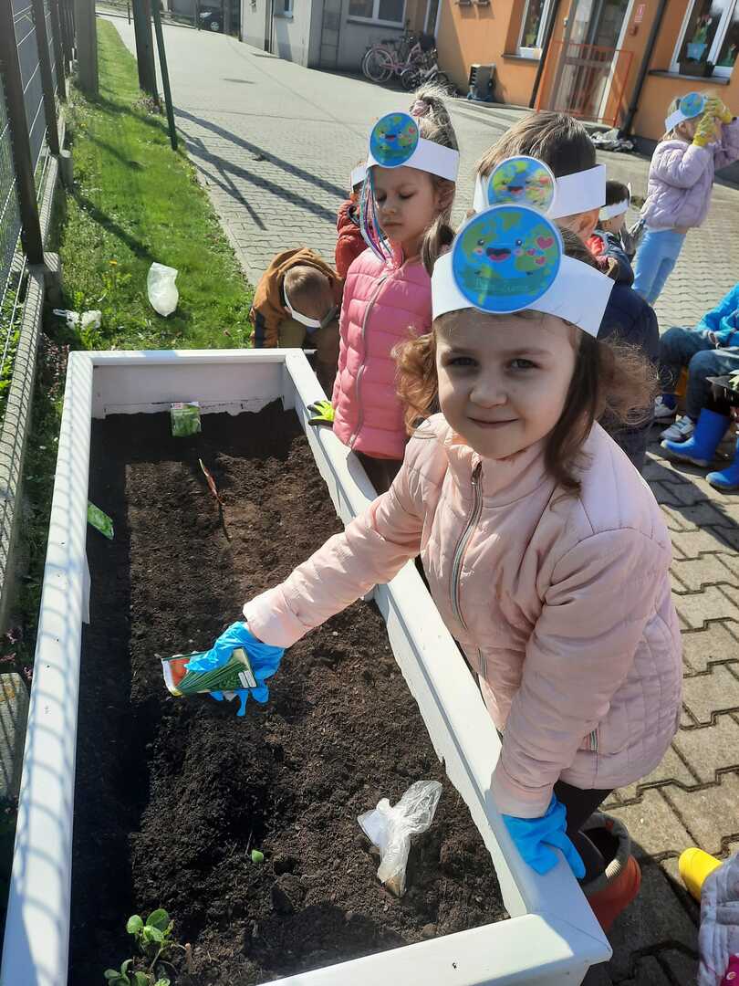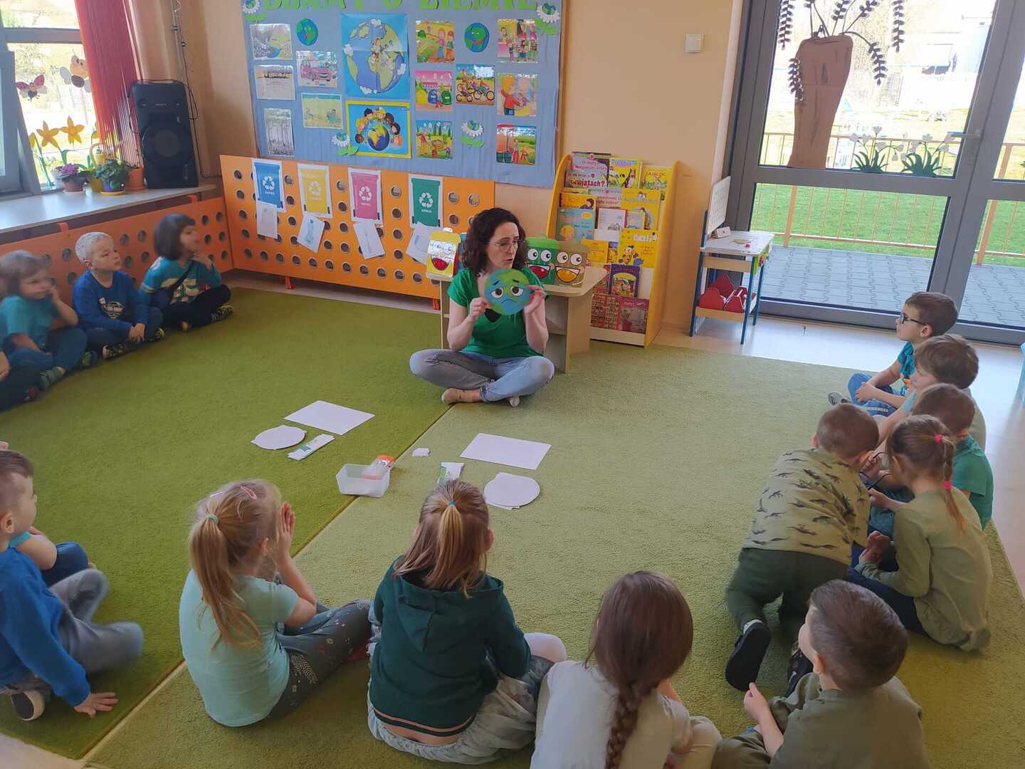21 kwietnia w naszym przedszkolu dzieci ze wszystkich grup świętowały Dzień Ziemi. Przeprowadzono szereg działań wpisujących się w konwencję święta. Odbywały się ciekawe zajęcia edukacyjne, projekcje filmów o tematyce ekologicznej, turniej wiedzy ekologicznej. Dzieci opracowały wspólnie „Kodeks małego ekologa". W celu upiększenia naszego podwórka dzieci wysiewały nasiona roślin ozdobnych, sadziły kwiaty, warzywa. Prowadzone działania pokazały przedszkolakom różne sposoby ochrony najbliższego środowiska oraz zachęcały do troski o Ziemię. Dzieci już wiedzą, że dla dobra naszej planety należy: sadzić drzewa i pielęgnować rośliny; dbać o przyrodę; oszczędzać wodę i prąd; segregować śmieci i ograniczać zużycie plastiku.