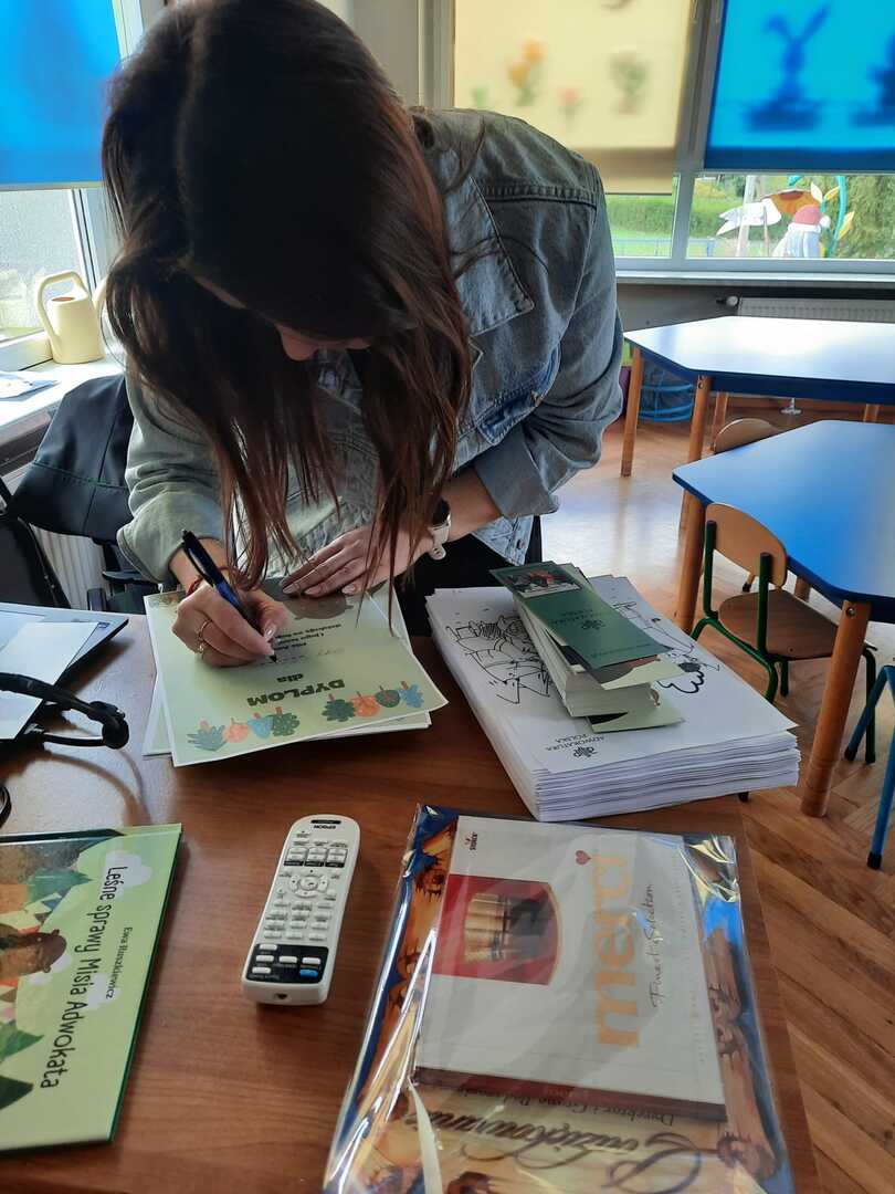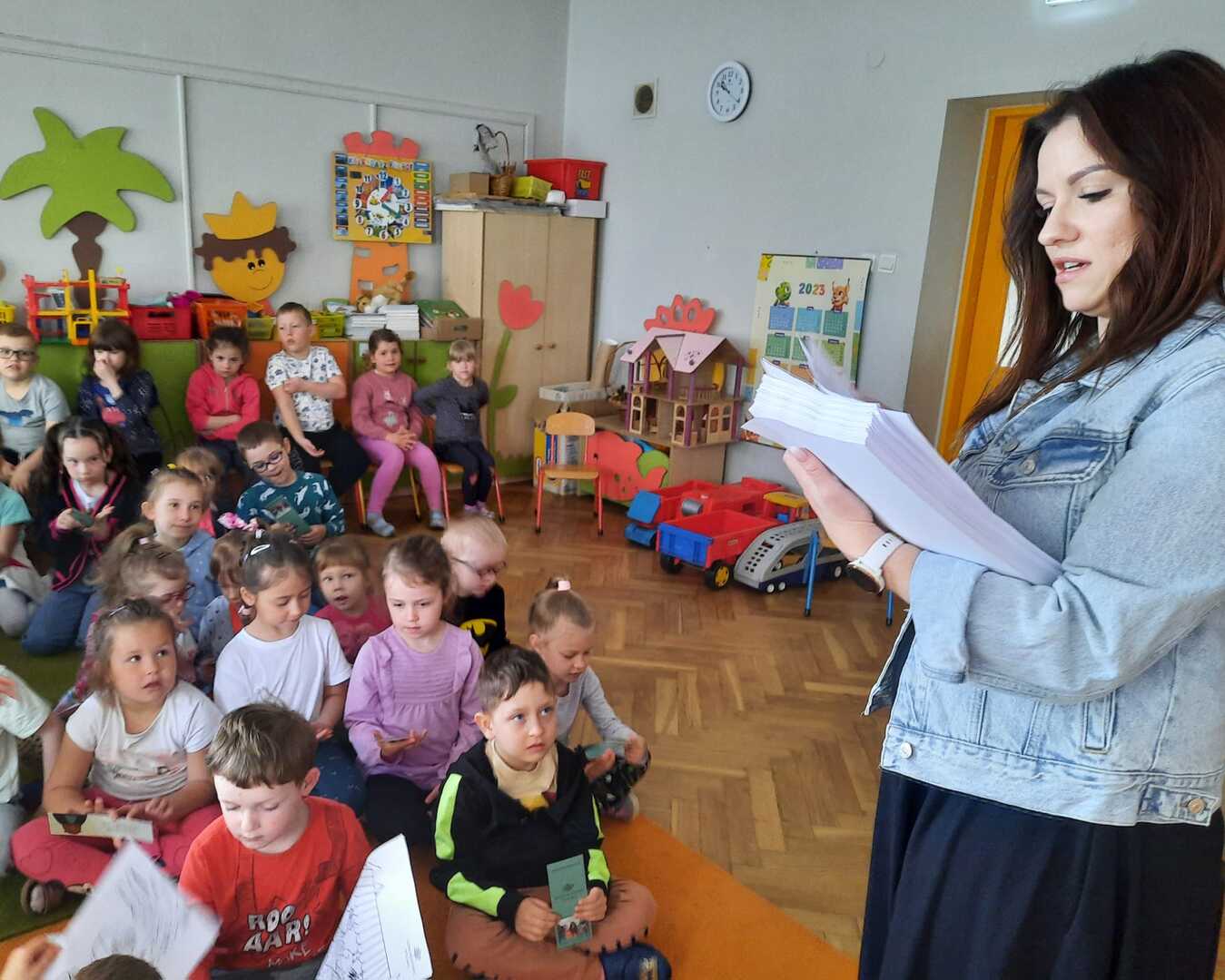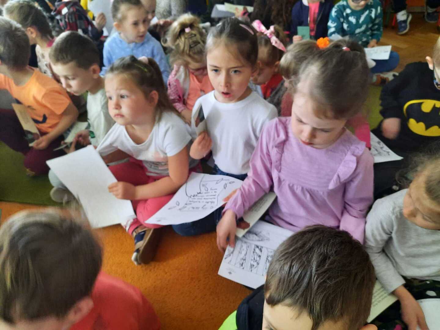 Na koniec spotkania dzieci otrzymały zakładki do książek, kolorowanki z ilustracjami z książki, a do każdej grupy trafił egzemplarz książeczki.