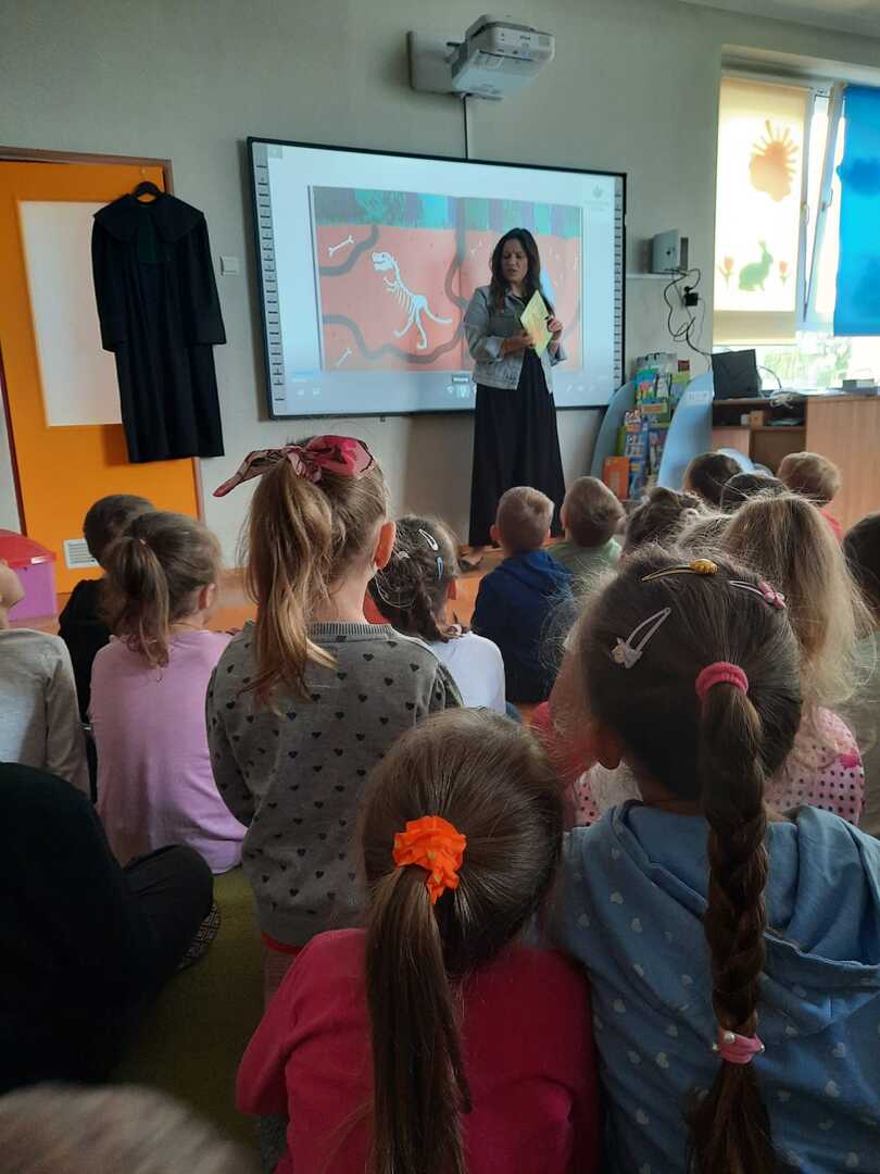 W ramach spotkania dzieci wysłuchały Bajki pt. "Leśnej sprawy Misia Adwokata" dowiedziały się na czym polega praca adwokata oraz zobaczyły jak wygląda strój urzędowy adwokata czyli toga.