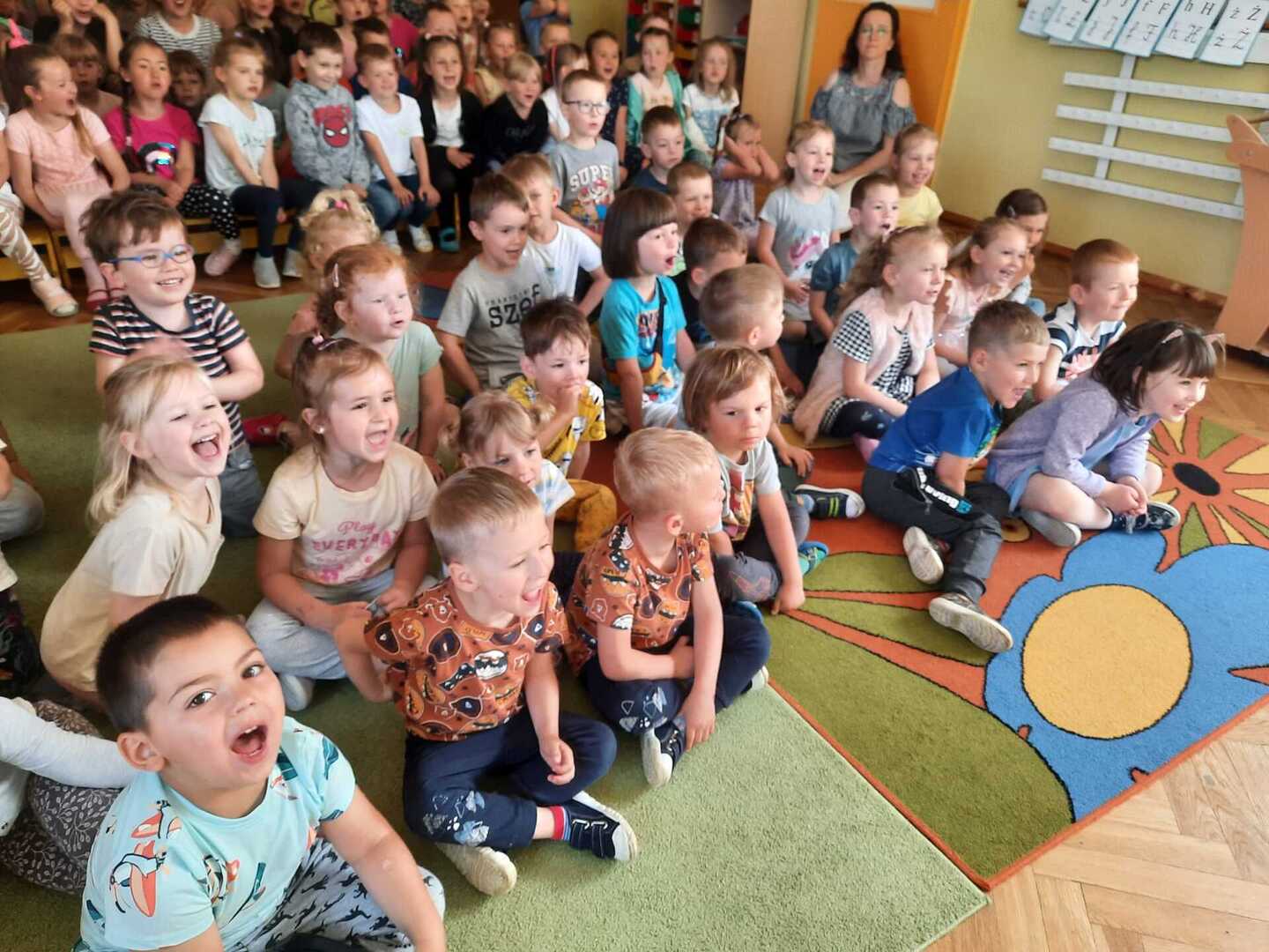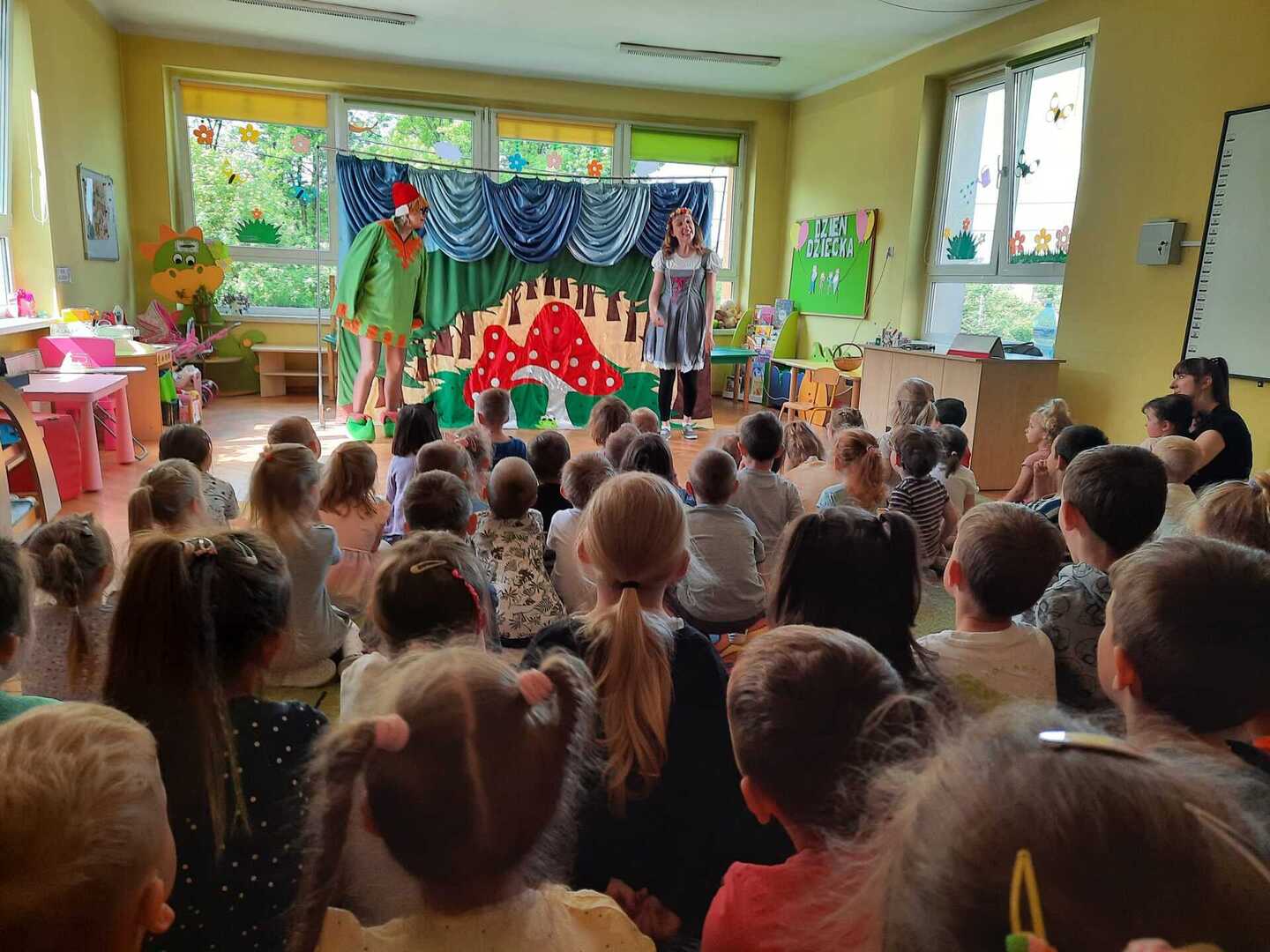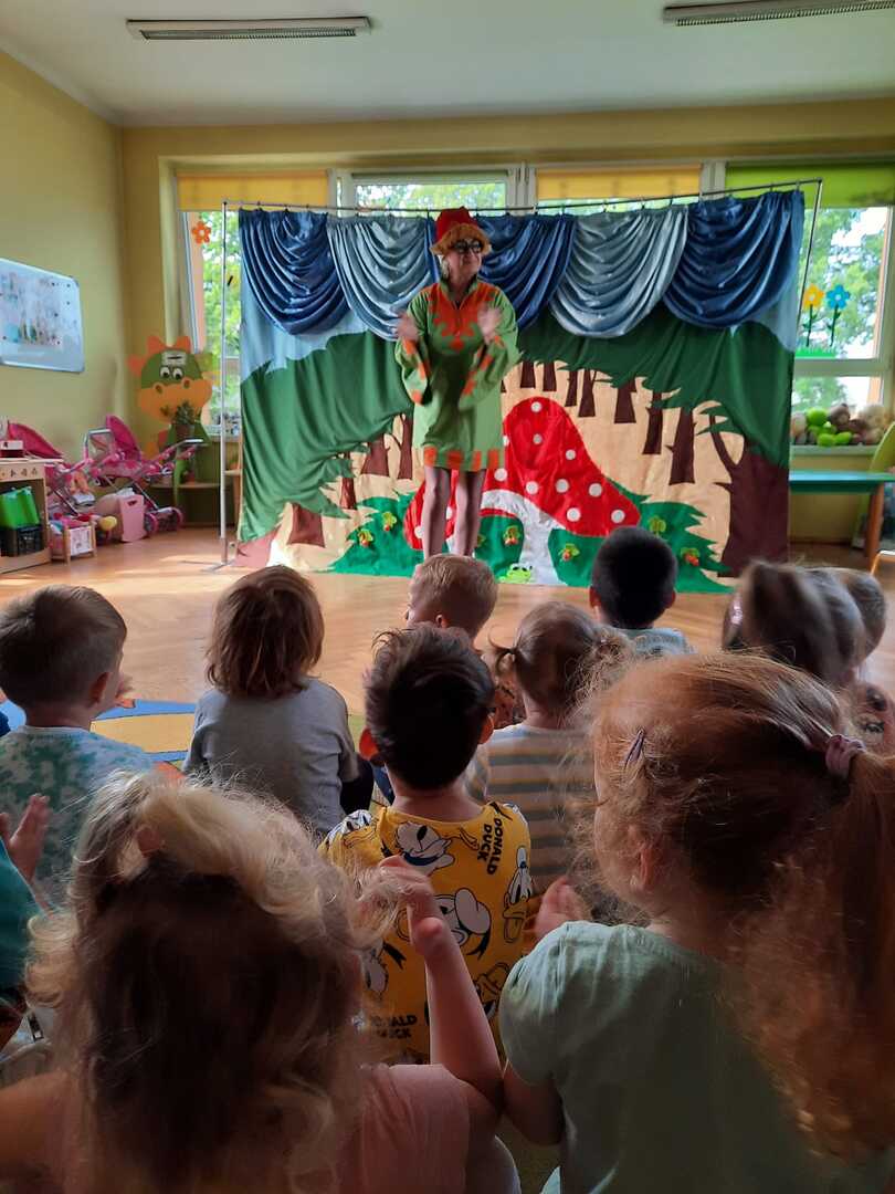 We wtorek 30 maja przedszkolaki obejrzały przestawienie teatrzyku „Skrzat” pt. „O Plastusiu, co zabłądził w borze”. Plastuś wędrował po lesie szukając poziomek dla lalki Kasi, co dostarczyło Mu wielu ciekawych przygód, które z kolei wywołały u dzieci wiele emocji. Istotnym przesłaniem teatrzyku były wartości: przyjaźń, dobro i pomoc innym w potrzebie, które powinny być zawsze obecne w życiu każdego.