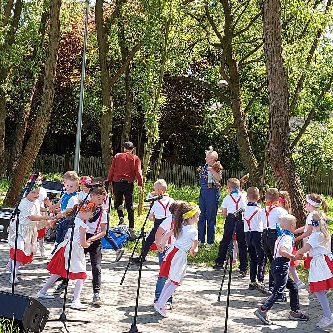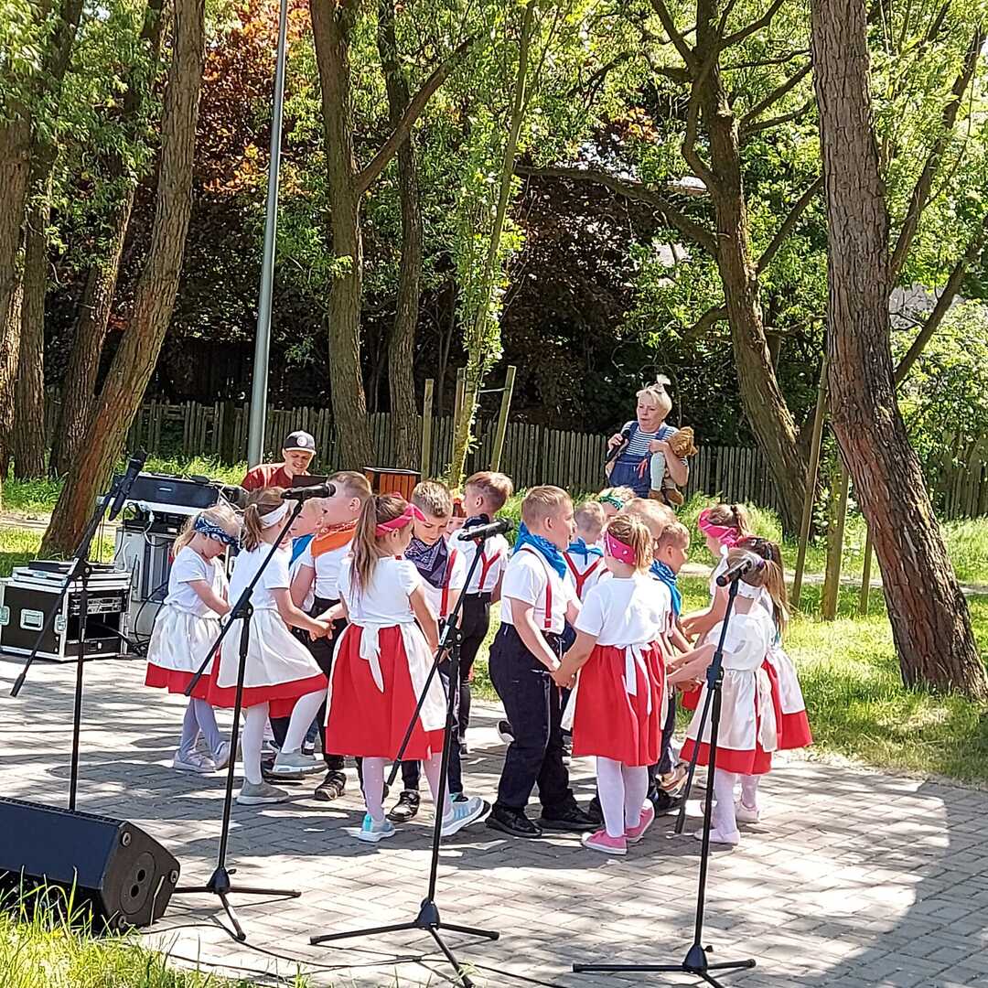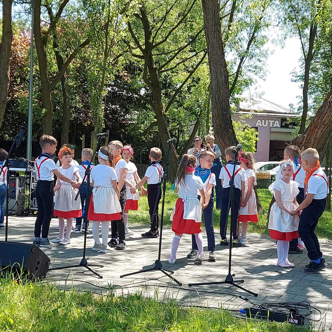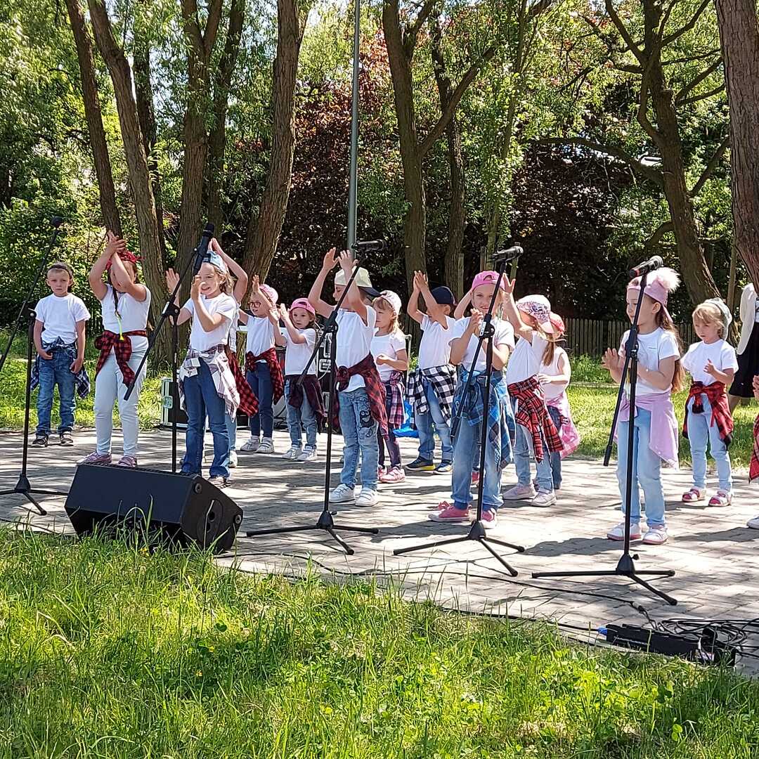 W tym roku festyn rodzinny zorganizowany został we współpracy z Miejsko Gminnym Ośrodkiem Kultury w Woźnikach na Łany Skwerze. Imprezie towarzyszyło otwarcie nowej trasy rowerowej Występy rozpoczęły dzieci z grupy Zajączki, które wierszem, piosenką oraz układem tanecznym pokazały jak bardzo kochają swoich rodziców. W podobnych repertuarach zaprezentowały się pozostałe grupy, które dla swoich ukochanych rodziców intensywnie ćwiczyły układy choreograficzne, piosenki i wiersz by móc uświetnić uroczystość. Na festyn przybyły całe rodziny, na które czekało moc atrakcji: dmuchańce, konkurencje sportowe i zabawy ruchowe, które umilały czas dzieciom. Na pikniku nie zabrakło również pysznych ciast upieczonych przez rodziców. Uśmiechnięte buzie naszych przedszkolaków oraz rodziców i dziadków świadczą, że piknik był udany. Dziękujemy za zaproszenie i słodkie upominki.