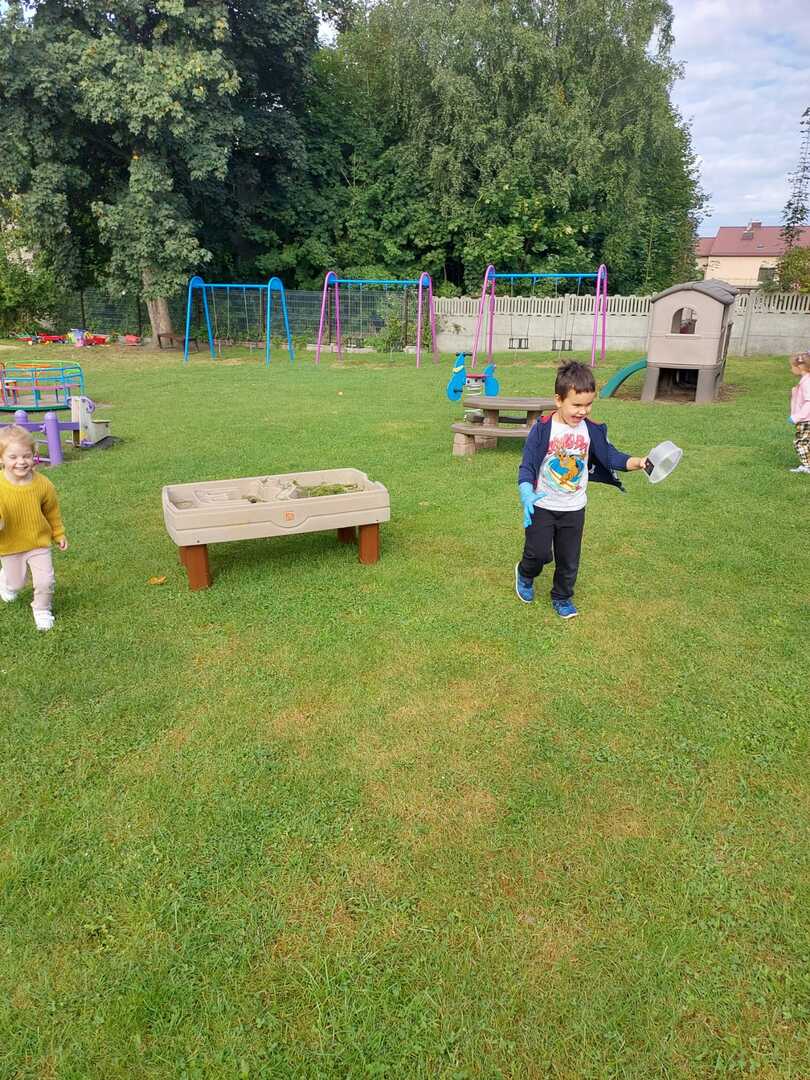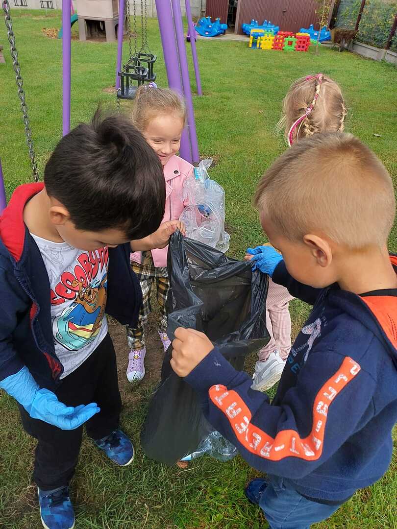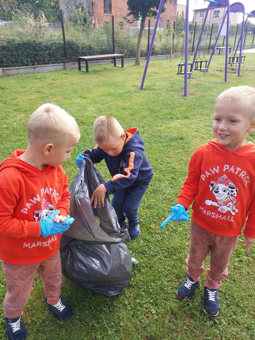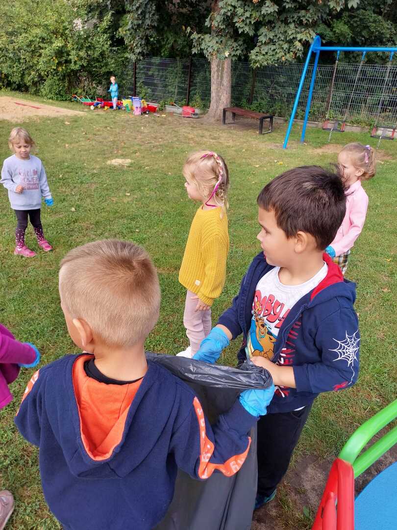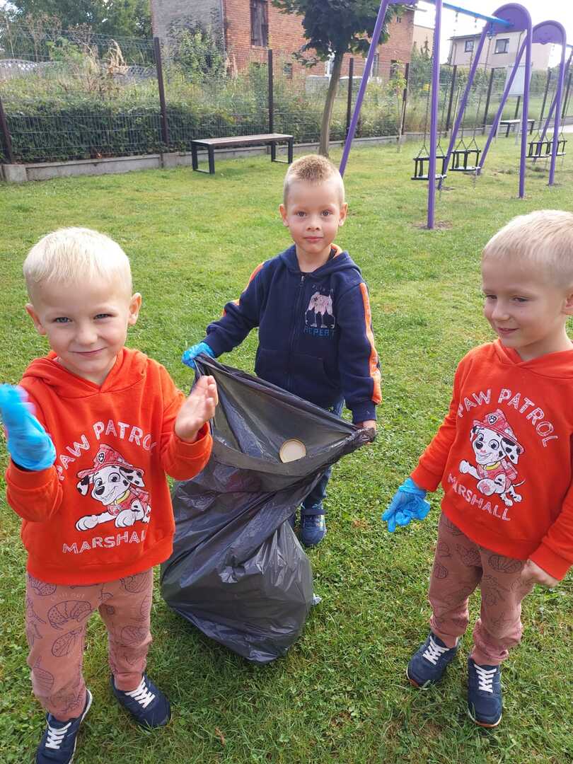W dniu 15 września po raz kolejny nasze przedszkole przyłączyło się do akcji " Sprzątanie Świata". Dzieci z grup starszych wyruszyły ulicami naszej miejscowości w celu pozbierania śmieci. Młodsze sprzątały teren przedszkola a najmłodsza grupa podczas zajęć uczyła się segregacji śmieci.
