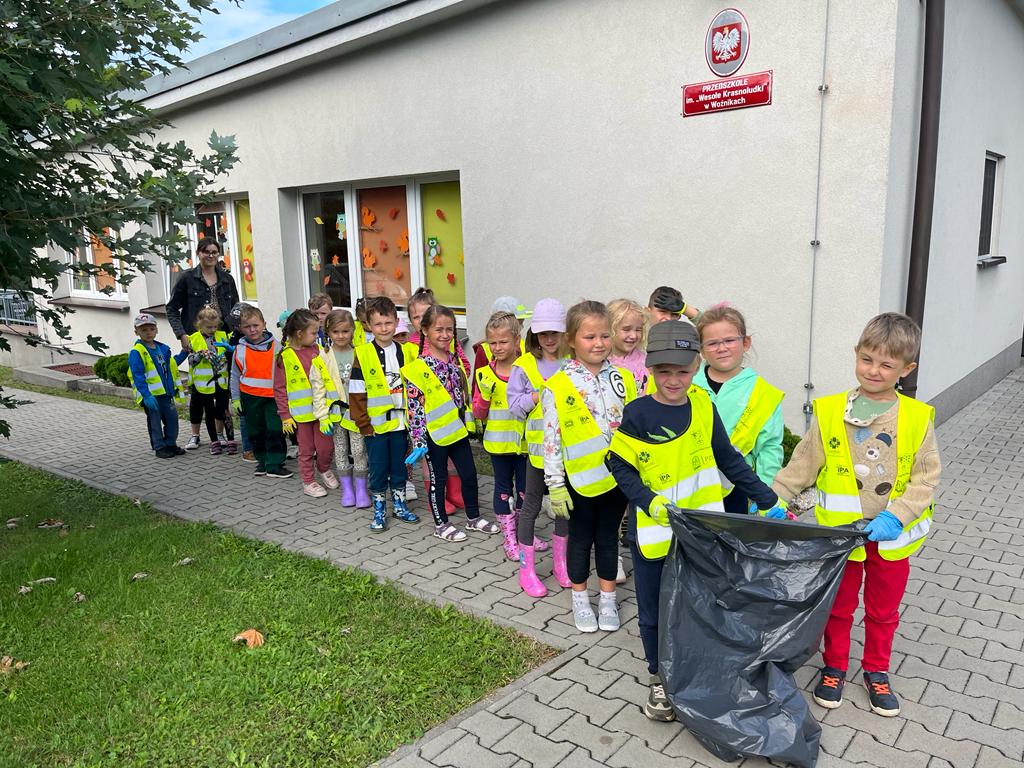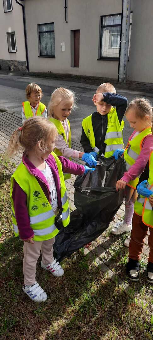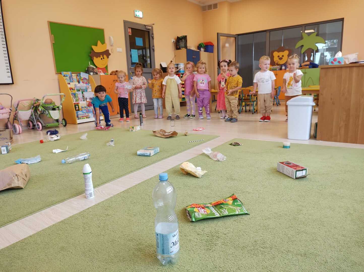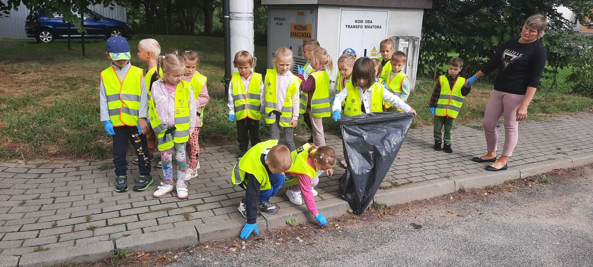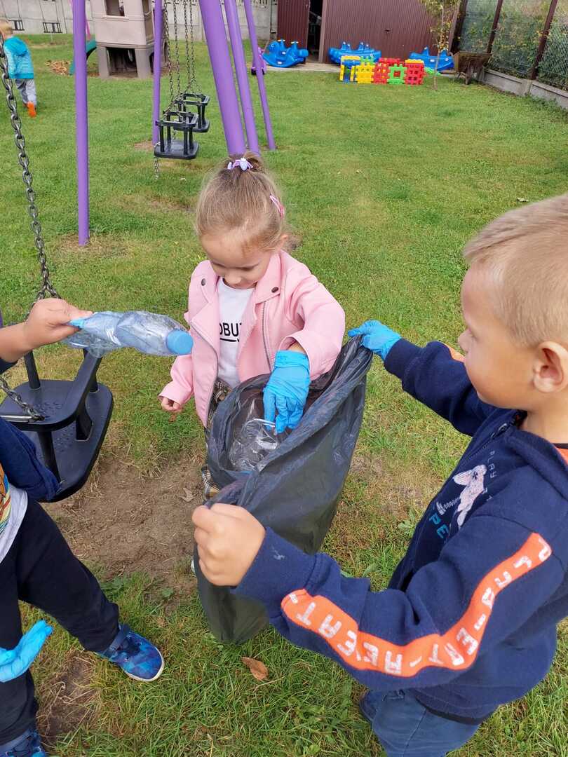 W dniu 15 września po raz kolejny nasze przedszkole przyłączyło się do akcji " Sprzątanie Świata". Dzieci z grup starszych wyruszyły ulicami naszej miejscowości w celu pozbierania śmieci. Młodsze sprzątały teren przedszkola a najmłodsza grupa podczas zajęć uczyła się segregacji śmieci.
