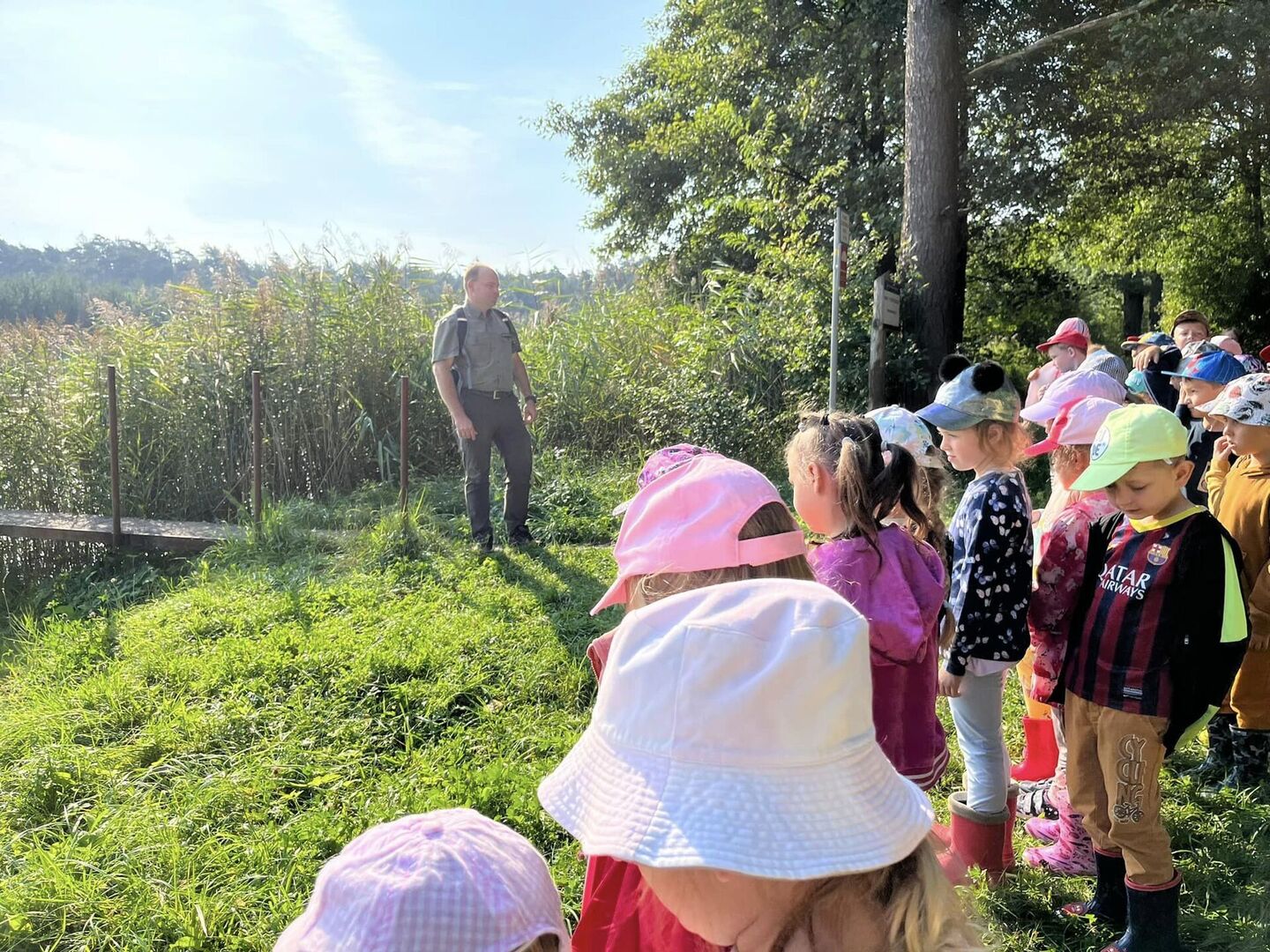 Z ciekawością wysłuchały prelekcji wygłoszonej w lesie podczas spaceru przez Leśniczego.