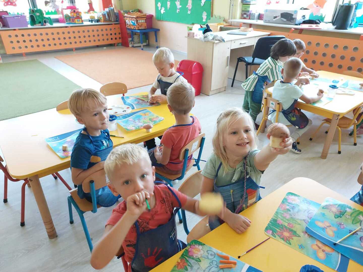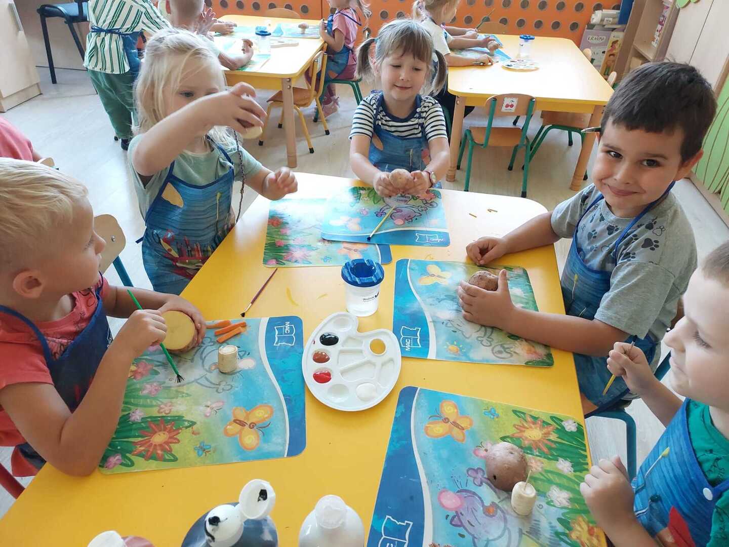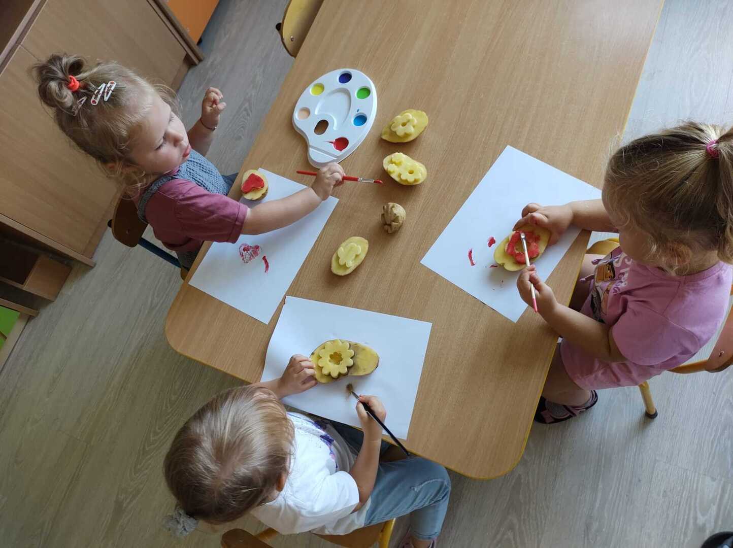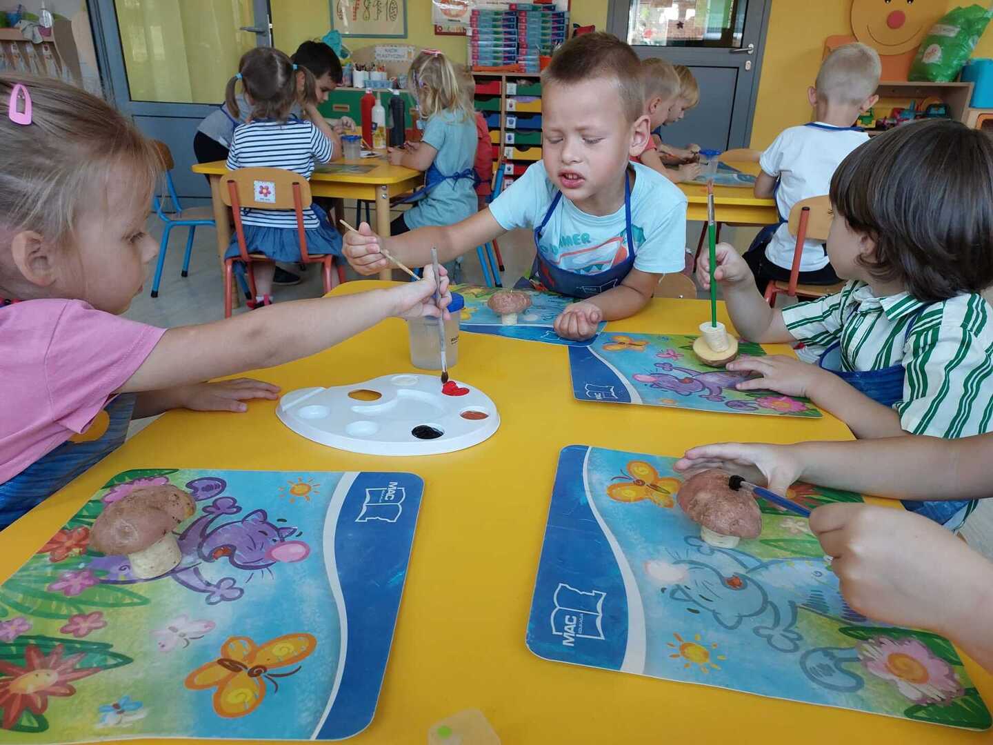 Podsumowaniem dzisiejszego dnia było wykonanie pracy plastycznej z wykorzystaniem ziemniaka. Oczywiście nie zabrakło tradycyjnych pieczonek, które dzieci zjadały z apetytem.