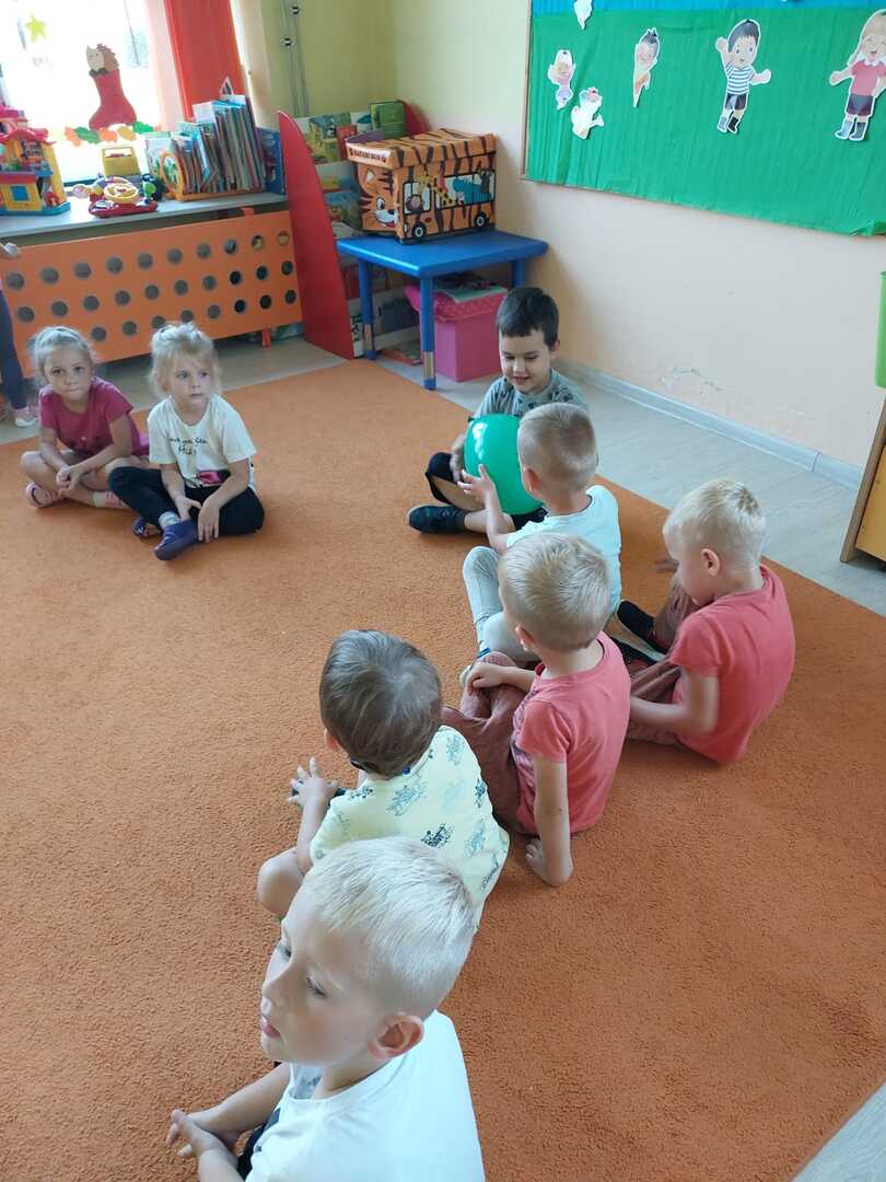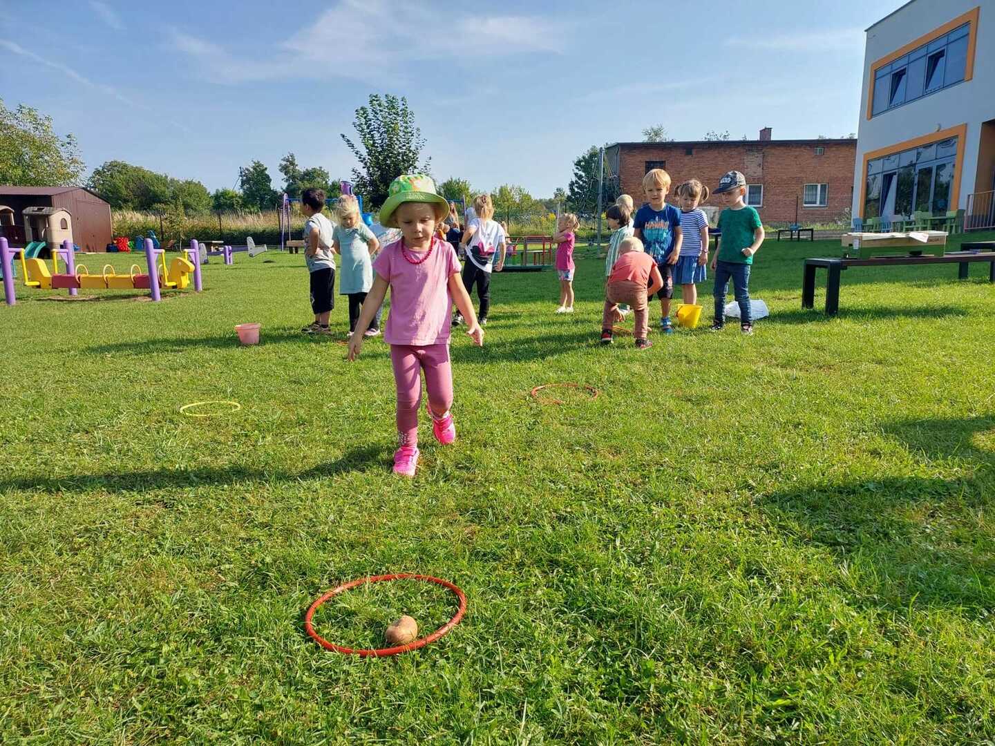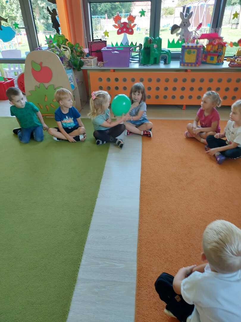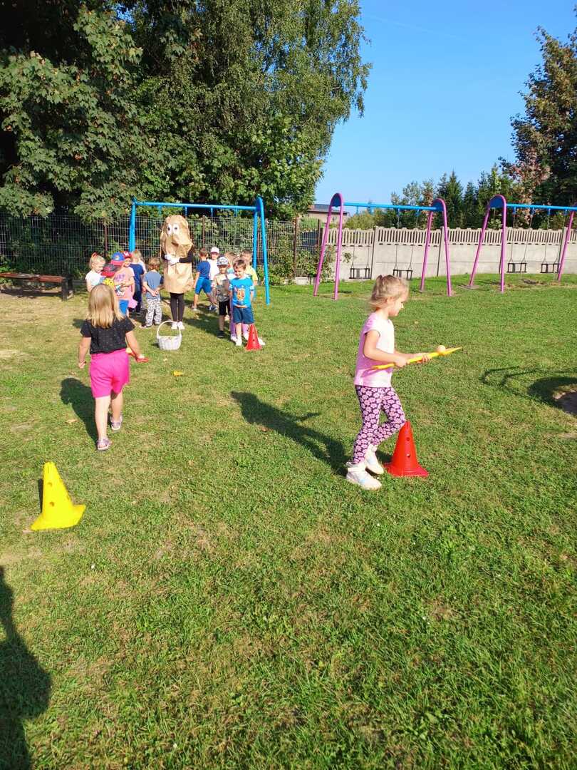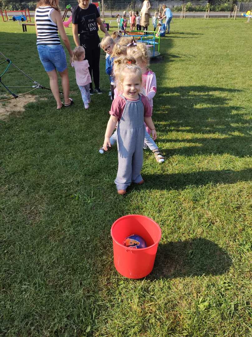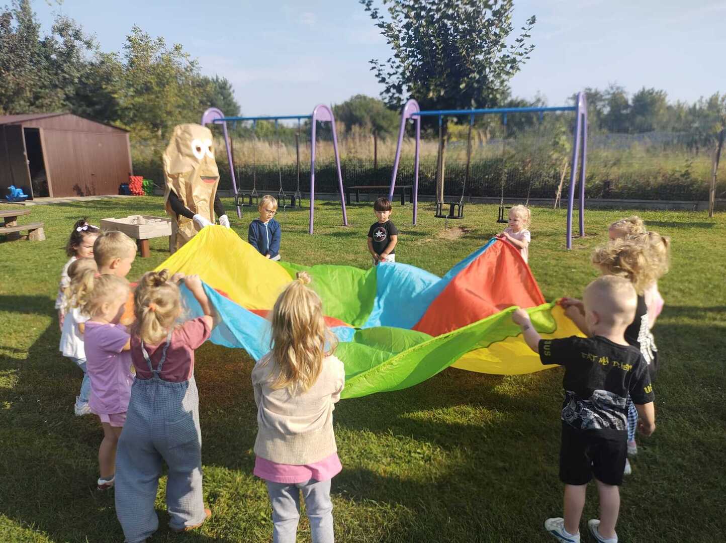 Podczas wspólnej zabawy z Panem Ziemniakiem rzucały do celu, ścigały się, szukały ziemniaków, bawiły się z wykorzystaniem chusty animacyjnej.