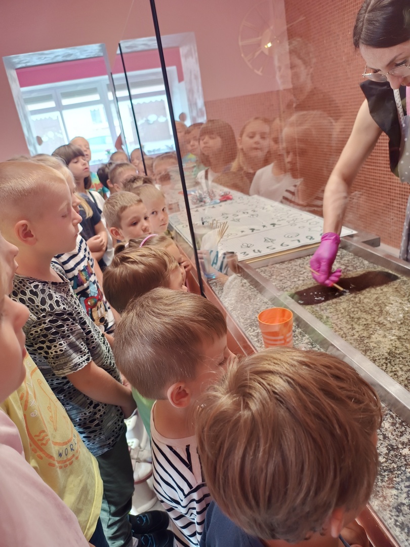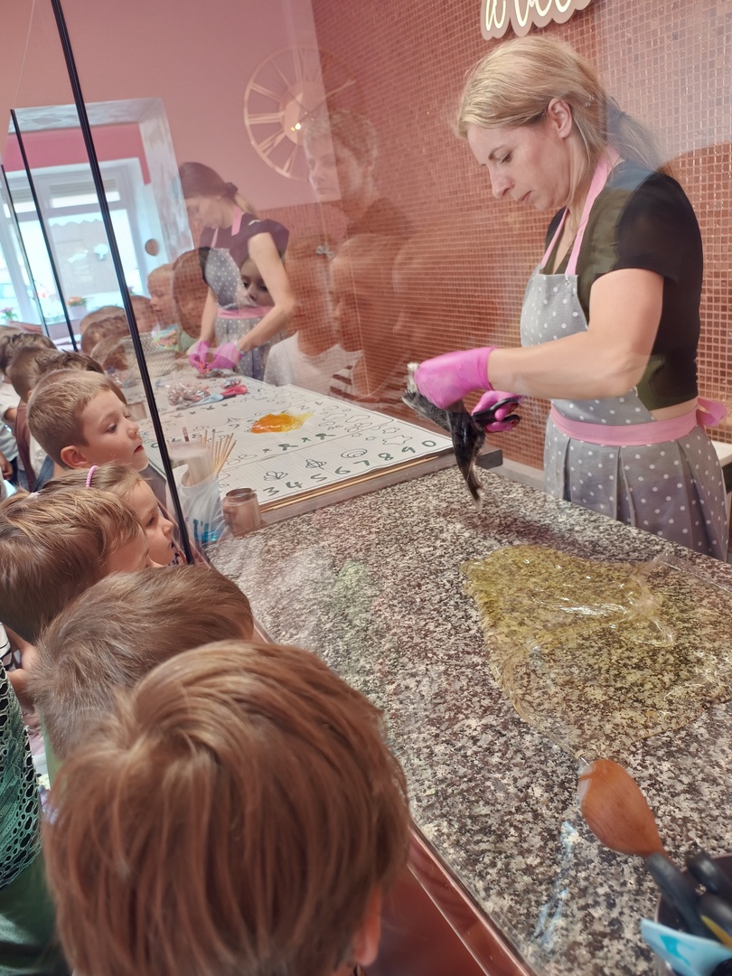 W dniu 7 czerwca grupy 🐇 i 🦔 wybrały się na wycieczkę do Manufaktury Słodyczy"Hokus Pokuss" w Żarkach. Celem wycieczki było poznanie tajemnicy powstawania słodkich karmelków i lizaków. Dzieci poznały proces ręcznego wykonywania słodkości - od wylewania karmelu na kamienny blat, poprzez nadawanie mu smaków i kolorów, aż do pakowania gotowych produktów. Dzieci mogły wcielić się w cukierników i samodzielnie wykonać kolorowego lizaka. Na zakończenie warsztatów dzieci zabrały swoje lizaki jako pamiątkę pobytu w tym słodkim miejscu.